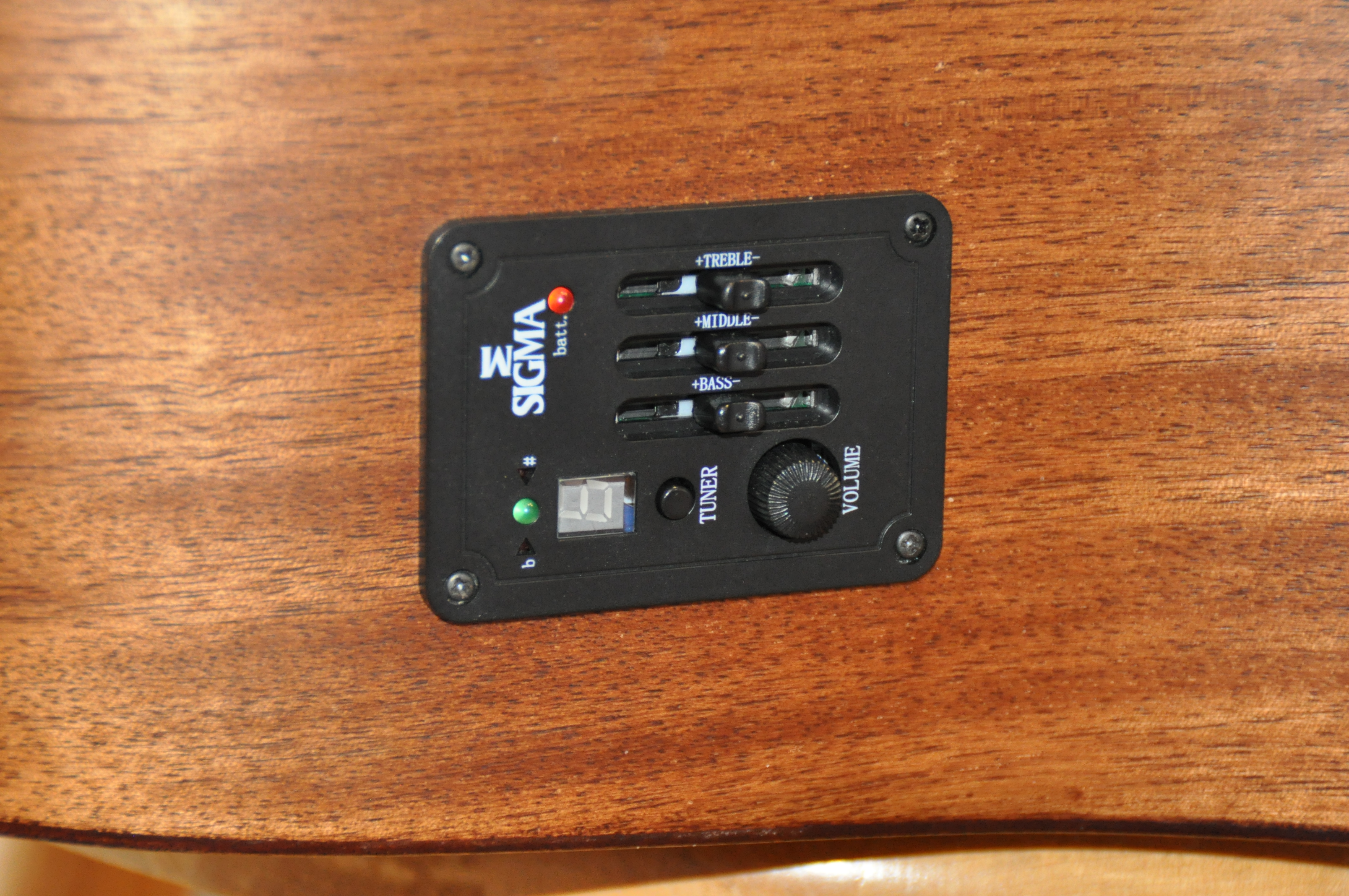 Électronique : préampli Sigma avec pickup piézo, égaliseur 3 bandes (basses, médiums, aigus) et accordeur intégré