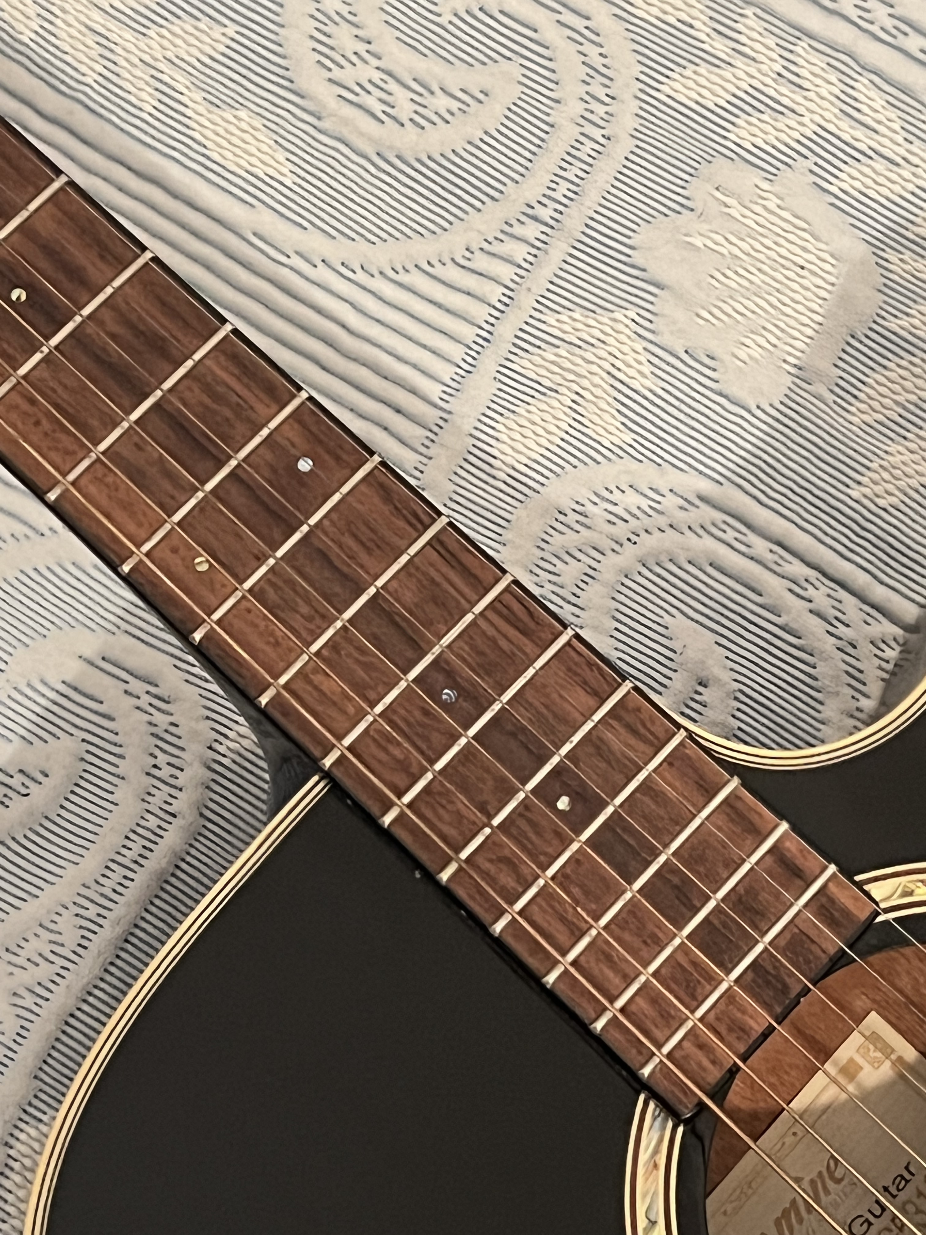 Caractéristiques : • Table épicéa massif • Dos/éclisses nato • Touche palissandre • Électronique TK40 (accordeur + EQ) • Dreadnought pan coupé