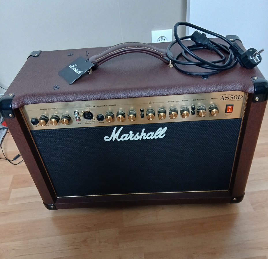 Plus un ampli acoustique Marshall AS50d qui n'a pratiquement jamais servi. Acheté en février 2025, il n'est jamais sorti de son studio (non fumeur), et a servi moins d'une dizaine de fois... Donc, en état neuf.