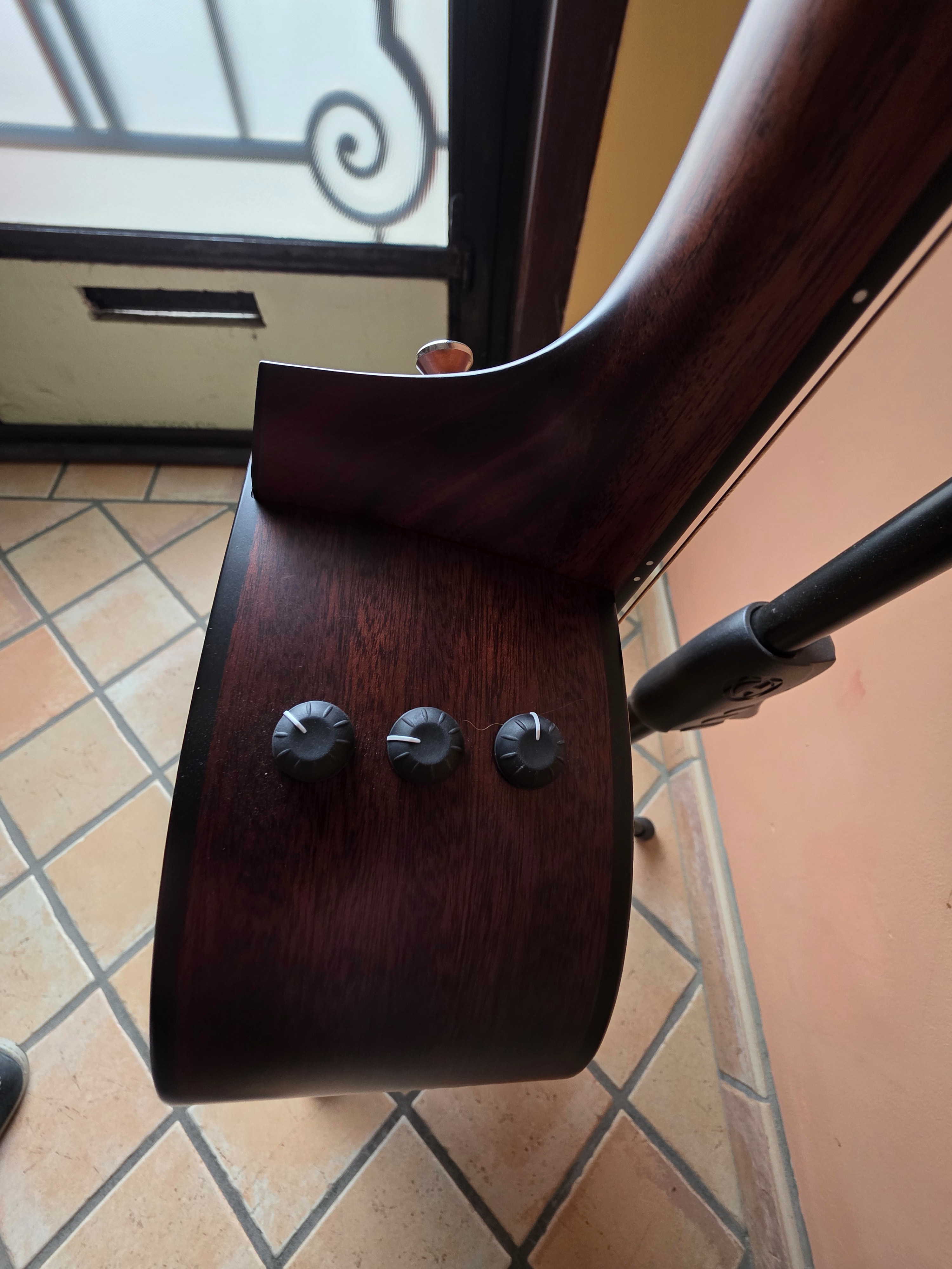 Forme Grand Concert avec Pan coupéTable en épicéa de Sitka massif, Fond et éclisses en sapele massif, Manche en acajou, Touche en ébène, 17 frettes