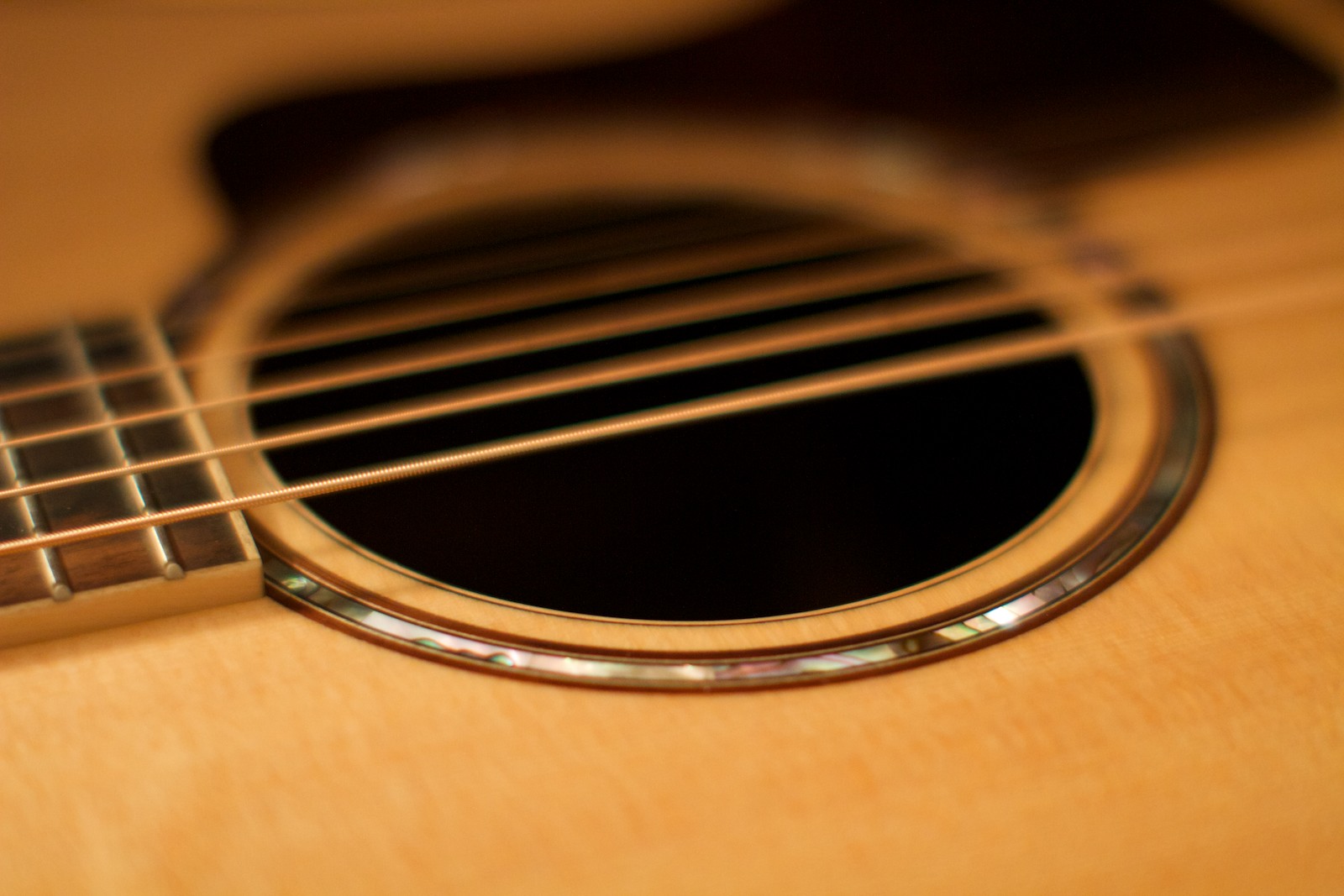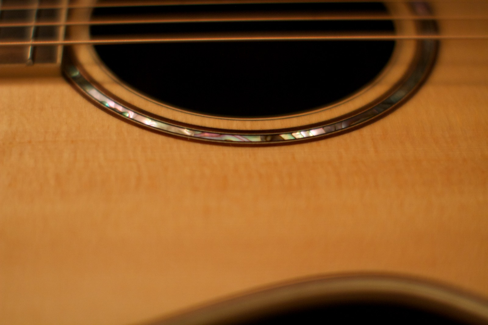 La guitare est lumineuse, grâce au binding en érable présent sur le corps, la touche et la tête, ce qui a toujours été la marque esthétique des Taylor. L’habillage principal de la rosace reste simple mais superbe. À base de coquille d’ormeau, on dirait un bijou. Le pickguard en palissandre n’est pas trop épais et c’est agréable au toucher. La touche en ébène ainsi que les incrustations du manche appelées « Element » font leur effet sans être vulgaires. Enfin, la tête également en ébène est simple, avec juste le nom Taylor. Vous l’aurez compris, il s’agit d’une guitare élégante, au style épuré, où rien n’a été laissé au hasard.