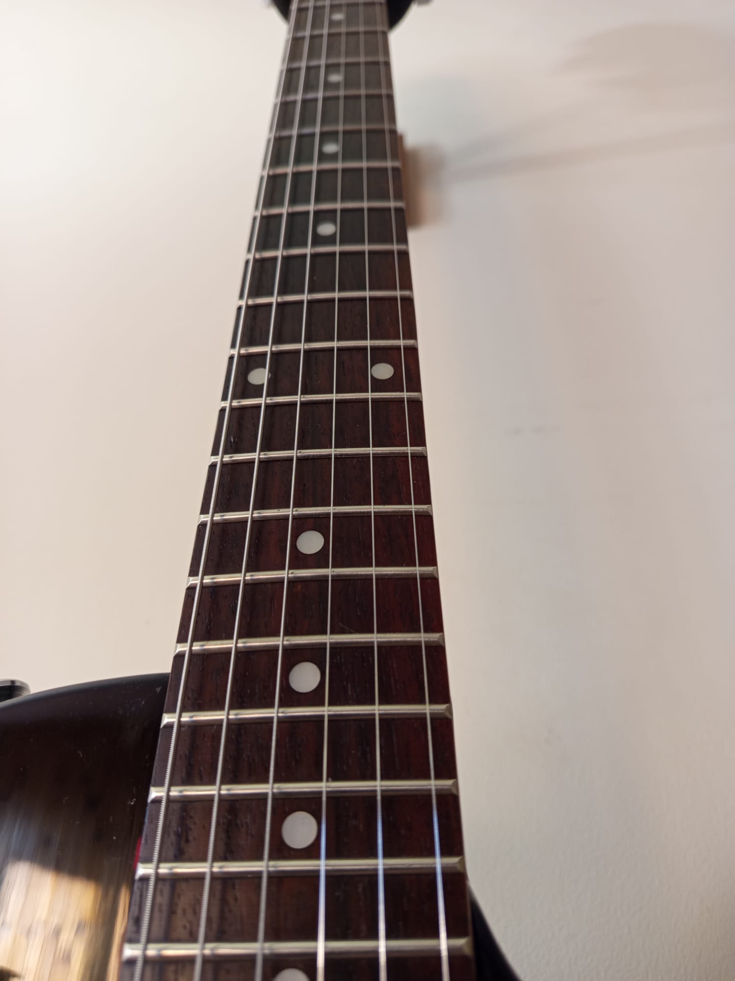 Guitare fabriquée dans les usines Samick et contrôlé et vendue aux USA.Manche type "D" vissé avec 22 frettes et un radius 12".