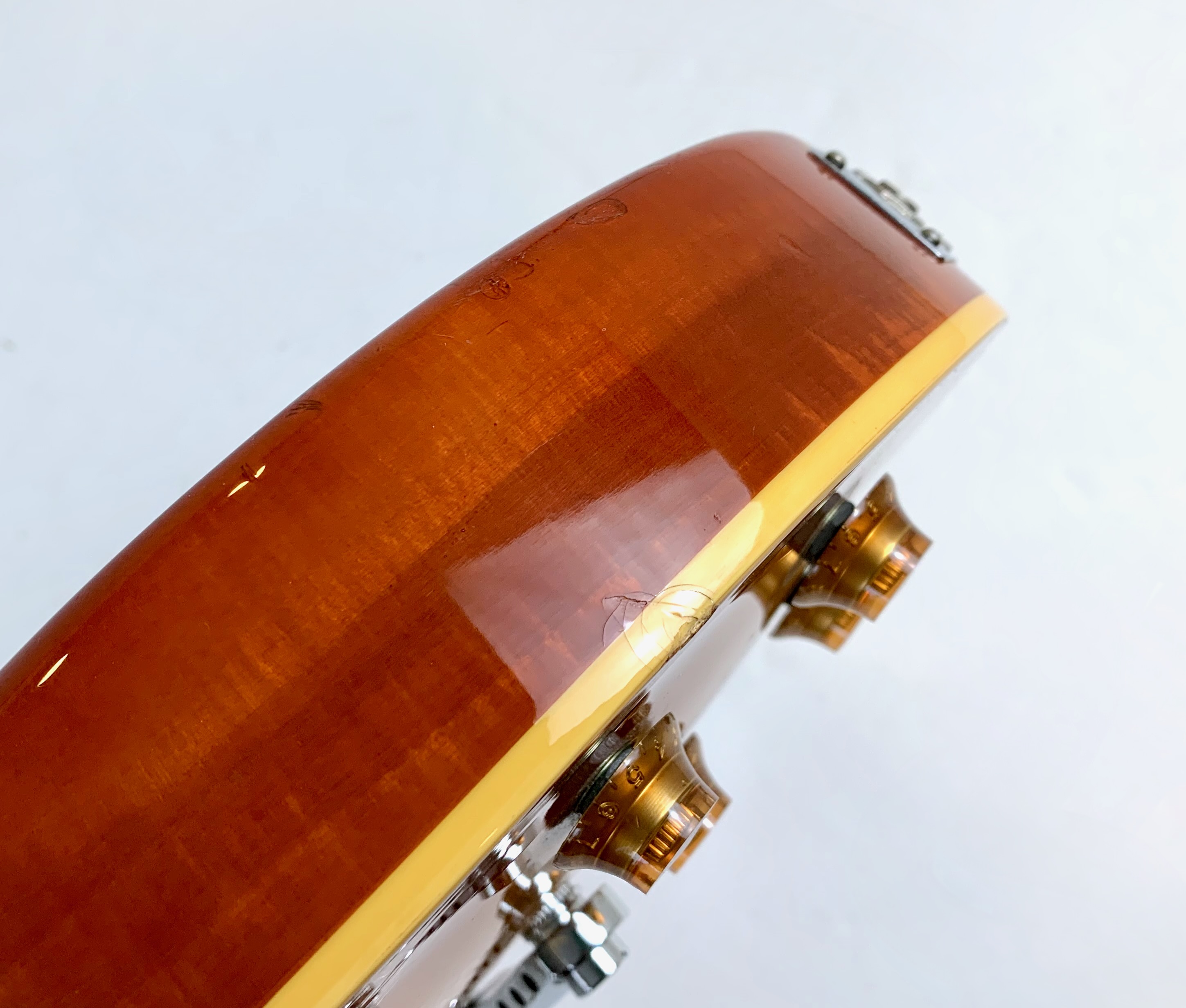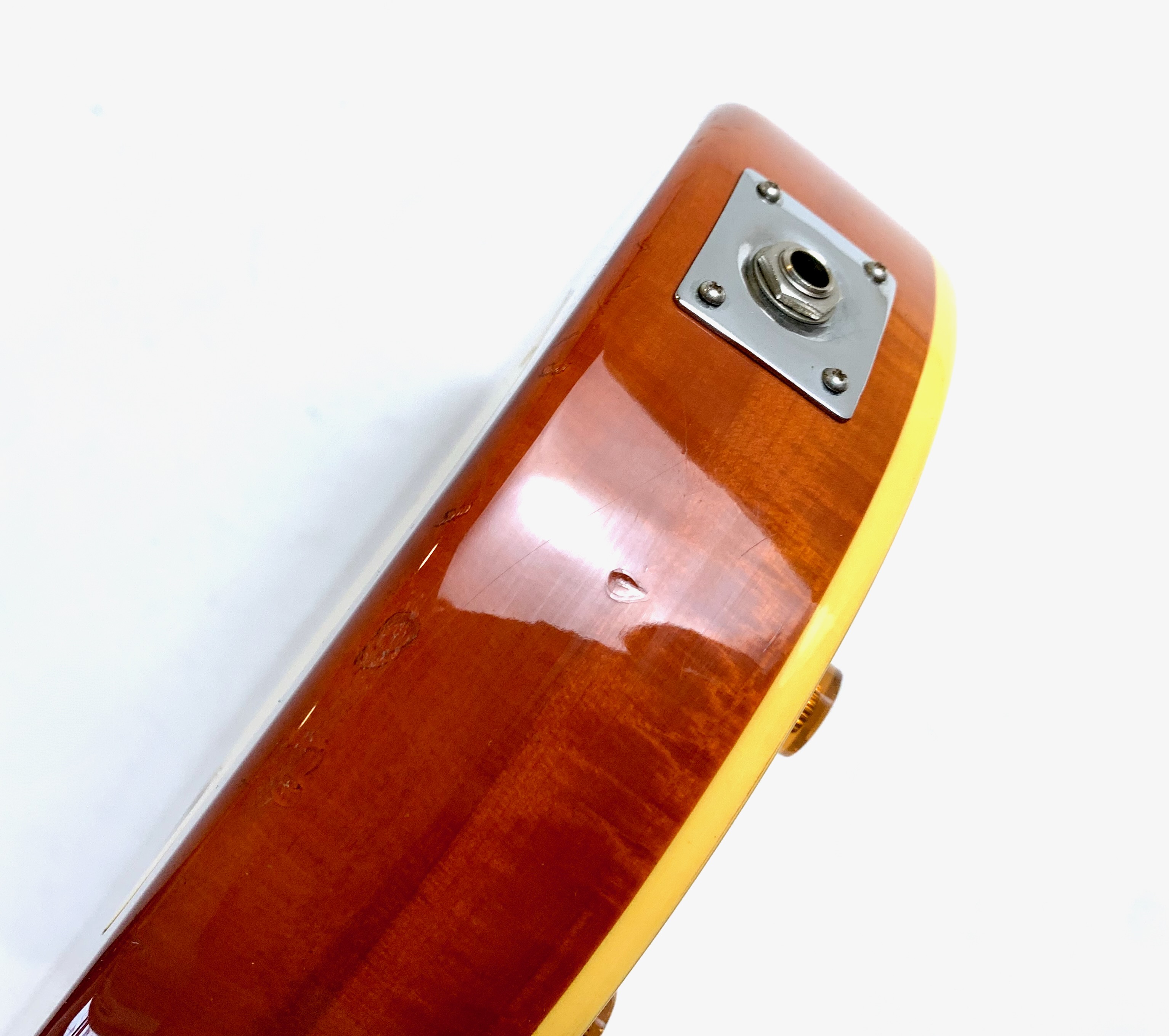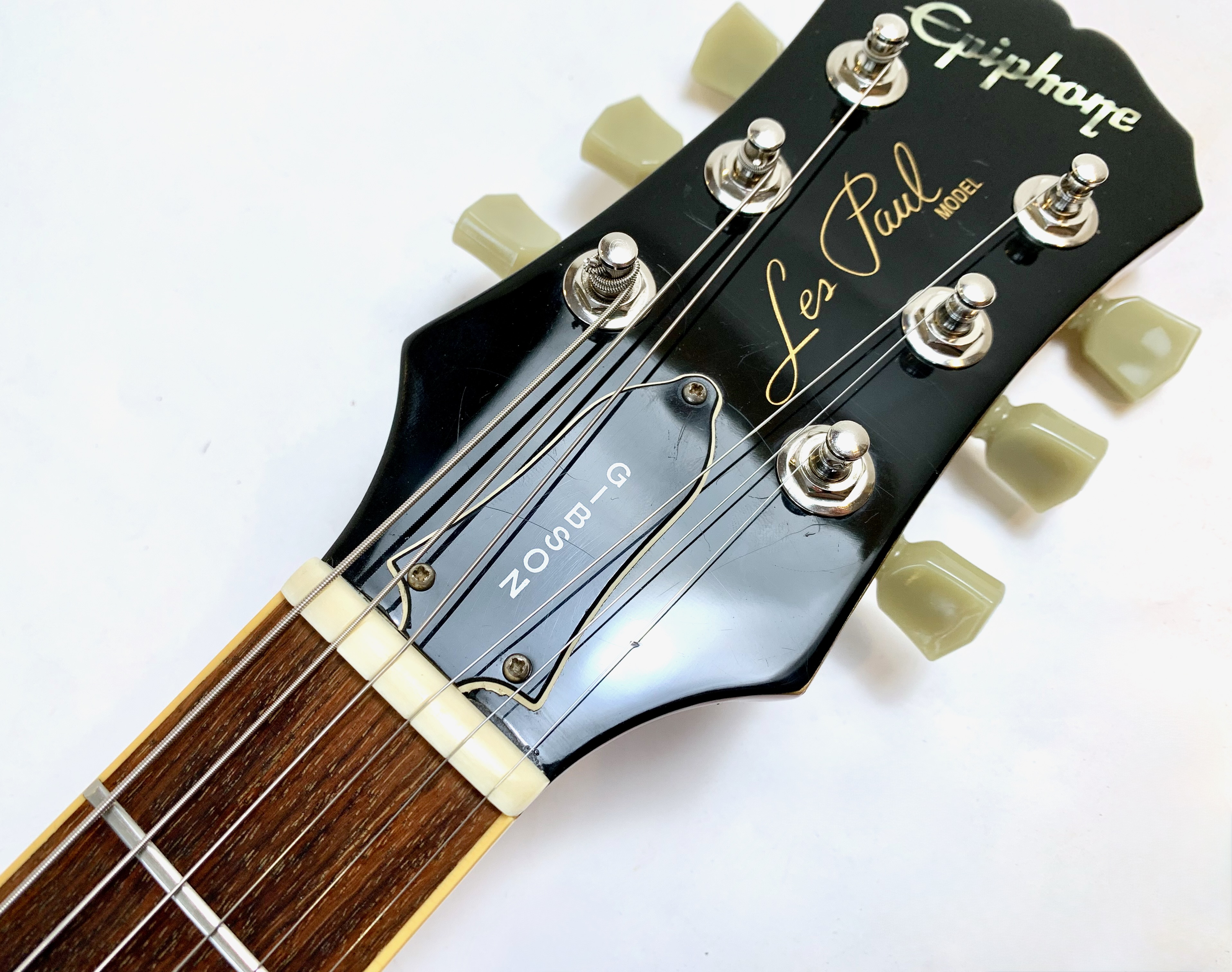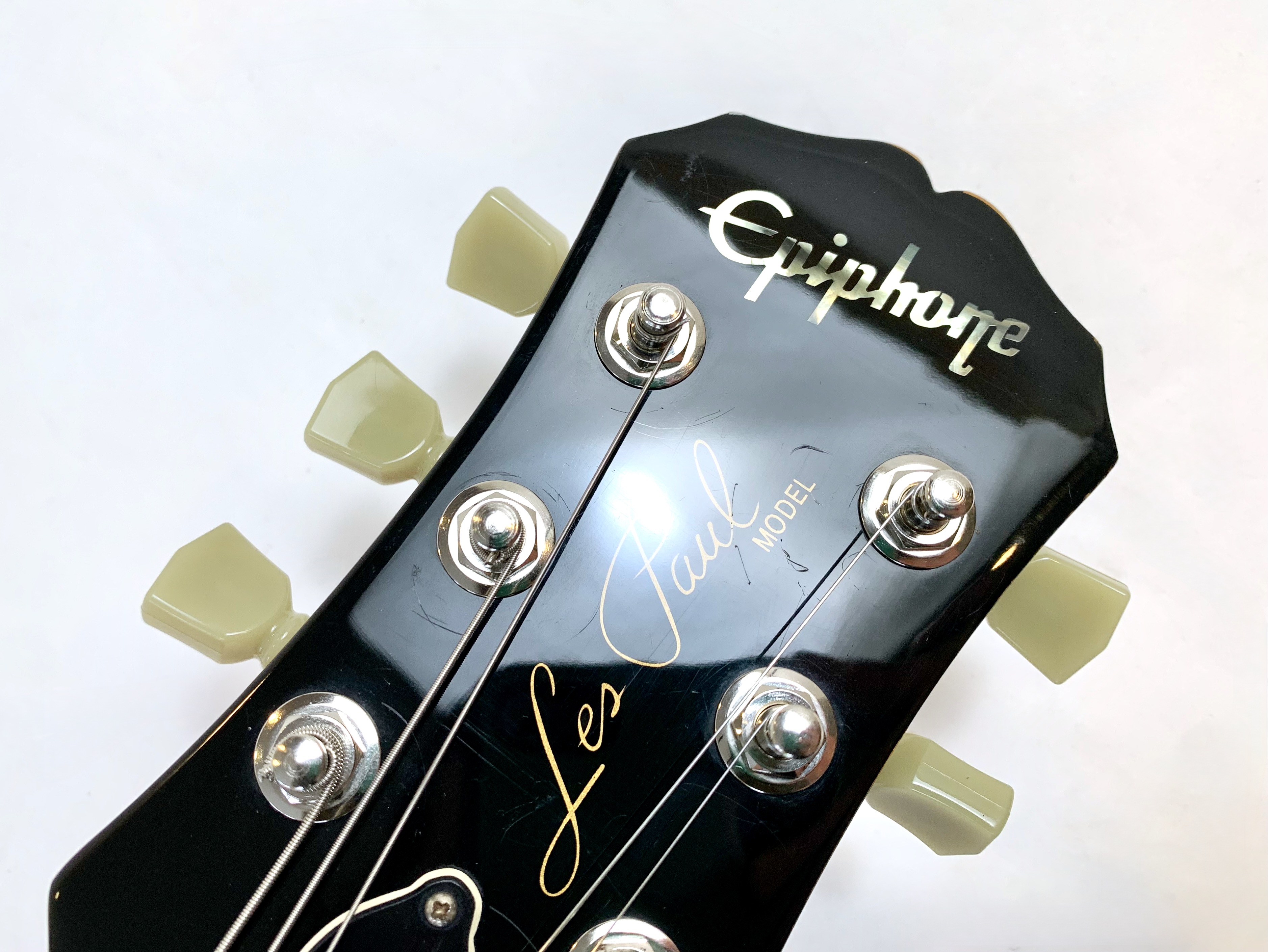 Cette Epiphone a été produite en Corée en 1997 dans l'usine d'Un Sung. Sans capots sur ses micros elle ressemble à une Gibson Les Paul Classic. Le poids est des plus raisonnable avec 3,90kg. En très bon état, vendue dans un étui rigide Epiphone.Dépôt-vente, achat, vente, reprise, location.