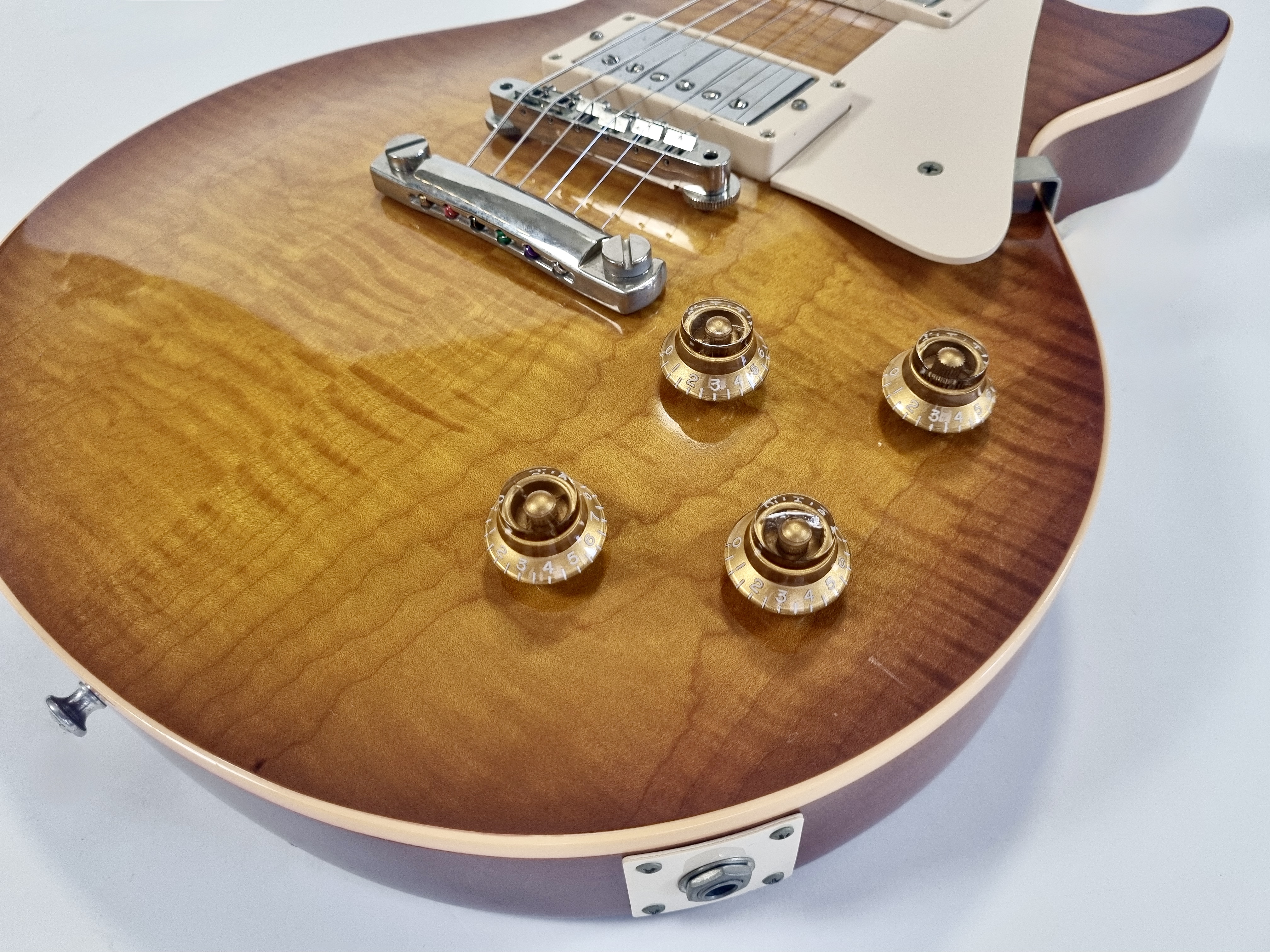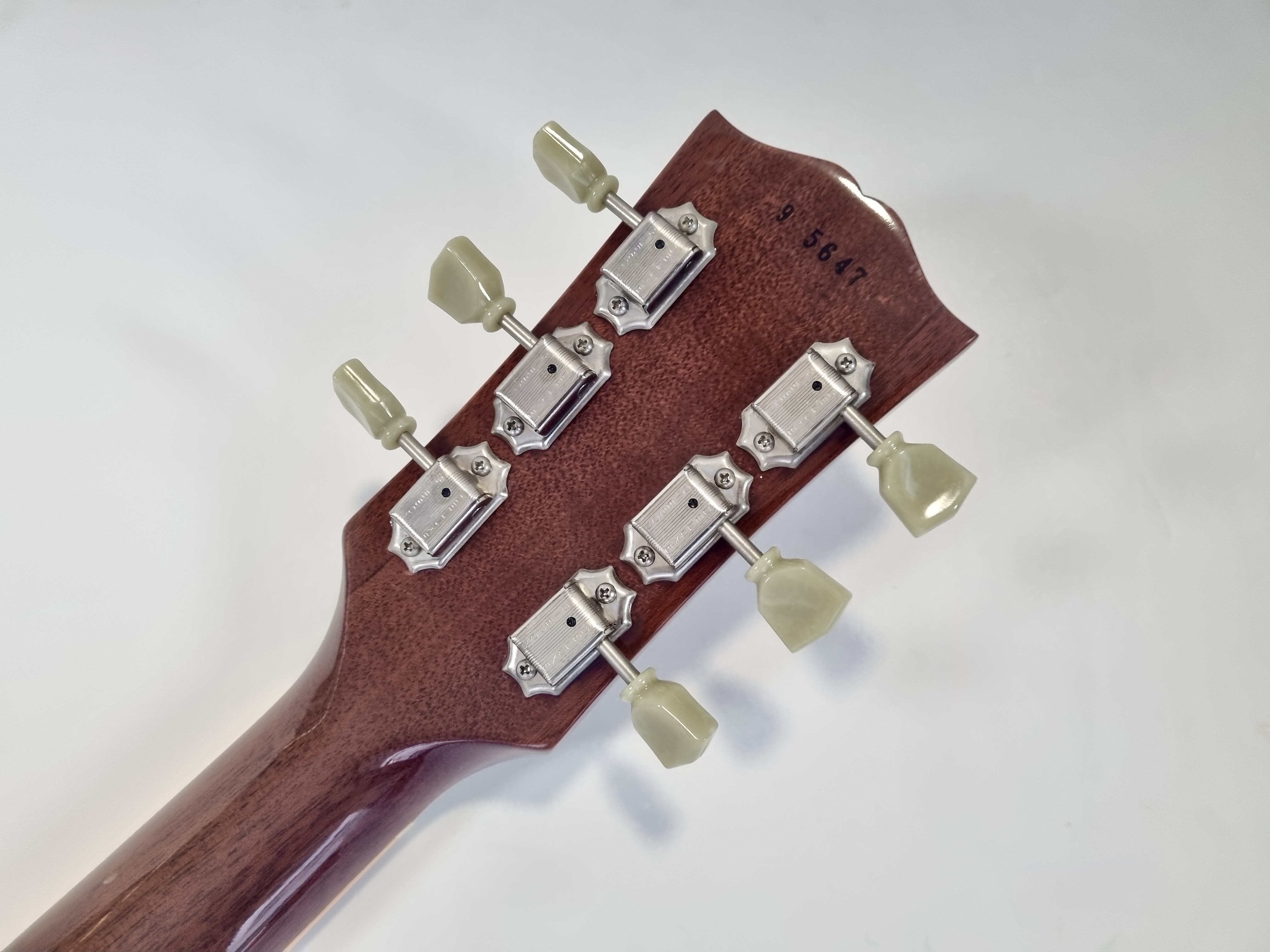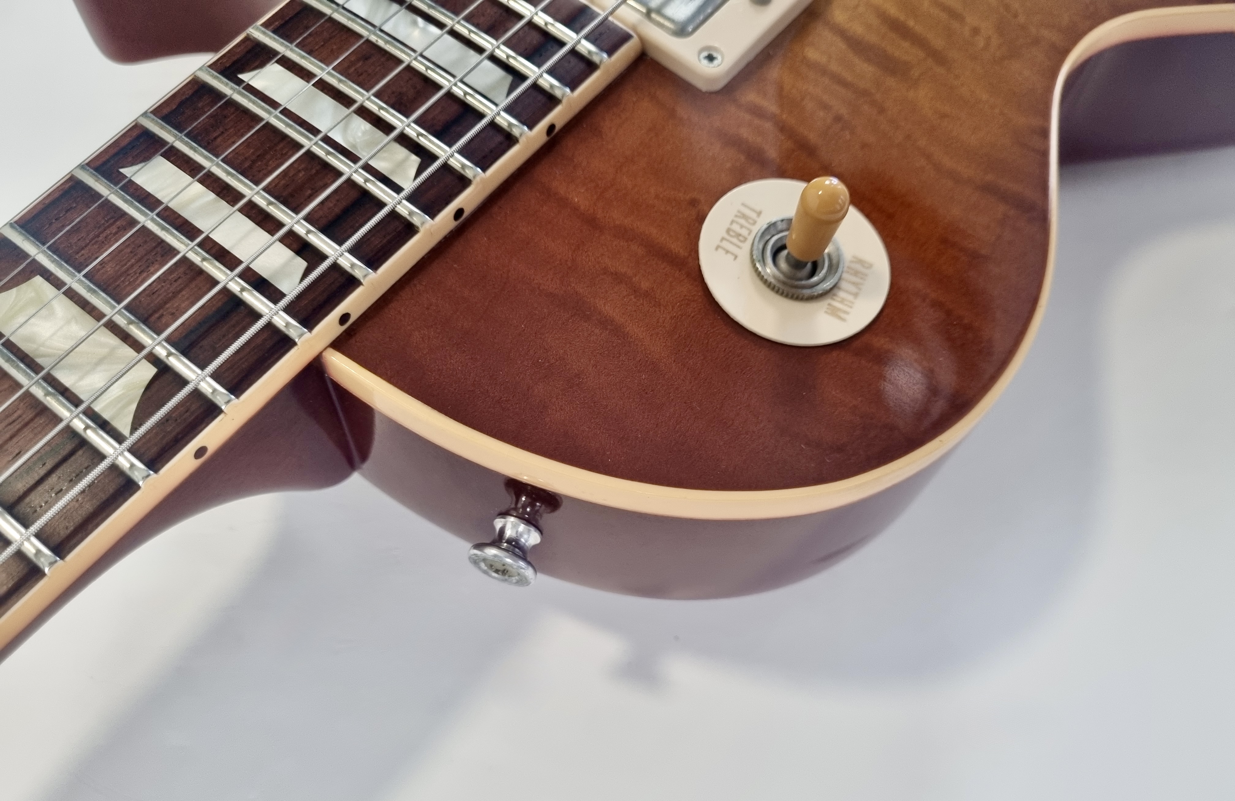 1959 est sans doute l’année la plus mythique pour Gibson… Cette R9 a un manche en acajou entre deux, ni trop gros, ni trop fin. La table en érable de celle-ci est très belle, flammée… Le corps est également en acajou et la touche en palissandre a un radius de 12 pouces. Sur cette Custom Shop les micros sont des Burstbuckers 1 et 2. Vendue dans son étui d’origine avec son certificat d’authenticité.Dépôt-vente, achat, vente, reprise, location.