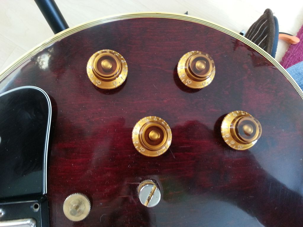 C'est la première fois que je possède une Gibson, et je ne pensais pas que celle-ci pouvait précisément avoir mon âge. Repérée sur un site de vente en ligne entre particuliers, cette Les Paul Custom Wine Red se trouvait à Paris (380km au dessus de chez moi). J'ai vu des photos, j'en ai parlé à ma femme et avec son accord, l'affaire était conclu.