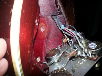 - Je démonte donc les cordes puis le micro chevalet ... aucun fil, ni même perçage (conduit) entre la vis du chevalet et le trou du micro.