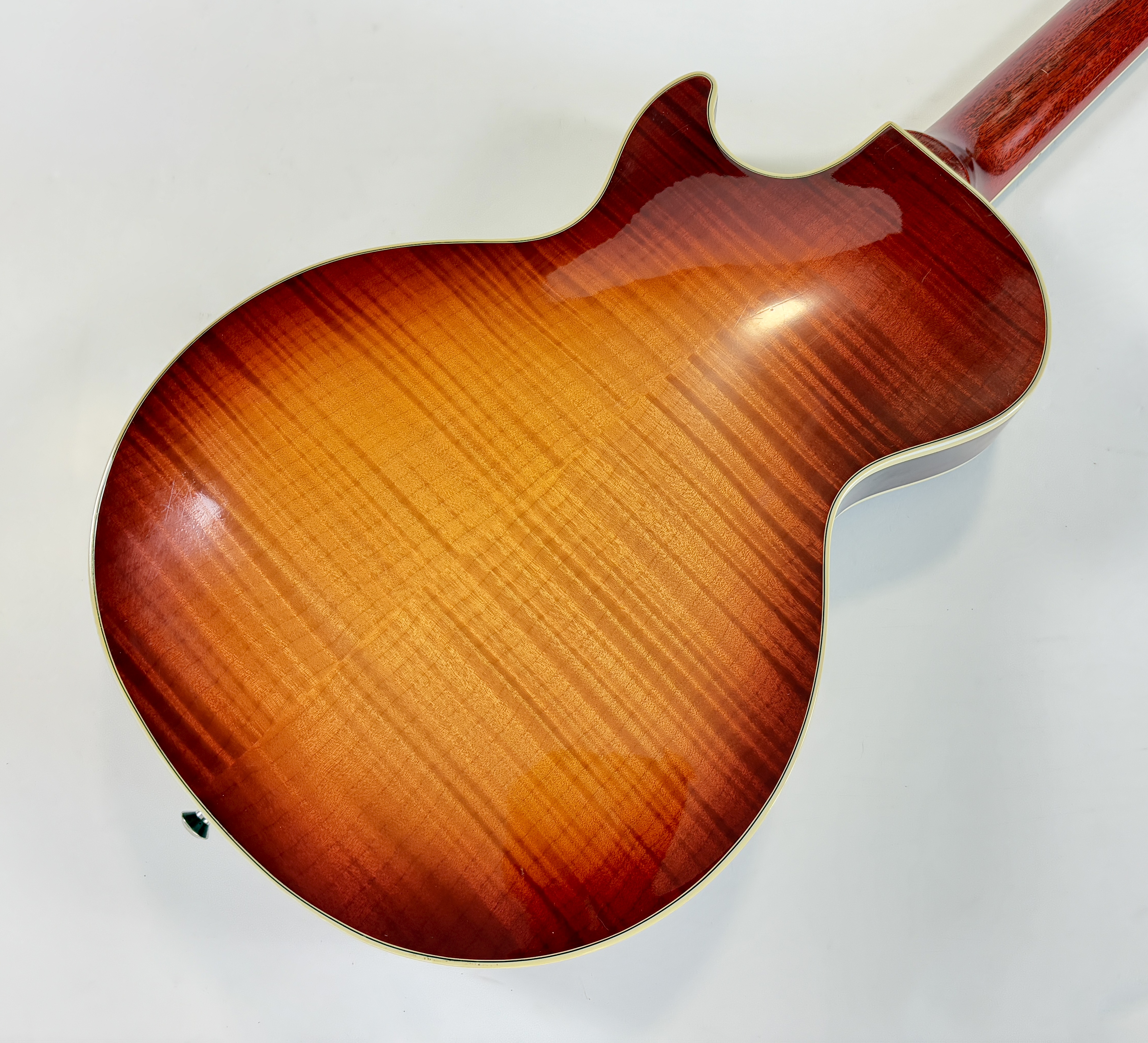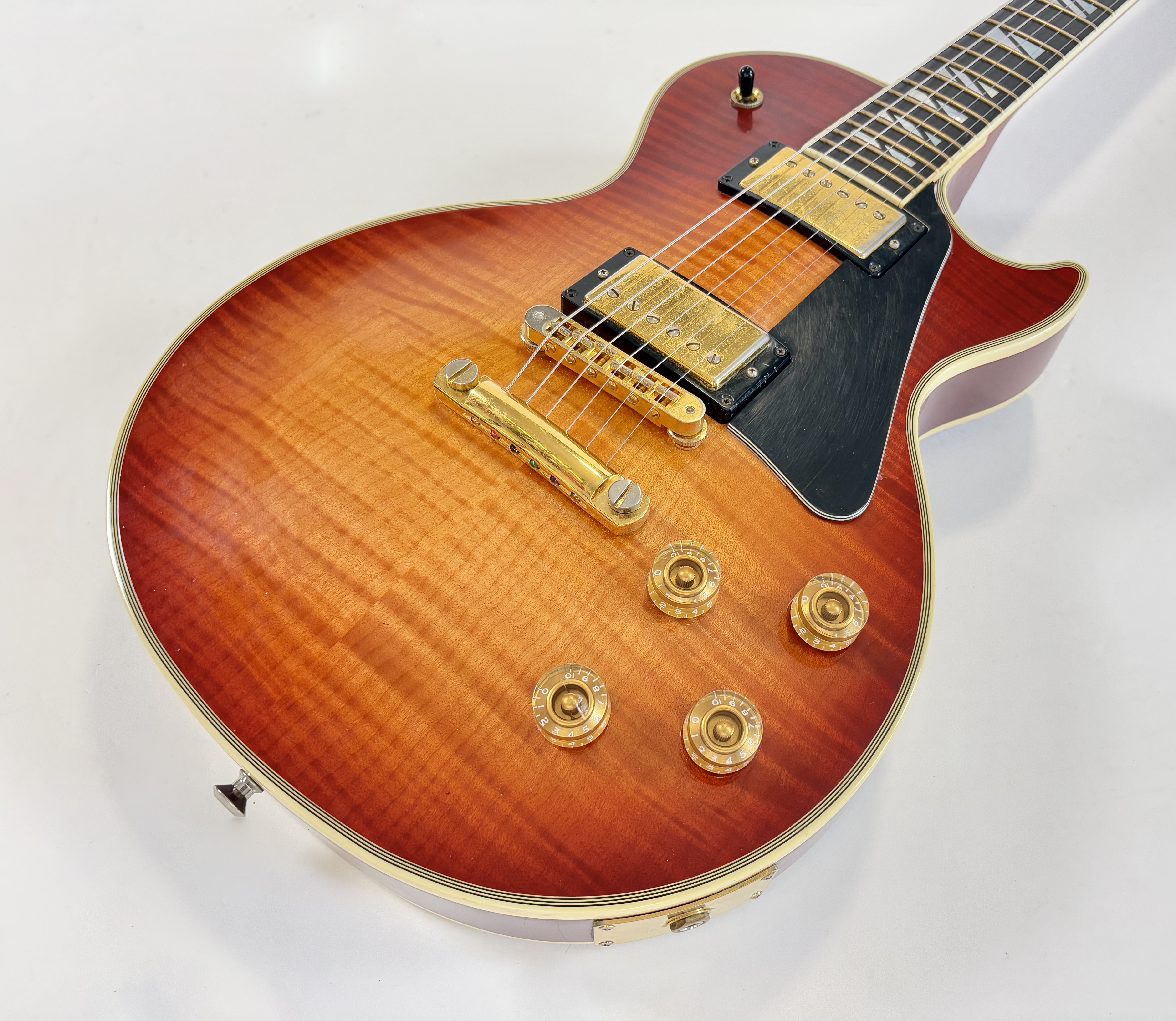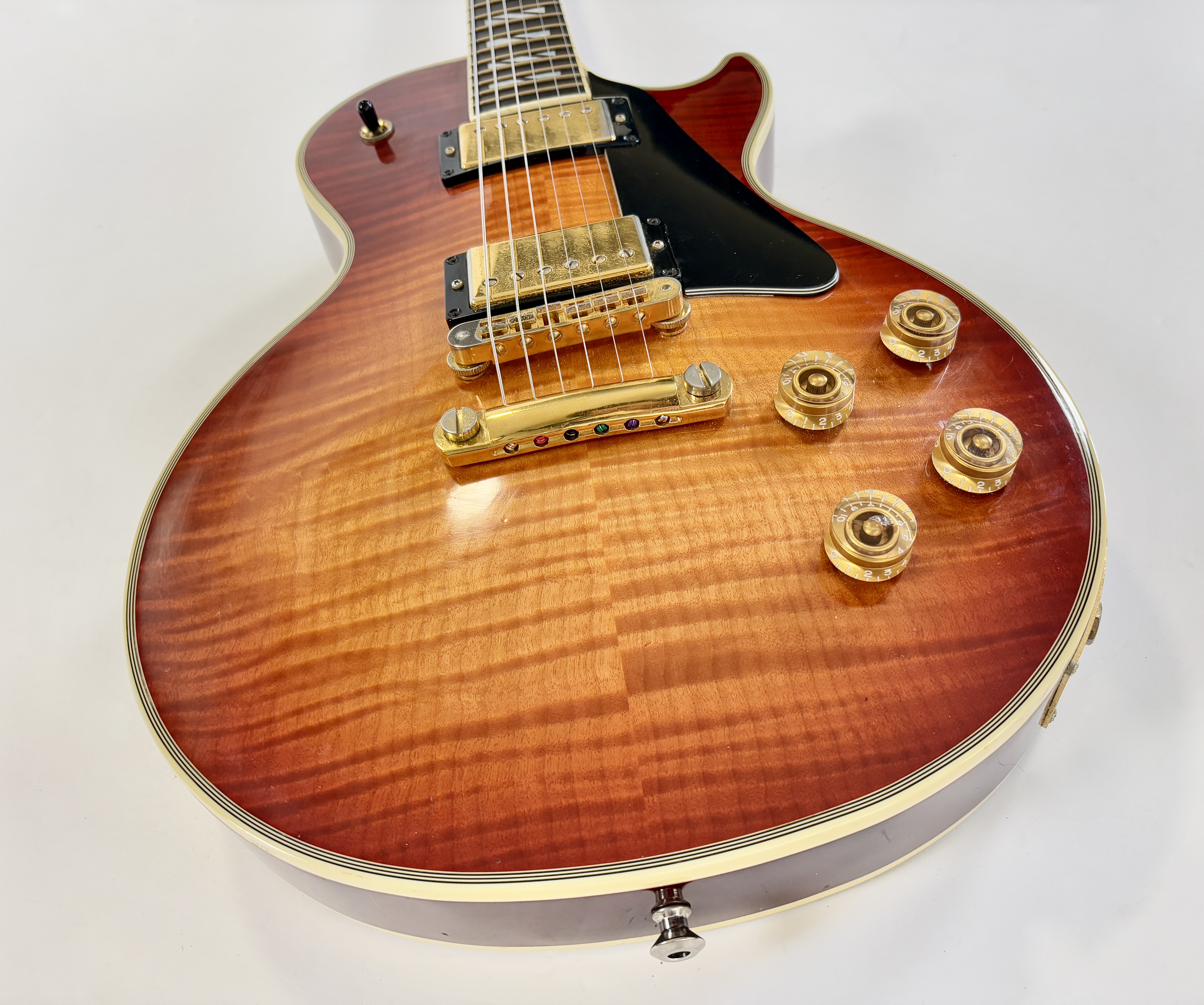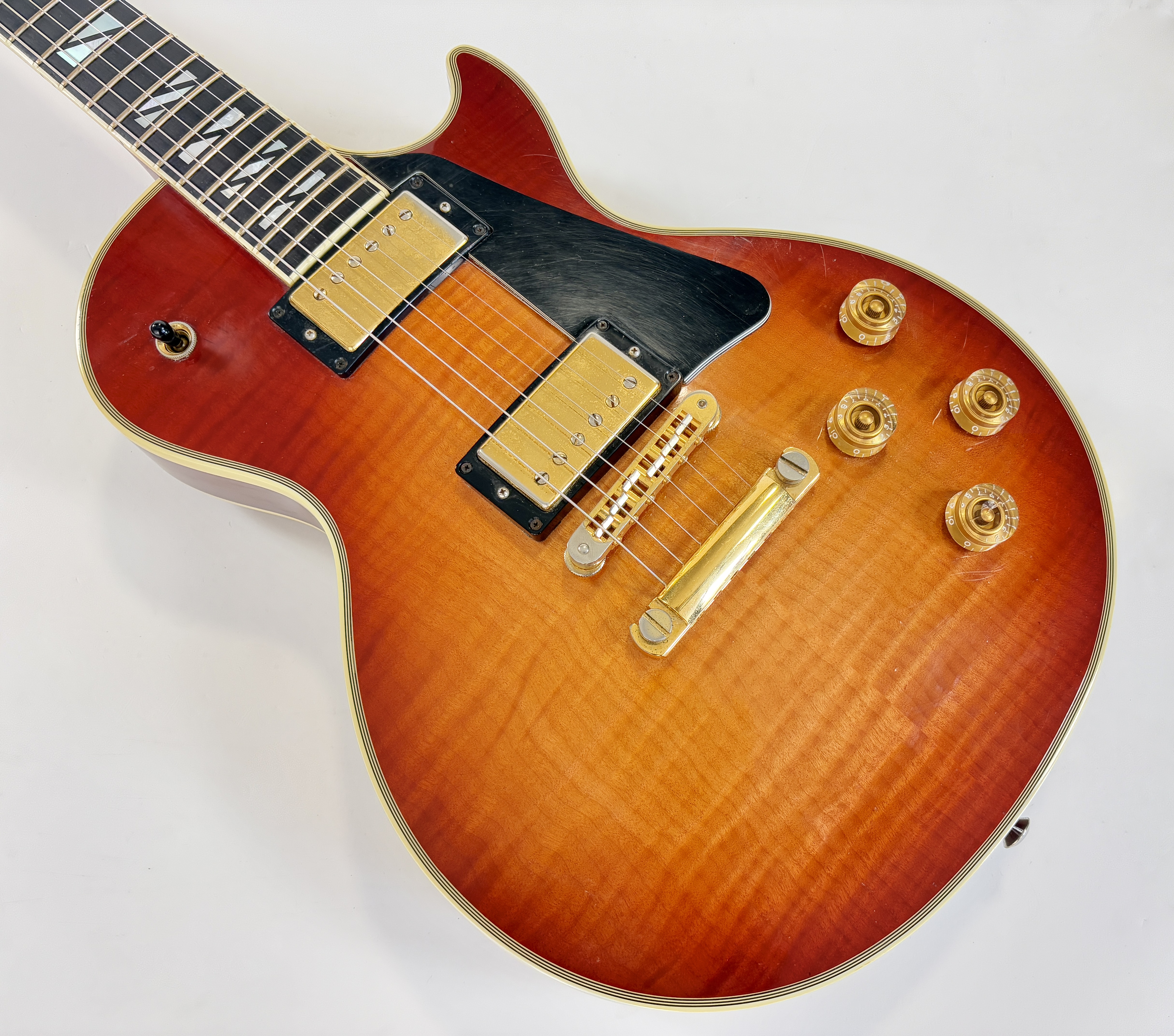 La Supreme s’éloigne des standards de la Les Paul et offre des caractéristiques inédites. Dotée d’un corps chambered en acajou, elle dispose d’une table bombée en érable AAAA ainsi qu’un dos construit de la même façon. Ainsi la Supreme est un peu plus épaisse qu’une Les Paul traditionnelle. A la manière d'une Custom elle s'offre de beaux bindings, on trouve aussi des inlays travaillés sur la touche ou encore une incrustation inédite sur le placage de tête. Côté micro on trouve le duo 490R et 498T, doux en manche et puissant en chevalet. La touche au radius compensé de 10 à 16 pouces est faite d’ébène. Un pickguard a été ajouté sur cet exemplaire afin de masquer l'usure du temps sur son vernis. Vendue dans son étui d'origine.Dépôt-vente, achat, vente, reprise, location.