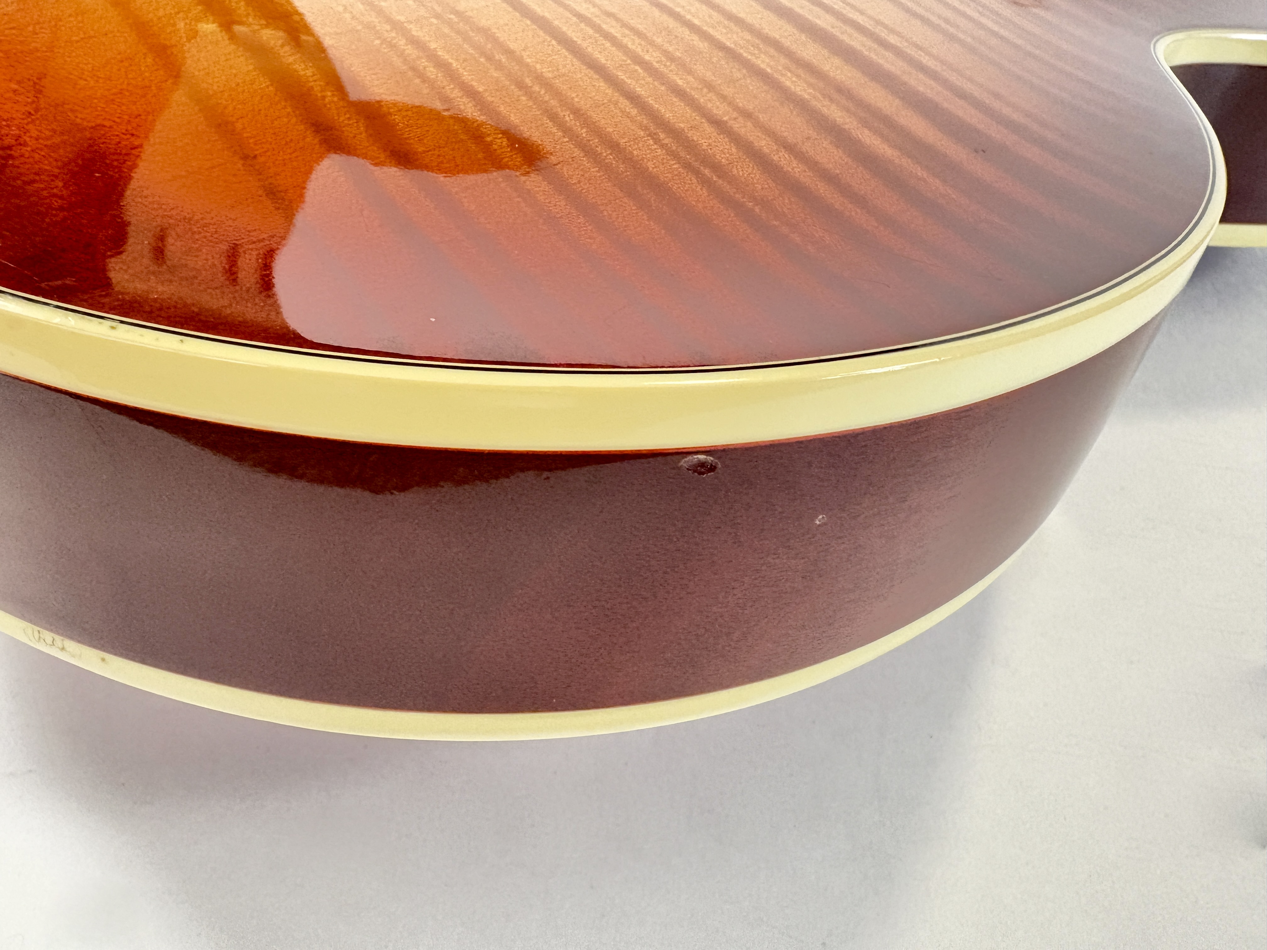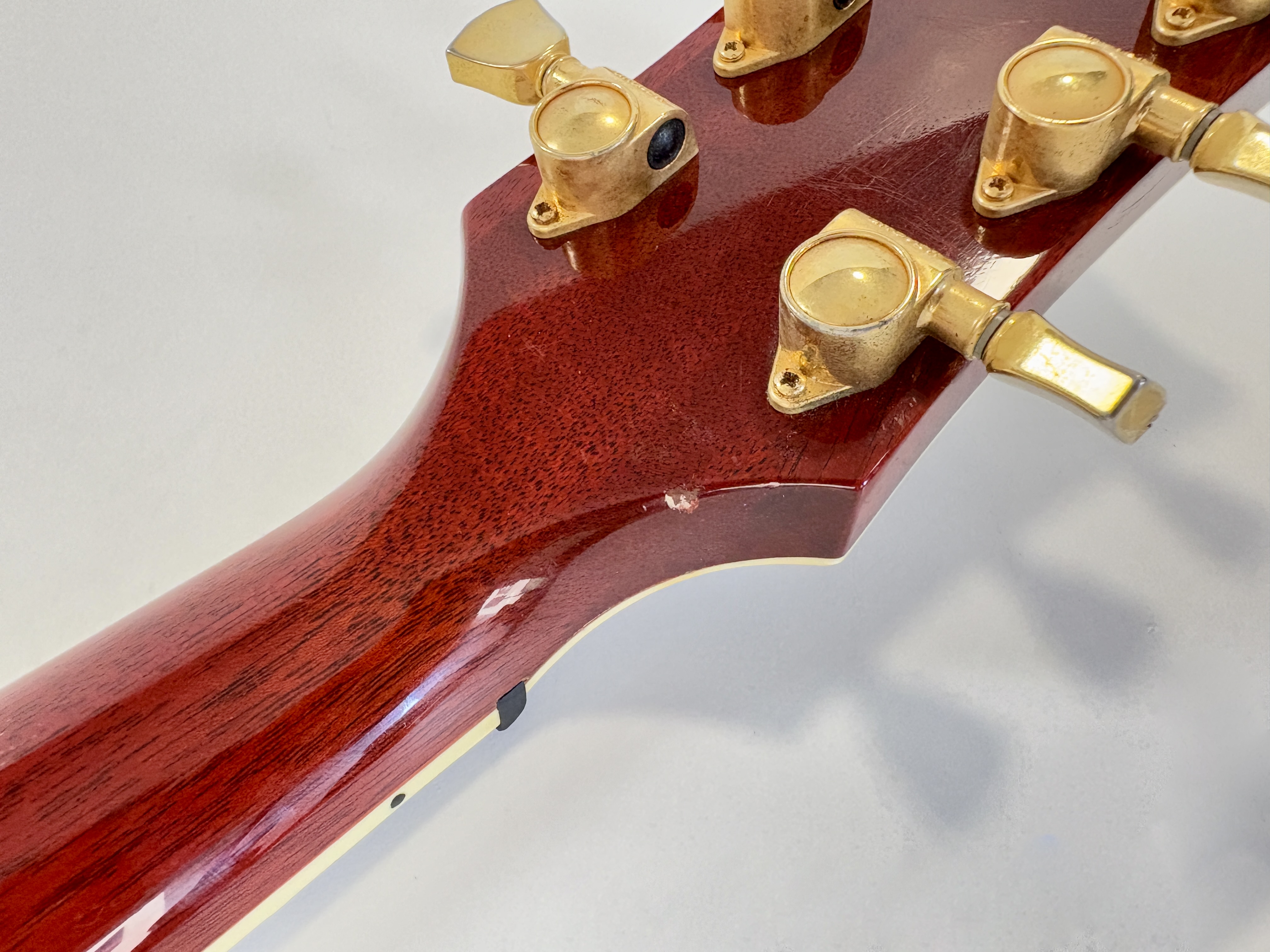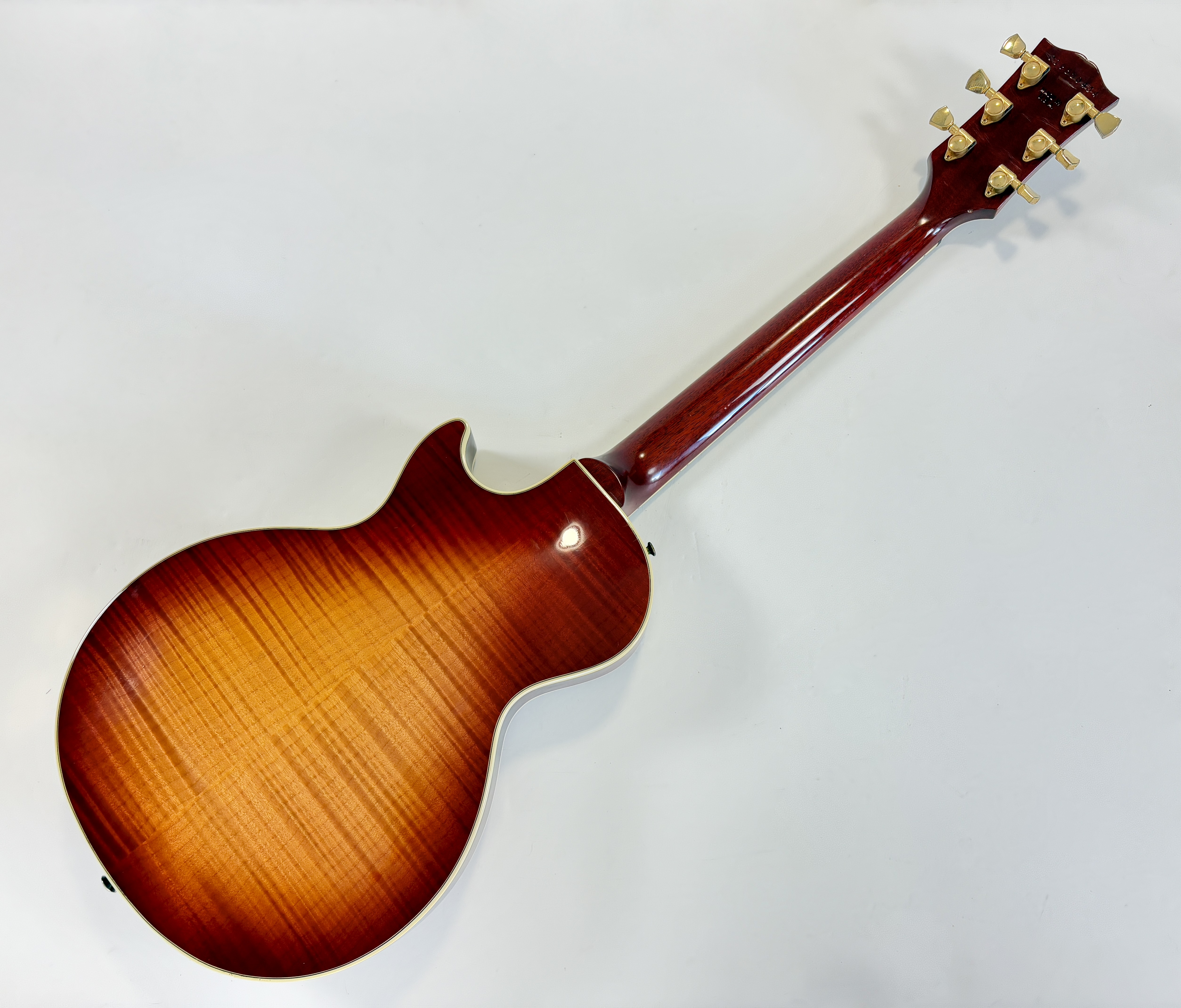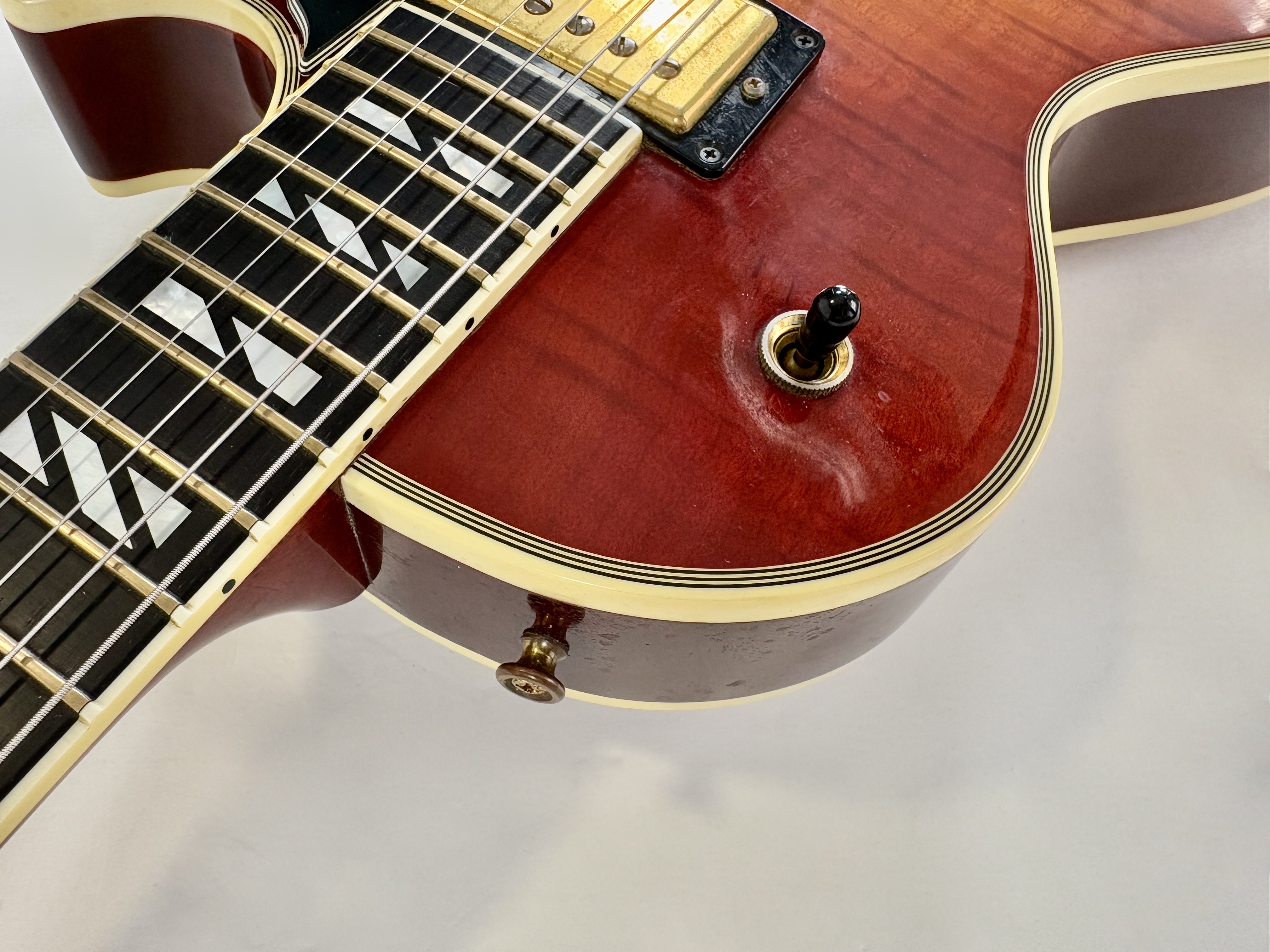 La Supreme s’éloigne des standards de la Les Paul et offre des caractéristiques inédites. Dotée d’un corps chambered en acajou, elle dispose d’une table bombée en érable AAAA ainsi qu’un dos construit de la même façon. Ainsi la Supreme est un peu plus épaisse qu’une Les Paul traditionnelle. A la manière d'une Custom elle s'offre de beaux bindings, on trouve aussi des inlays travaillés sur la touche ou encore une incrustation inédite sur le placage de tête. Côté micro on trouve le duo 490R et 498T, doux en manche et puissant en chevalet. La touche au radius compensé de 10 à 16 pouces est faite d’ébène. Un pickguard a été ajouté sur cet exemplaire afin de masquer l'usure du temps sur son vernis. Vendue dans son étui d'origine.Dépôt-vente, achat, vente, reprise, location.