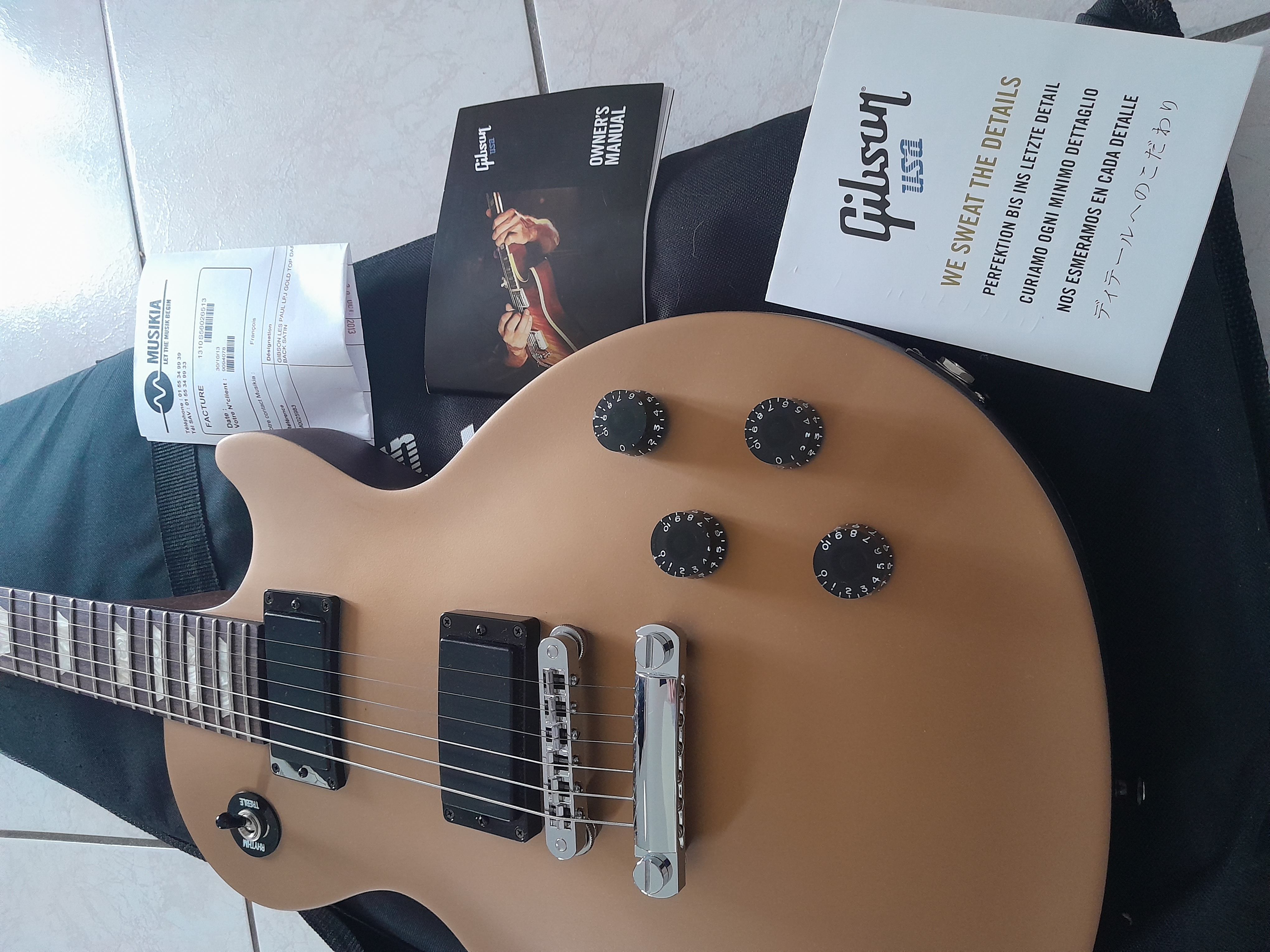 J'ai acheté le 30 octobre 2013 a Paris au magasin Musikia, donc facture, documentation d'origine, accessoires et gigbag sont fournis.