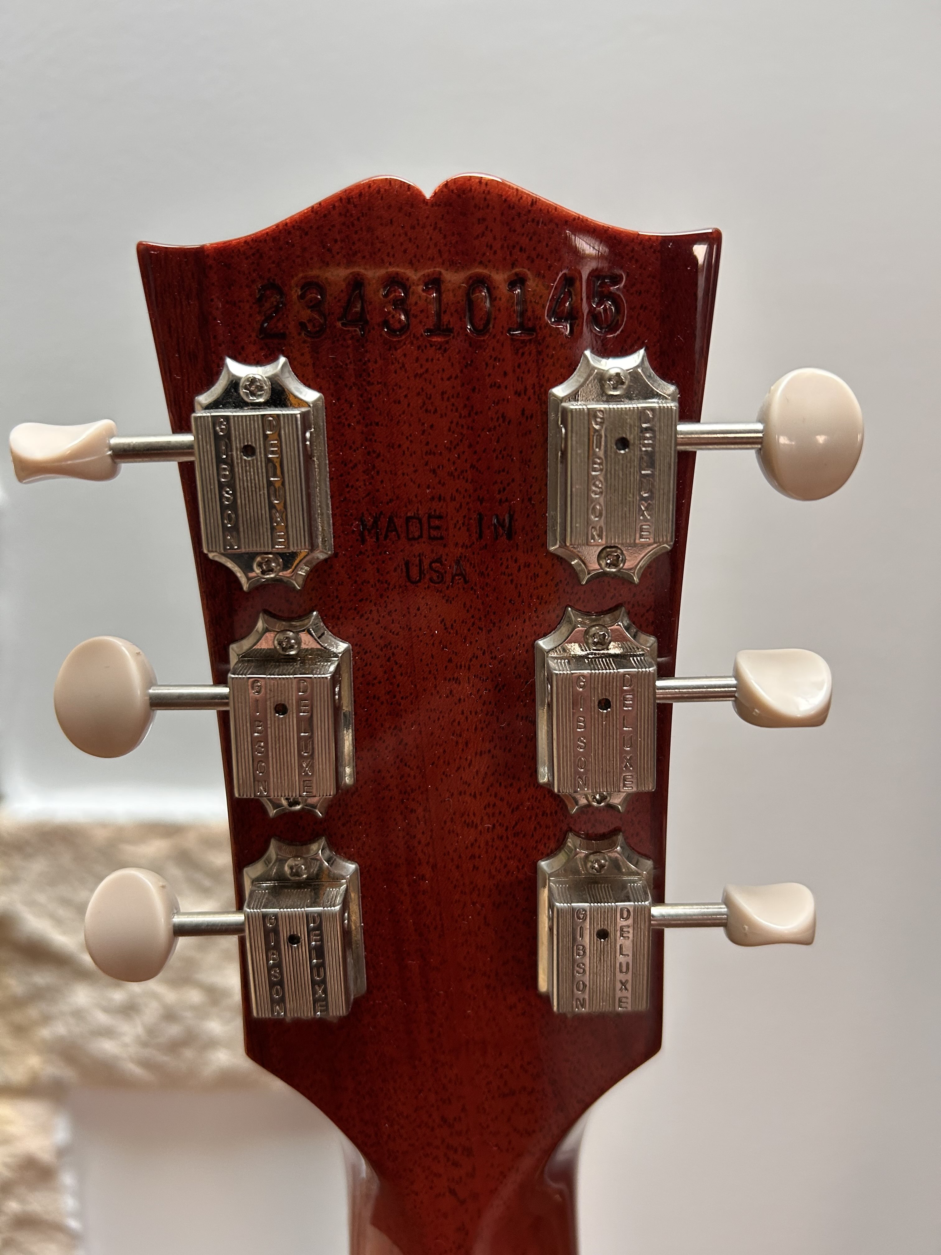 Manche assez épais vintage Gibson, action très basse, très agréable à jouer. Réglage d’usine nickel cf photo. Légère pour une Les Paul.