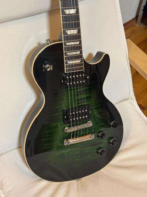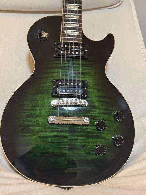 Édition limitée, modèle hors production. Je vends cette guitare en état quasi neuf. Pour une Les Paul sans allègement de poids, elle pèse un poids très confortable de 4 kg.