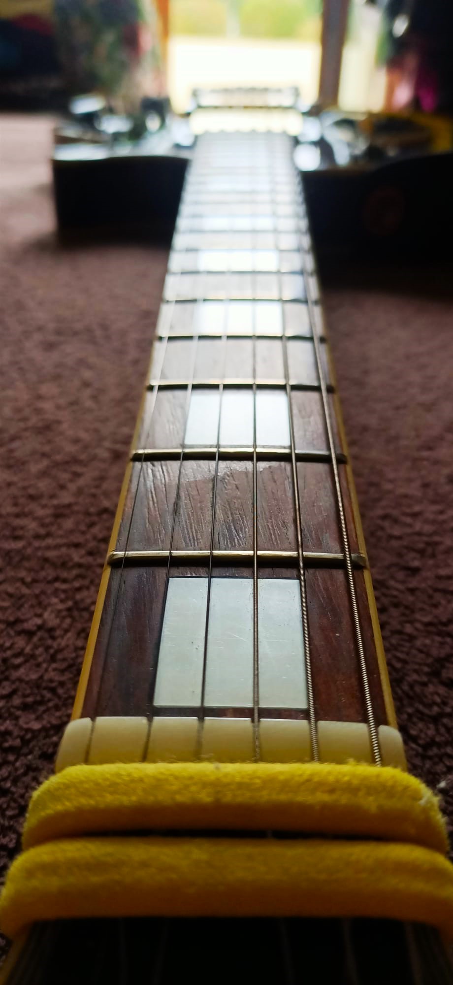 --- superbe guitare qui traverse tres bien le temps en bonne forme, quelques griffures peu visible au dos qui stigmantise son bel âge mais jamais aucune reparation a deplorer.
