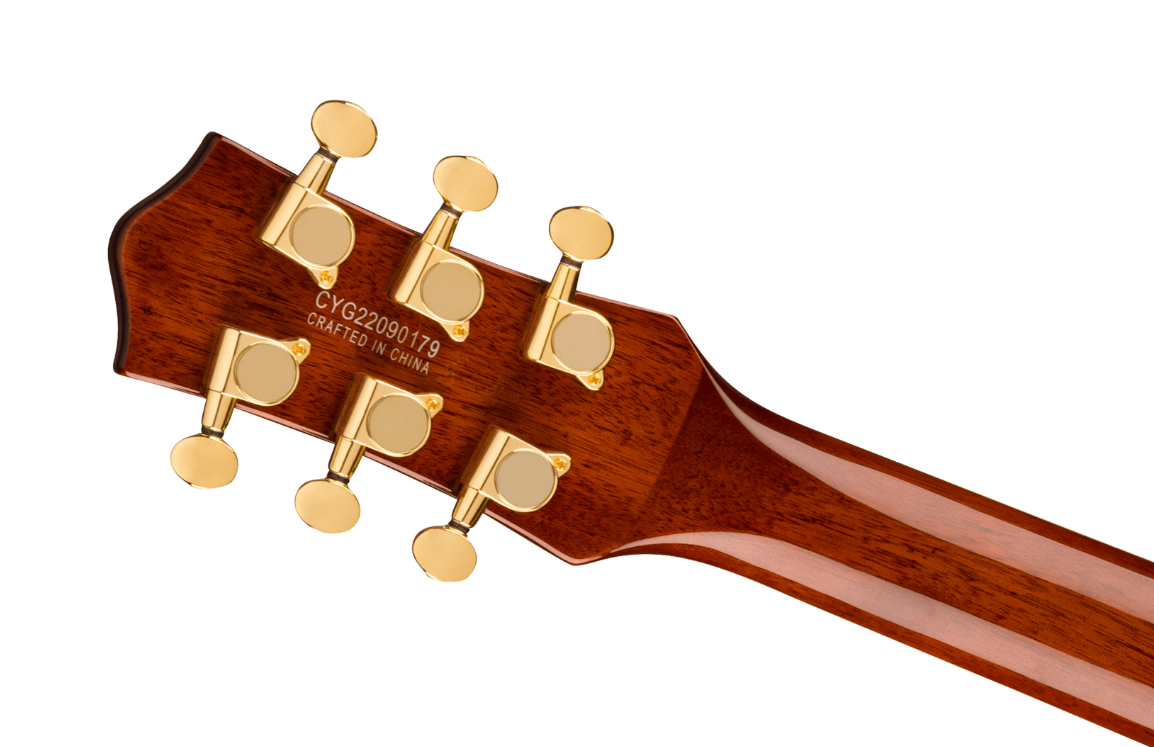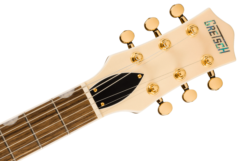 Les finitions à deux teintes des corps, l'accastillage doré et les micros FT-5E Filter'Tron avec des inserts crème présentent une élégance simple et raffinée qui ne manquera pas de faire tourner les têtes.