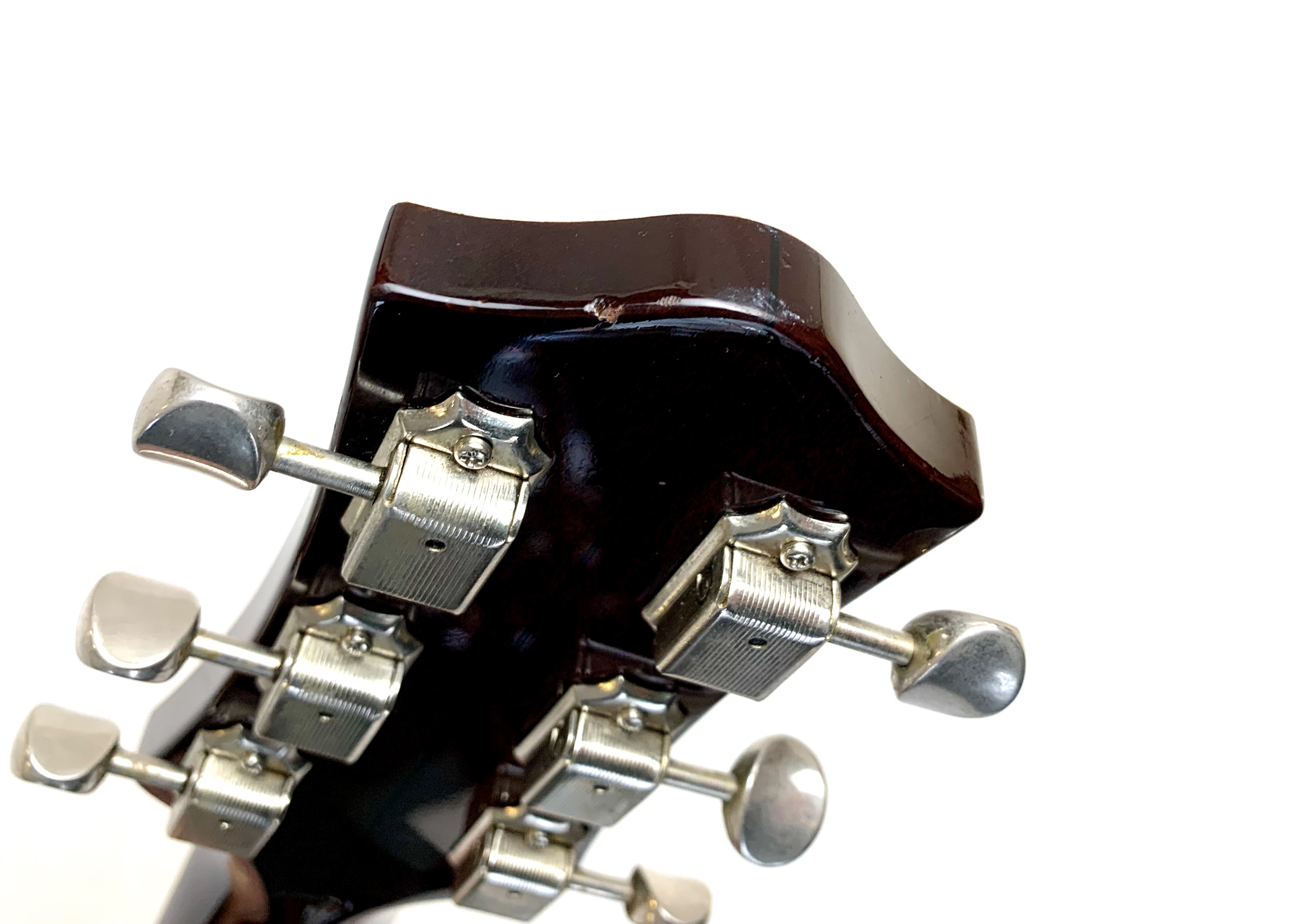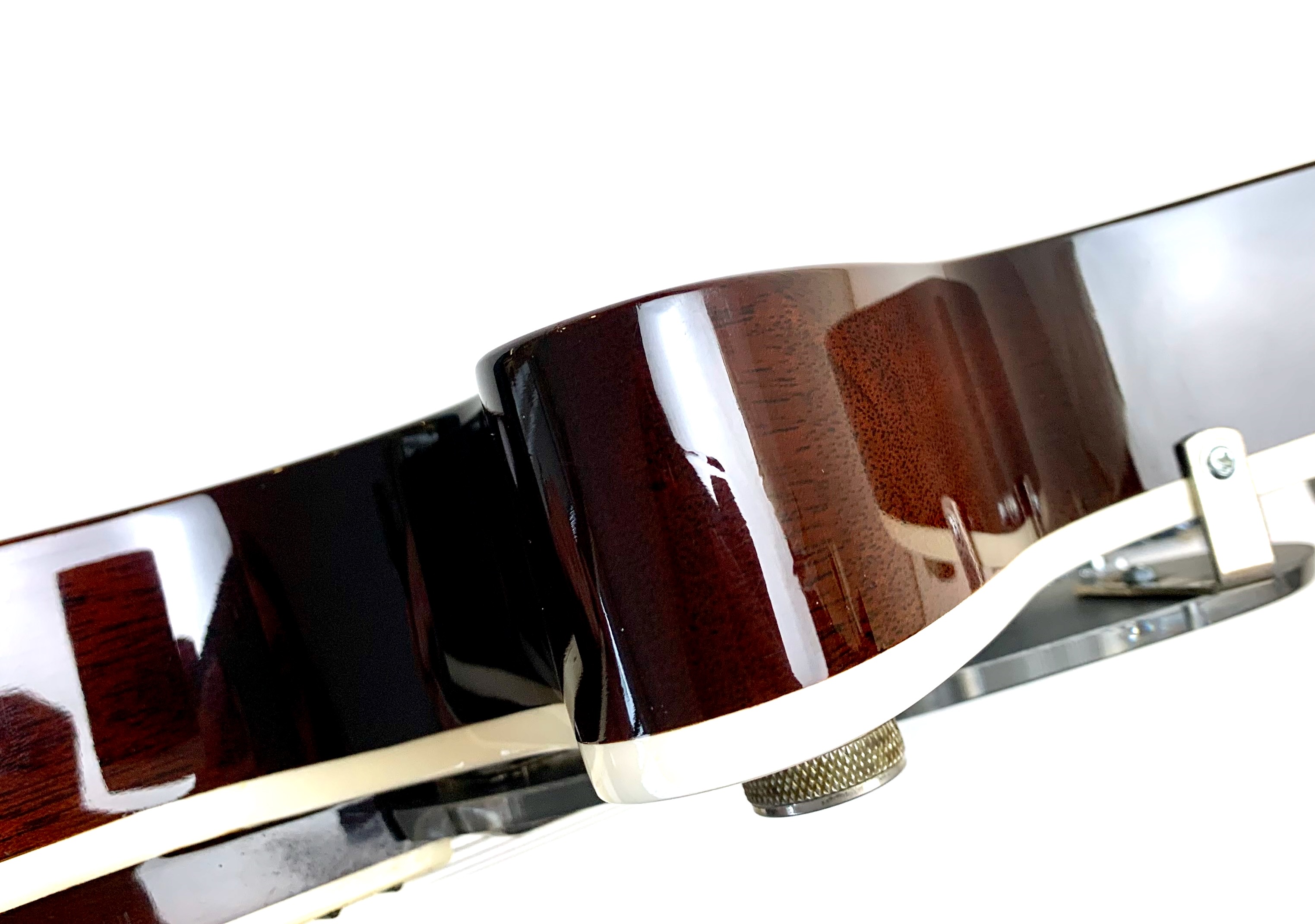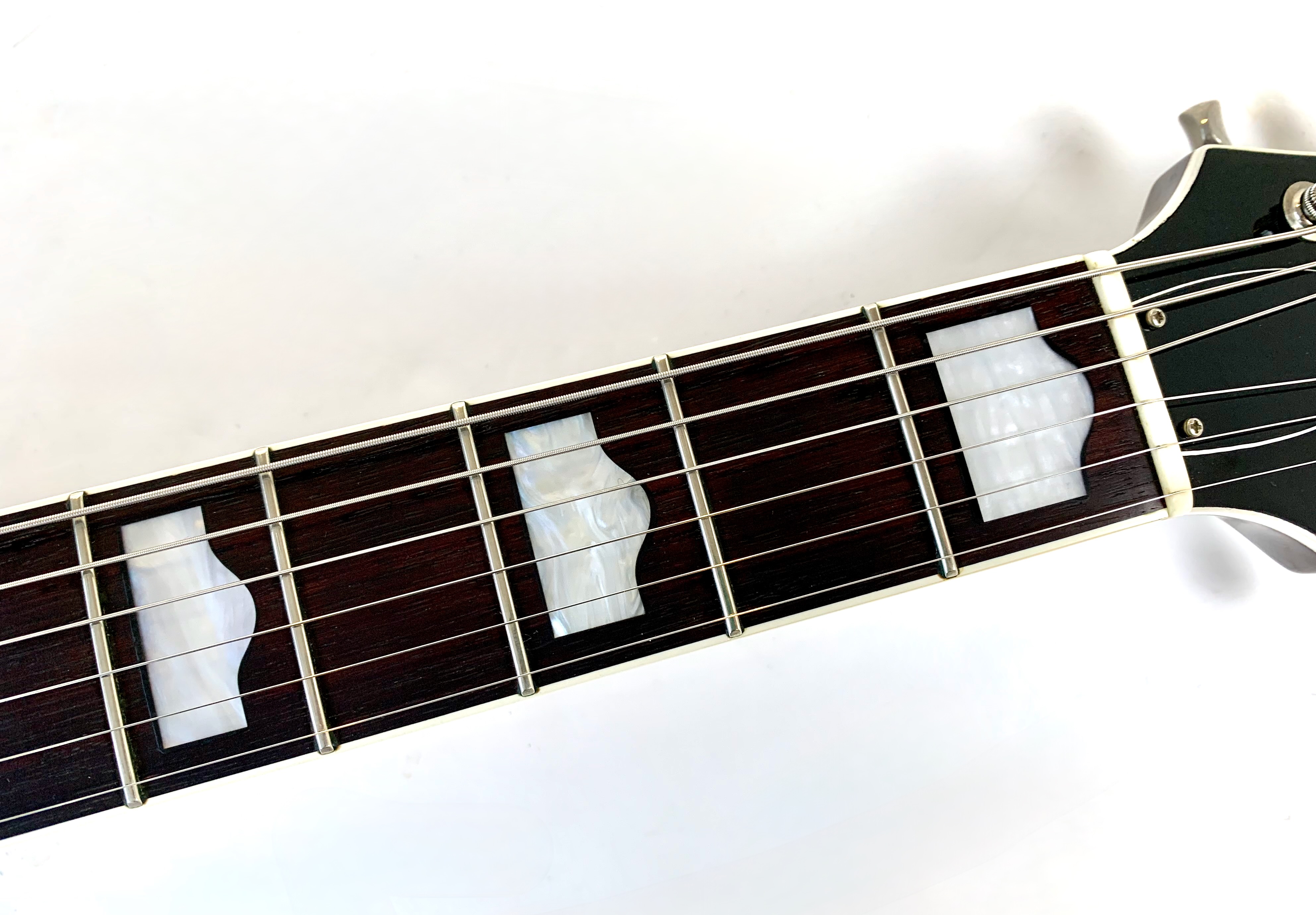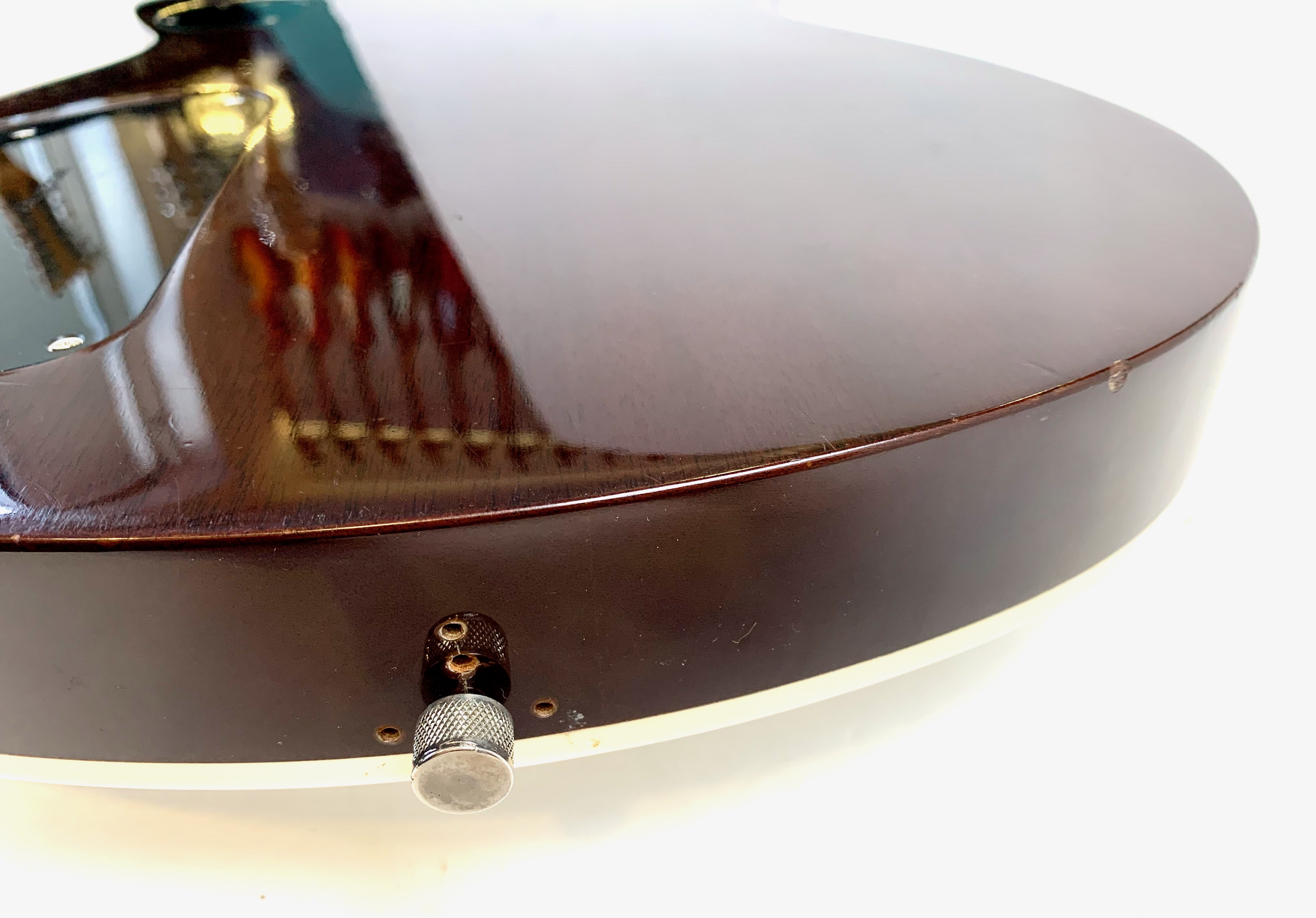 La Jet est lancée en 1953, niveau design elle pioche son inspiration de la Gibson Les Paul tout en étant construite très différemment : elle est en partie creuse. Cette 6129 faite au Japon est dotée d’une paire de micros FilterTron, on notera la présence d'une touche en ébène. C'est un modèle pré-Fender dont le Bigsby a été remplacé par un Tune-O-Matic avec Stopbar. Habillée comme une princesse avec sa table à paillettes elle est prête pour se retrouver sous les projecteurs. Vendue avec ses papiers dans son étui d’origine.Location, achat, vente, reprise, dépôt-vente.