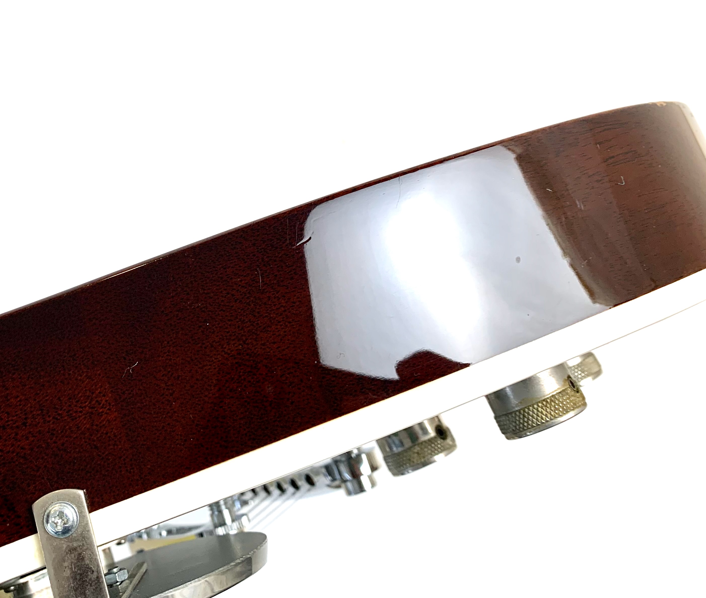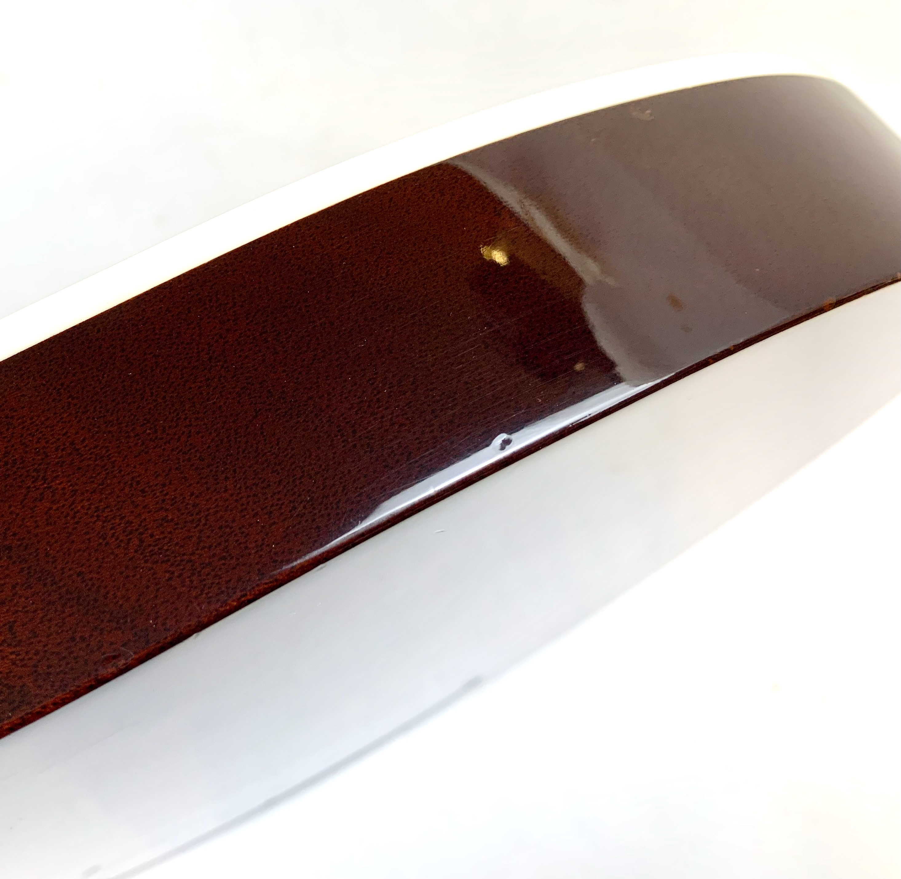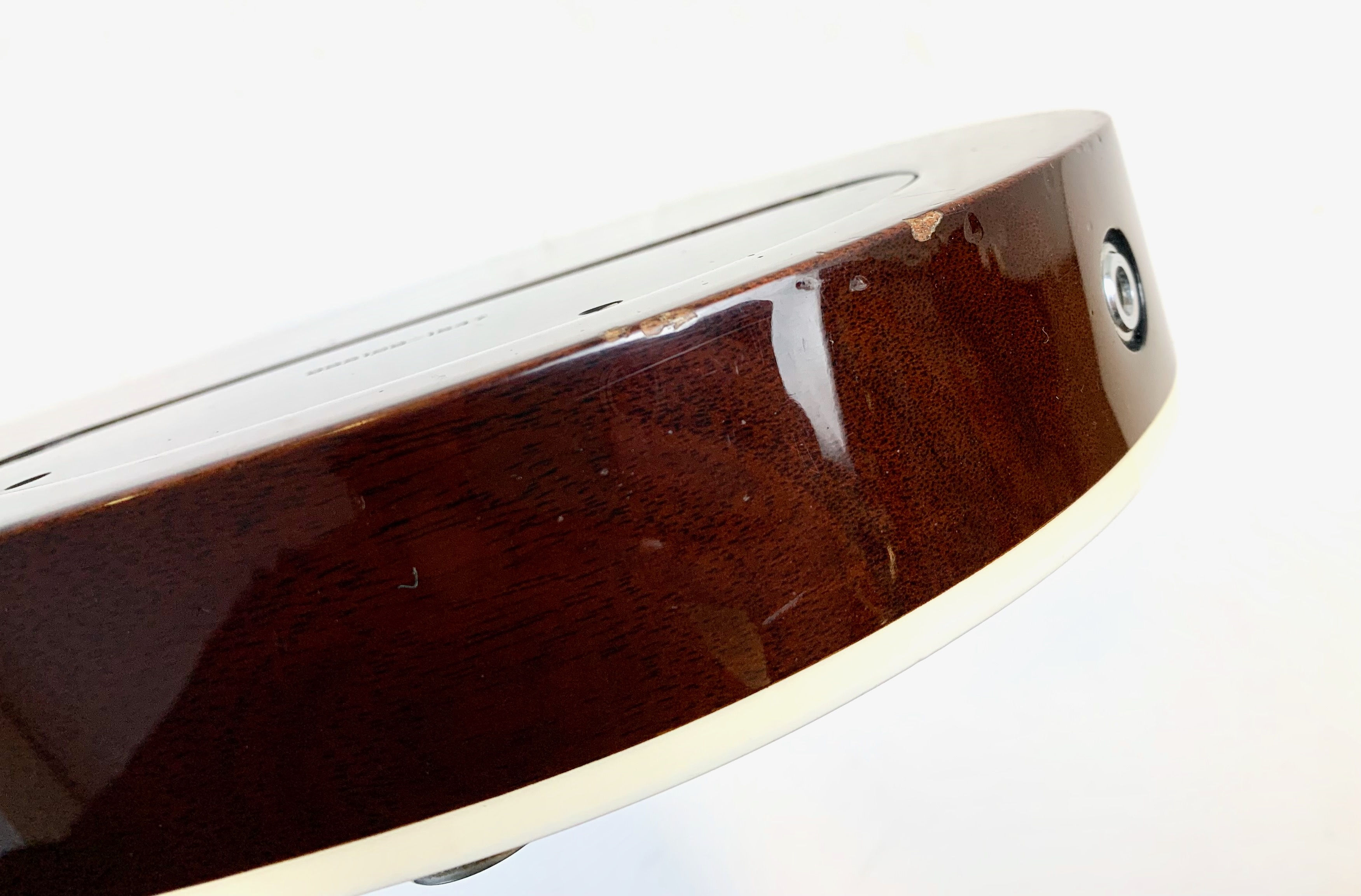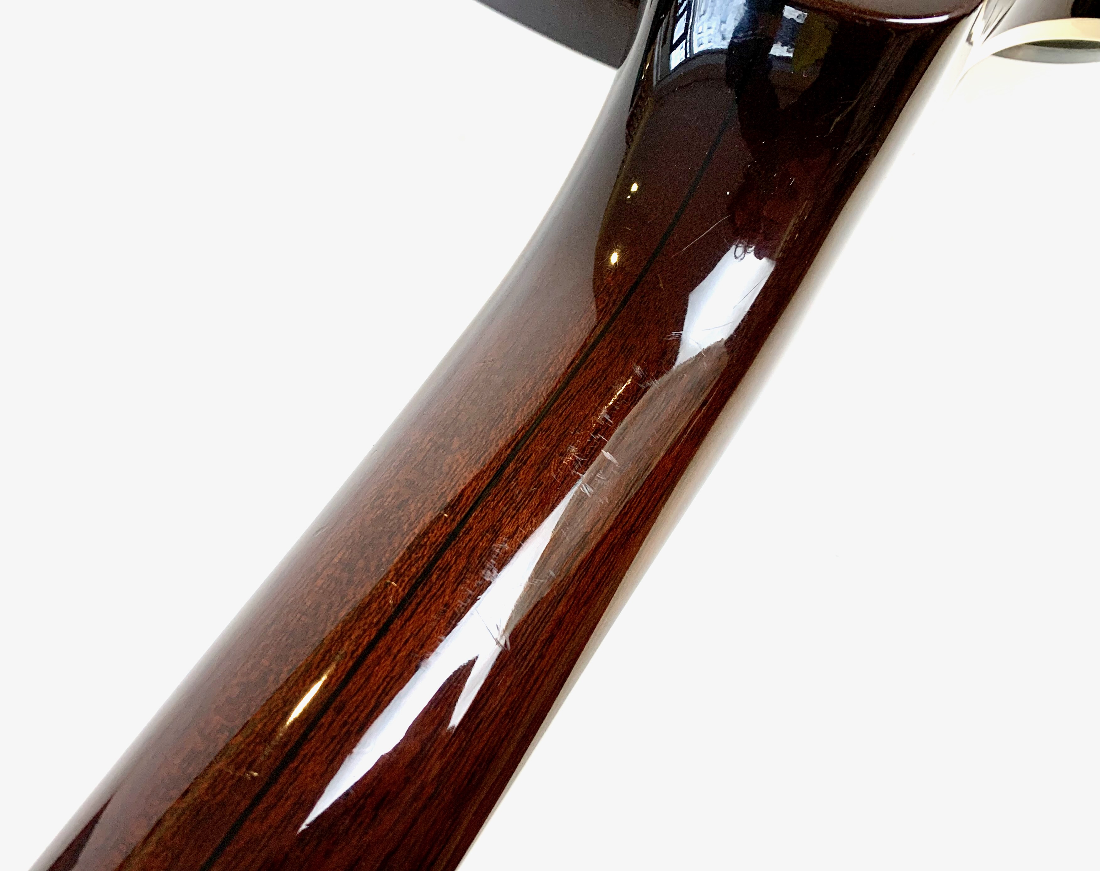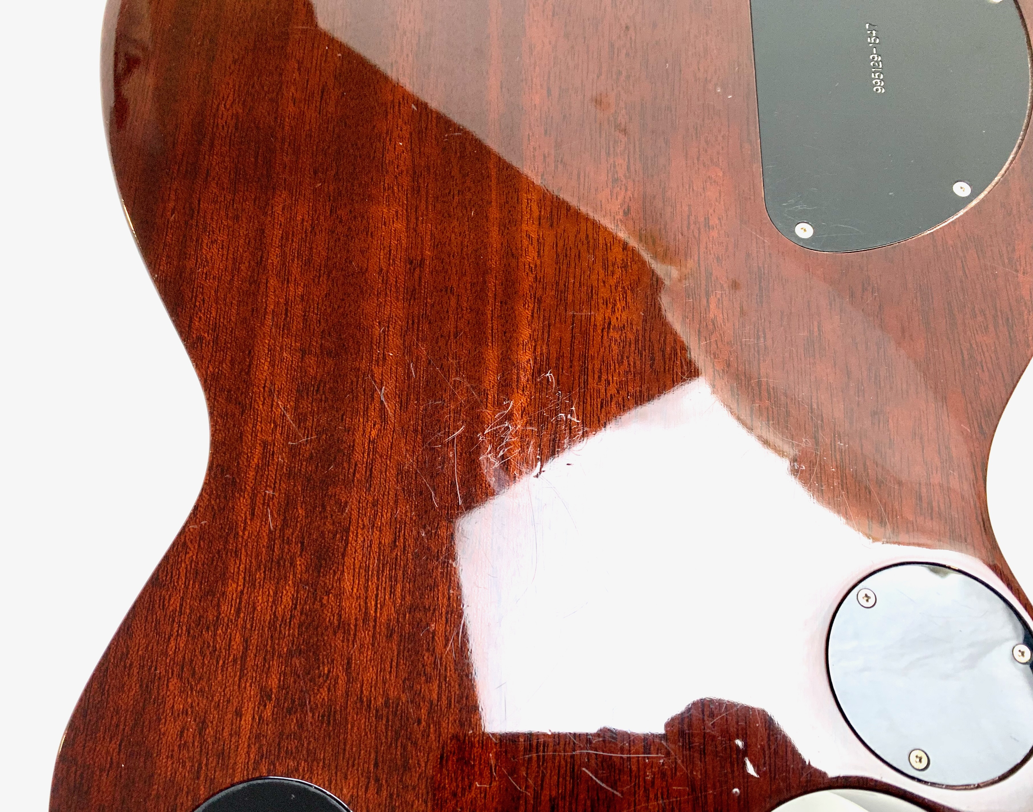 La Jet est lancée en 1953, niveau design elle pioche son inspiration de la Gibson Les Paul tout en étant construite très différemment : elle est en partie creuse. Cette 6129 faite au Japon est dotée d’une paire de micros FilterTron, on notera la présence d'une touche en ébène. C'est un modèle pré-Fender dont le Bigsby a été remplacé par un Tune-O-Matic avec Stopbar. Habillée comme une princesse avec sa table à paillettes elle est prête pour se retrouver sous les projecteurs. Vendue avec ses papiers dans son étui d’origine.Location, achat, vente, reprise, dépôt-vente.