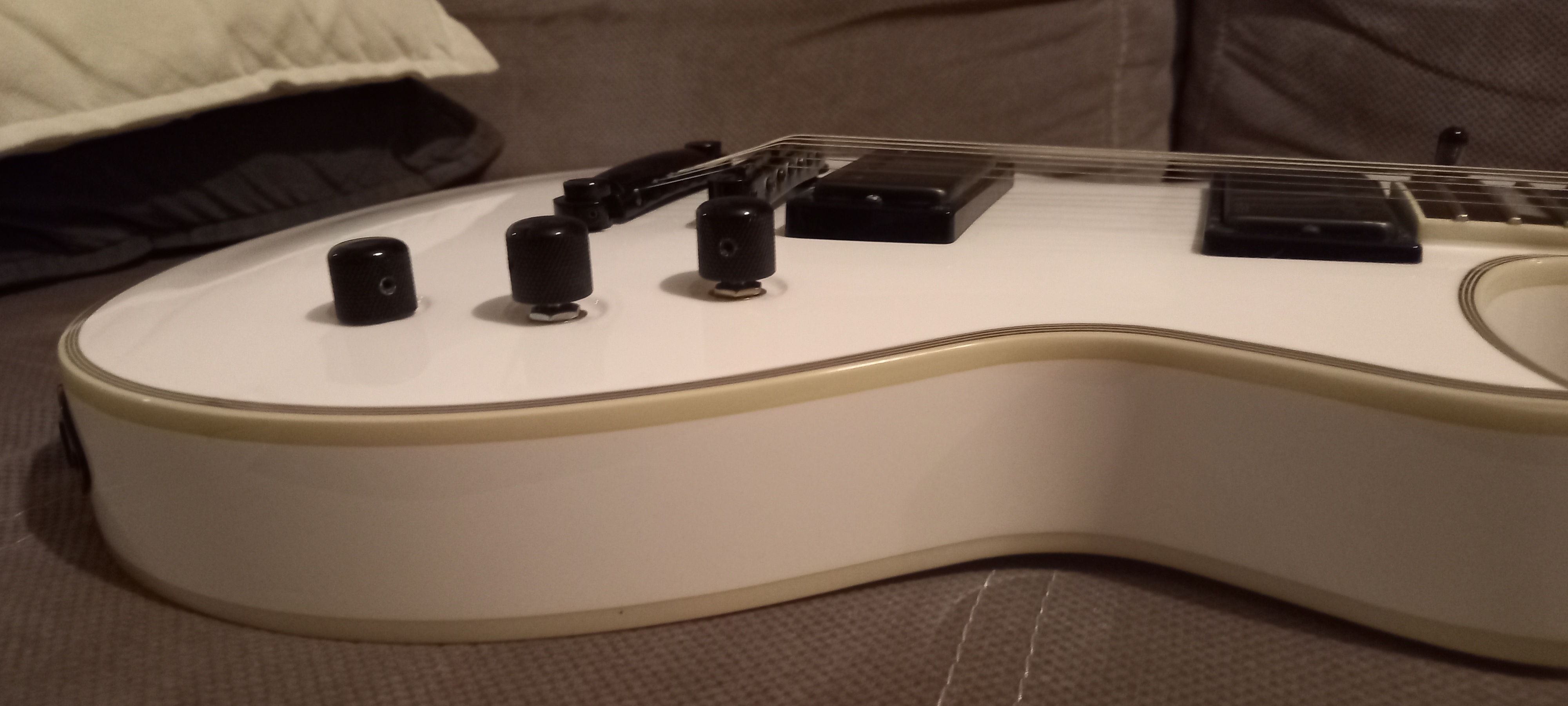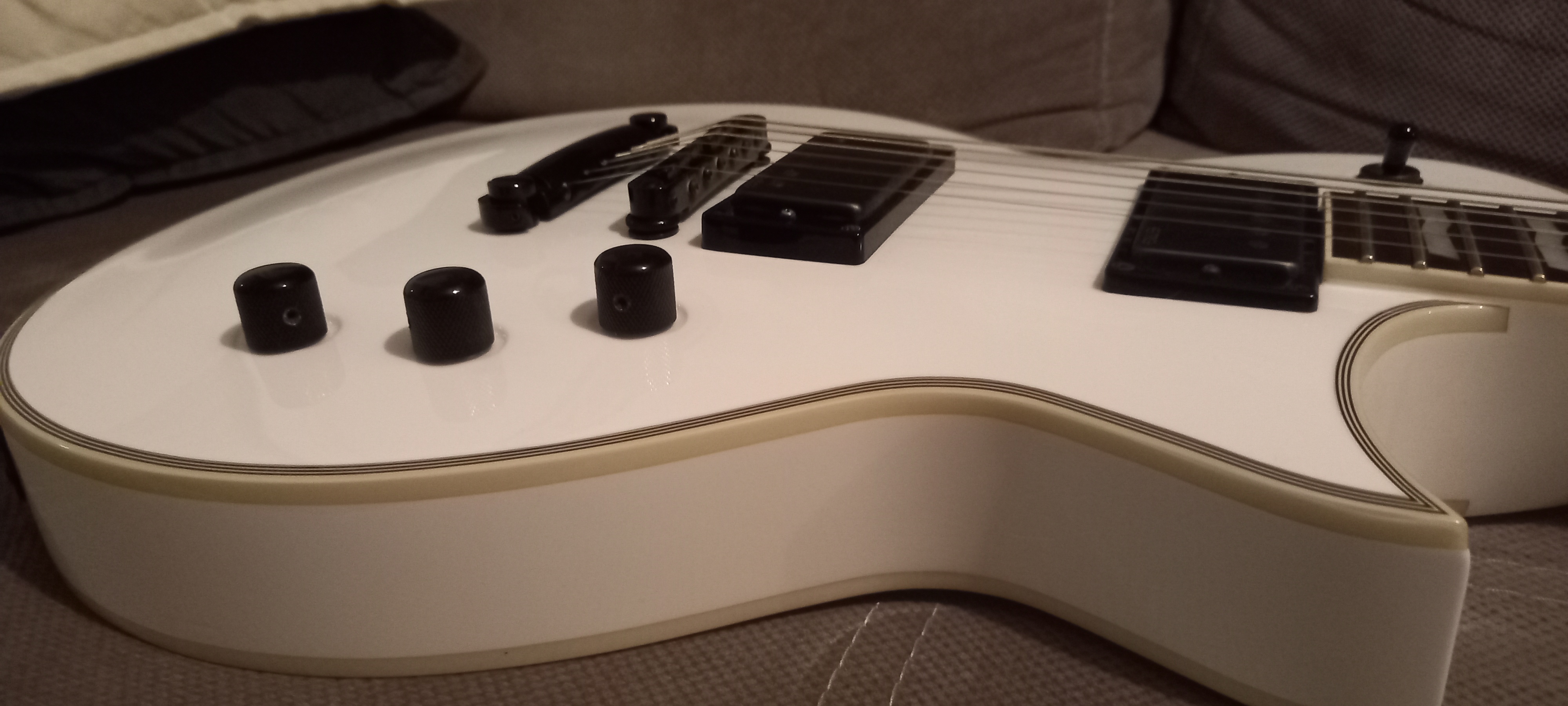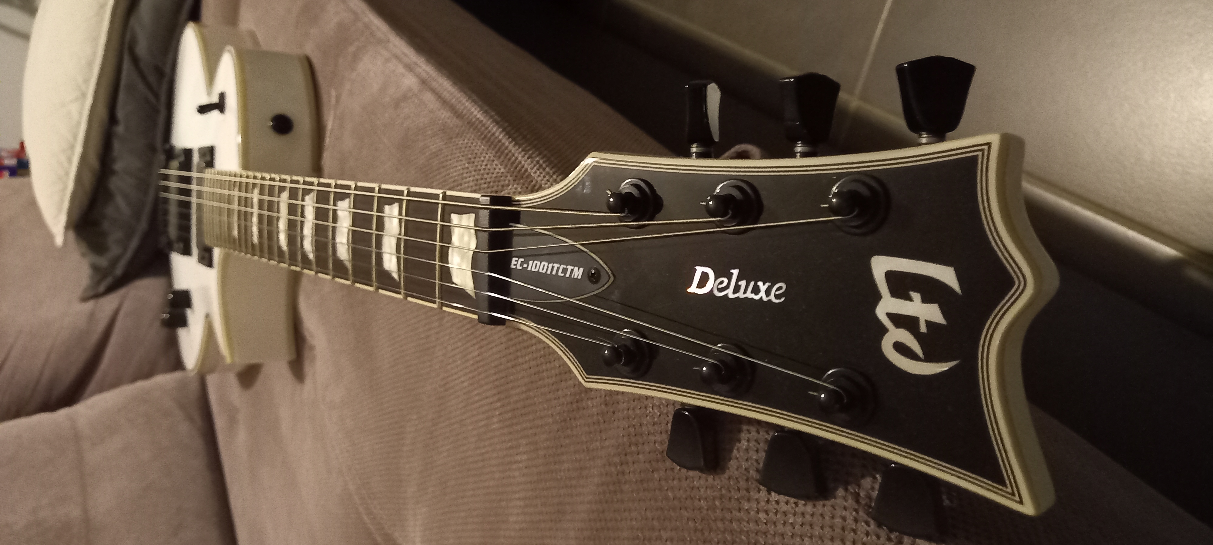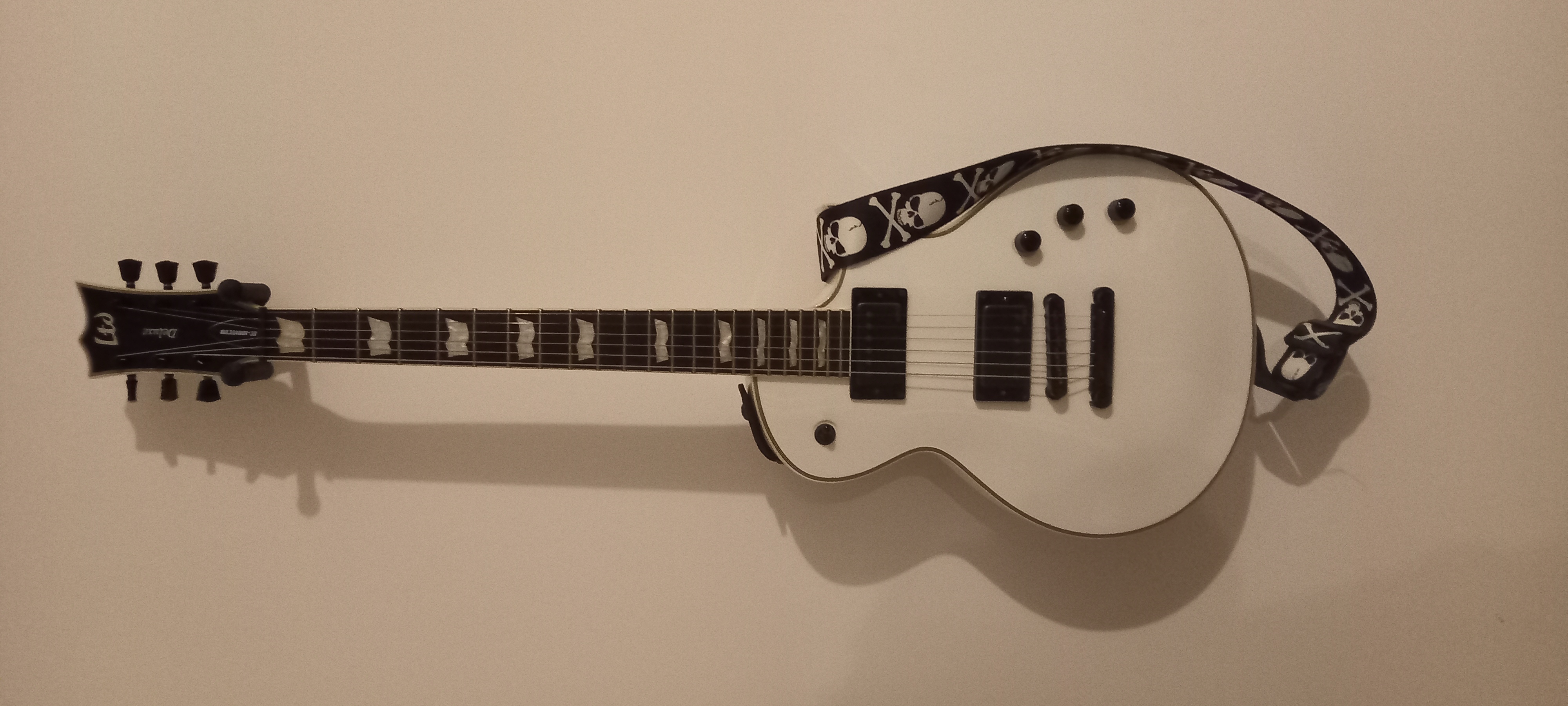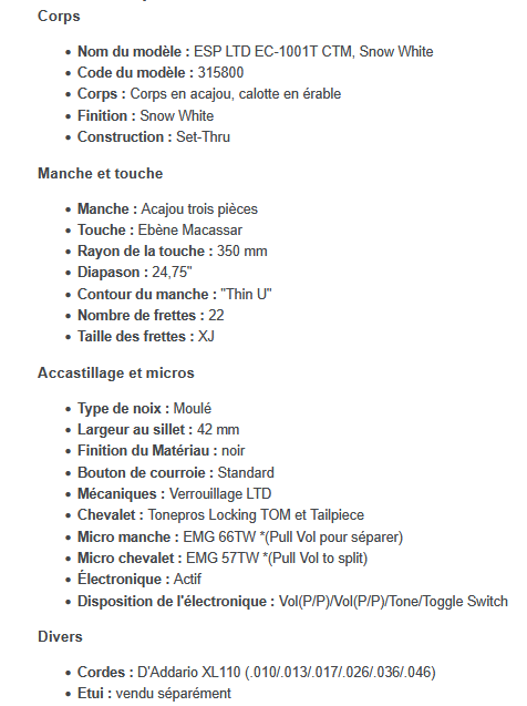 C'est la version de la LesPaul à la sauce LTD avec ses avantages et ses inconvénients de cette forme, et comparé à une Epiphone y a photo.