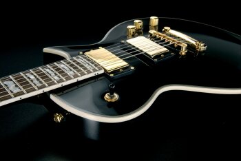 - Touche en palissandre avec 24 frettes jumbo, incrustations « Drapeaux » nacrées et nom du modèle sur la 12e case
