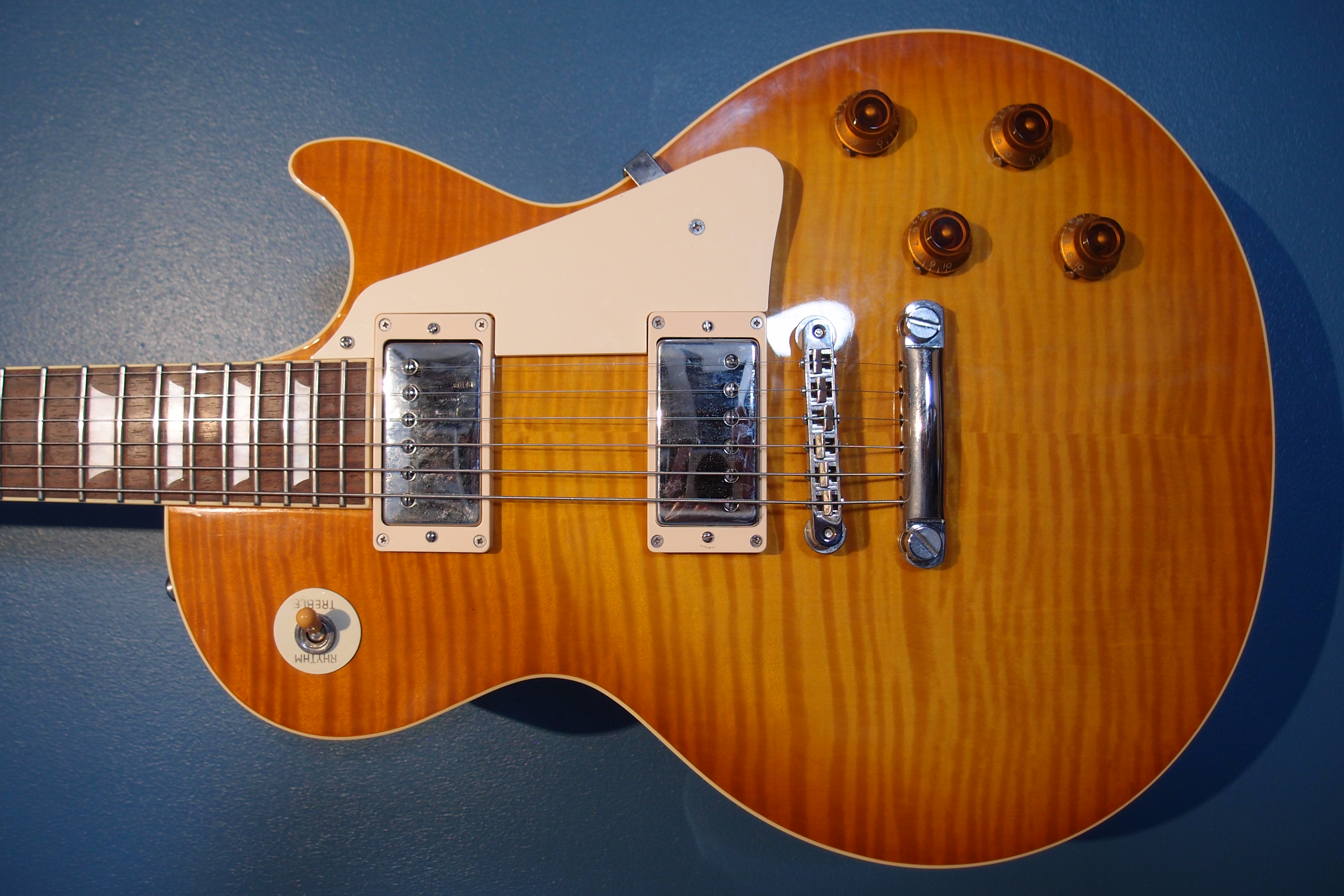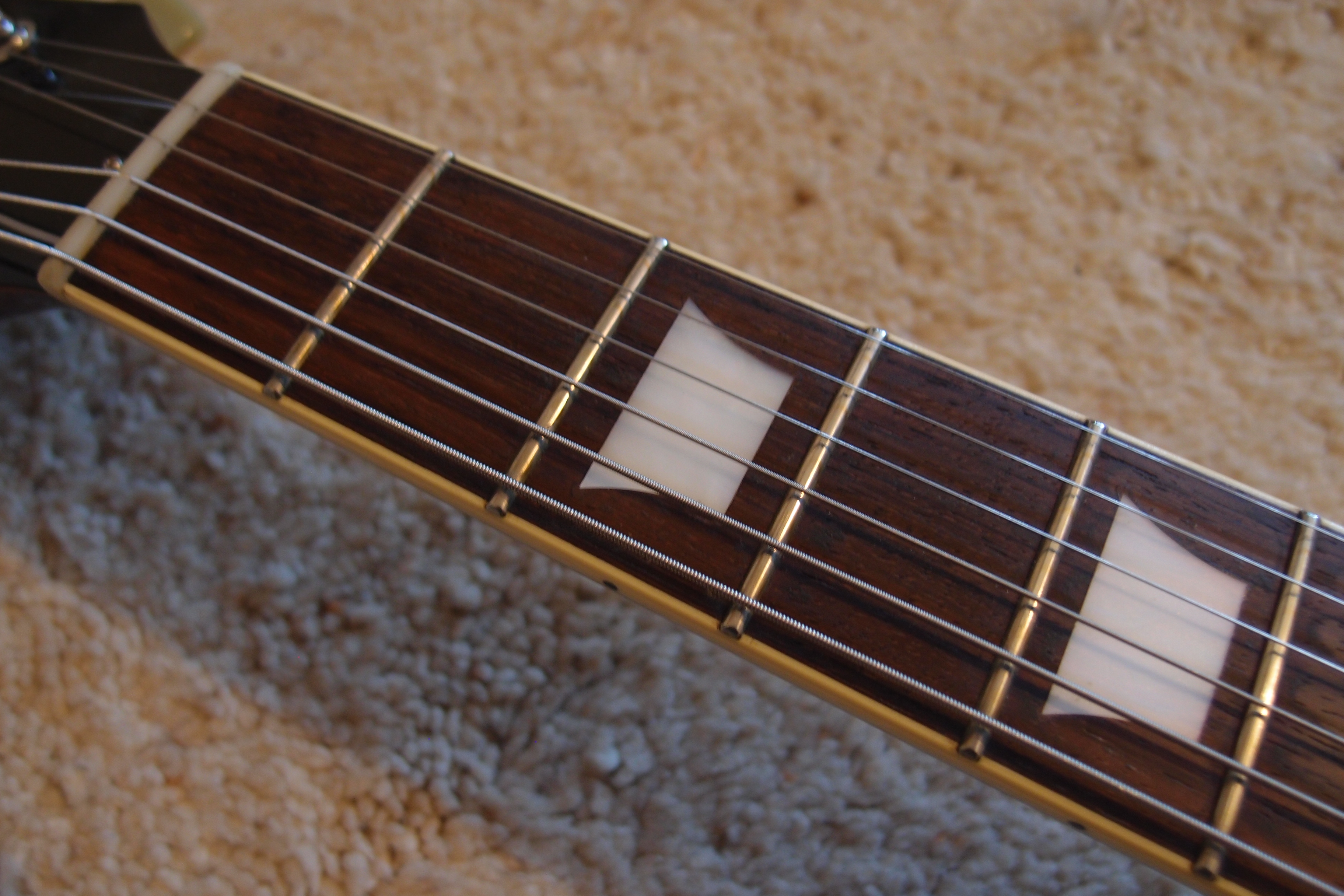 Guitare en excellent état (un seul petit éclat, cf. photos) et d'origine, excepté les boutons attache-courroies compatibles Strap Locks Schaller.