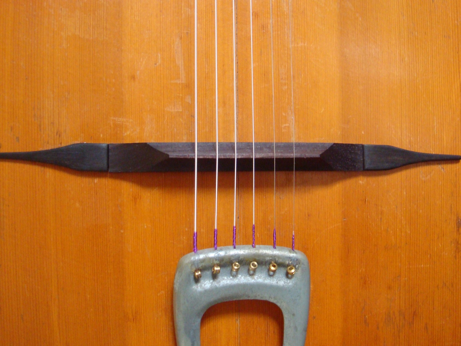 Le cordier, le chevalet et ses « moustaches » ne sont pas d'origine. En revanche, la feutrine verte sur la tête ainsi que les mécaniques, qui fonctionnent très bien, le sont.
