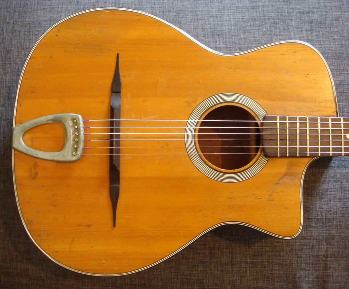 La guitare est parfaitement fonctionnelle, jouable en l'état et offre de vraies sonorités manouches « à l'ancienne » (action quasi parfaite : 3,1 mm et 2,8 mm à la 12ème frette).