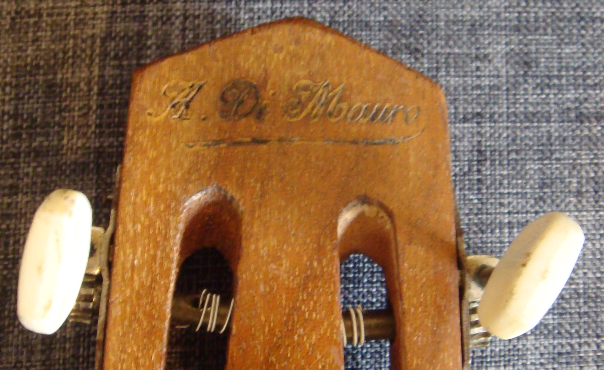 Cette guitare comporte bien évidemment la signature « A. Di Mauro », marquée au fer au dos de la tête.