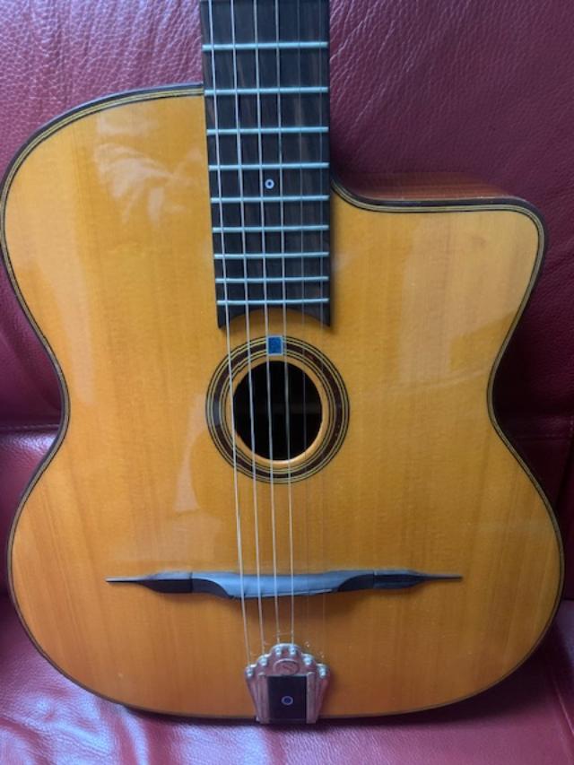 Superbe guitare jazz / manouche en parfait état et d'un magnifique look et sonorité, vendue avec son gigbag d'origine. Les bois sont d'une rare splendeur !!!En collaboration avec Lulo Reinhardt, Saga présente le deuxième modèle de sa série de guitares signature Gypsy Jazz. La nouvelle Gitane DG-310 est un magnifique exemple de guitare Gypsy Jazz et saura inspirer tous les passionnés de ce genre musical. Chaque détail de cet instrument est inspiré du parcours musical de Lulo, guidé par sa curiosité, qui l'a mené du sud de l'Espagne à la recherche des racines du flamenco, à l'Amérique du Sud à l'exploration de différents styles de latin jazz, ainsi que par son affection indéfectible pour la musique de son ancêtre légendaire, Django Reinhardt. Musicien spontané et fougueux, Lulo Reinhardt est guidé par sa guitare dans des voyages musicaux initiatiques. Sa nouvelle guitare signature est l'outil idéal pour créer une musique à sa manière, contribuant ainsi à perpétuer la tradition musicale légendaire des Reinhardt, forte d'un siècle d'histoire.