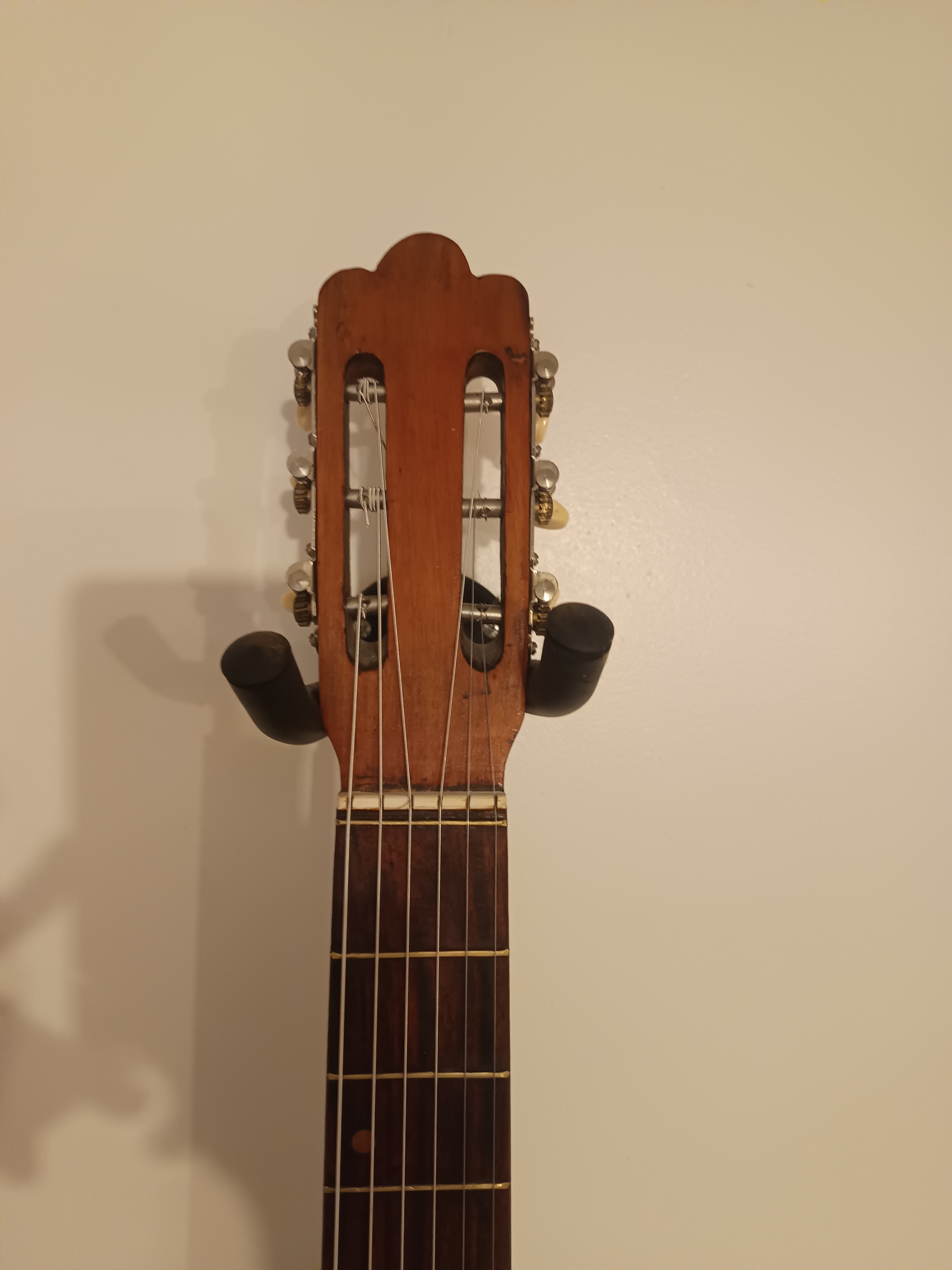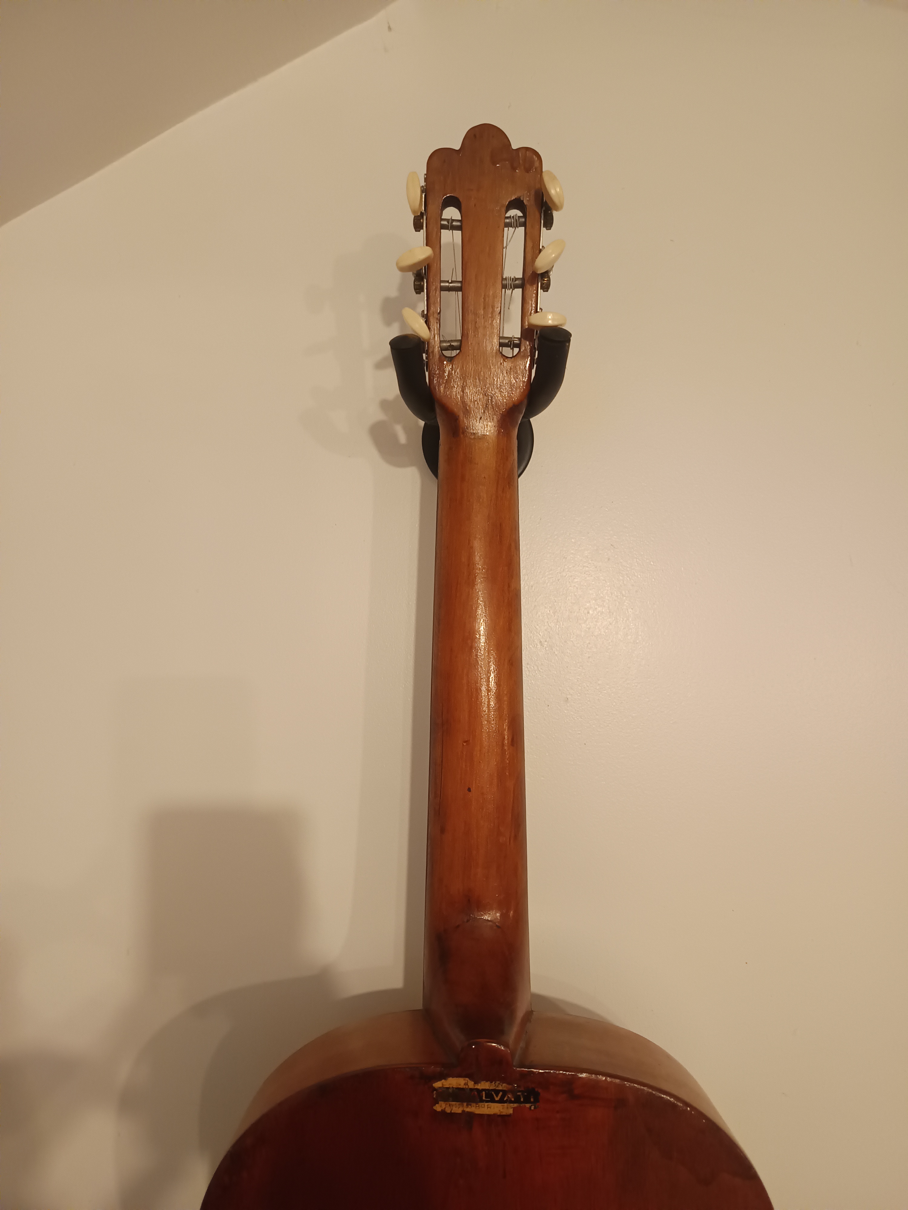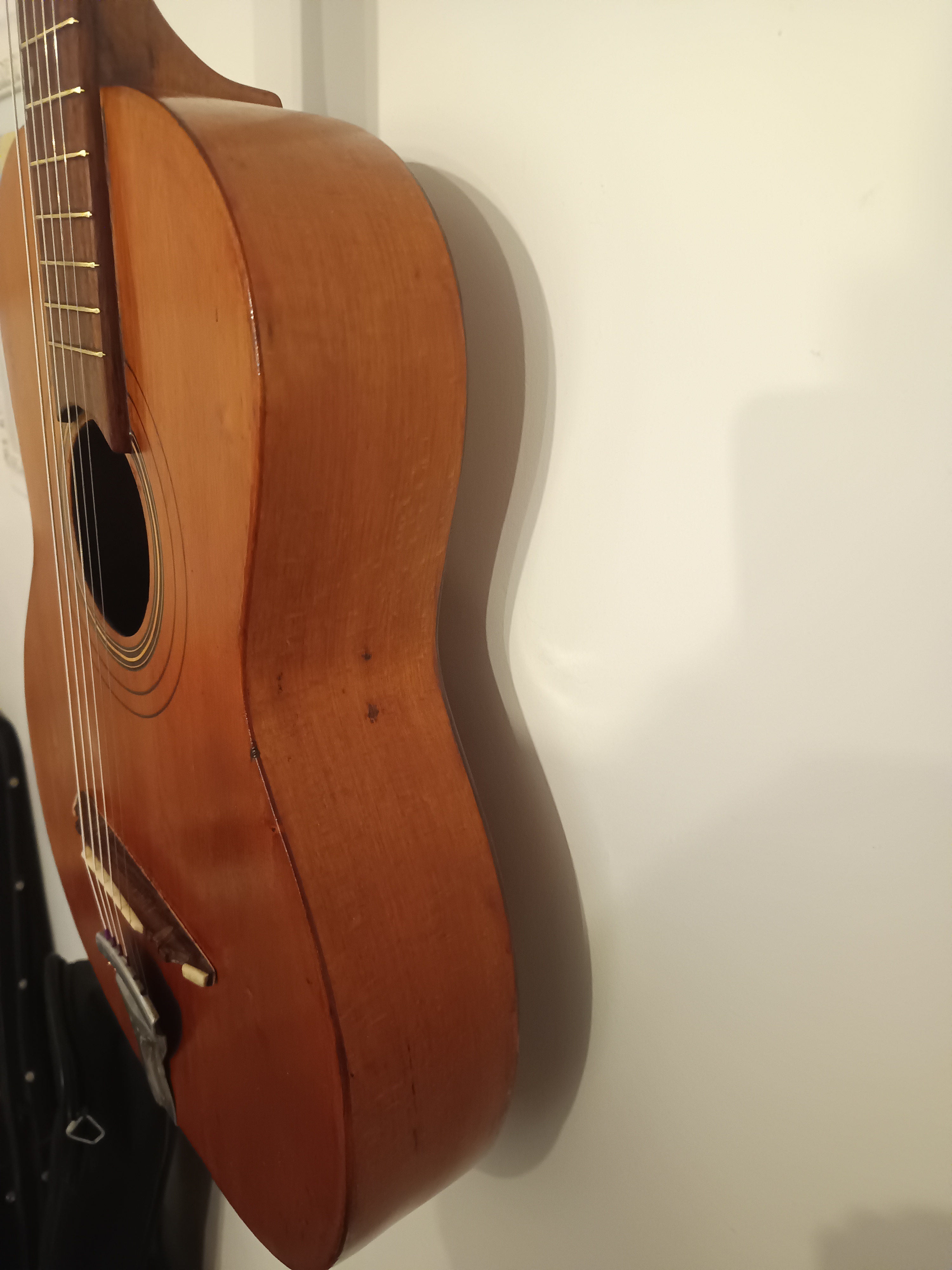 La guitare présente des traces de jeu et du temps, qui vont avec le charme de son âge.