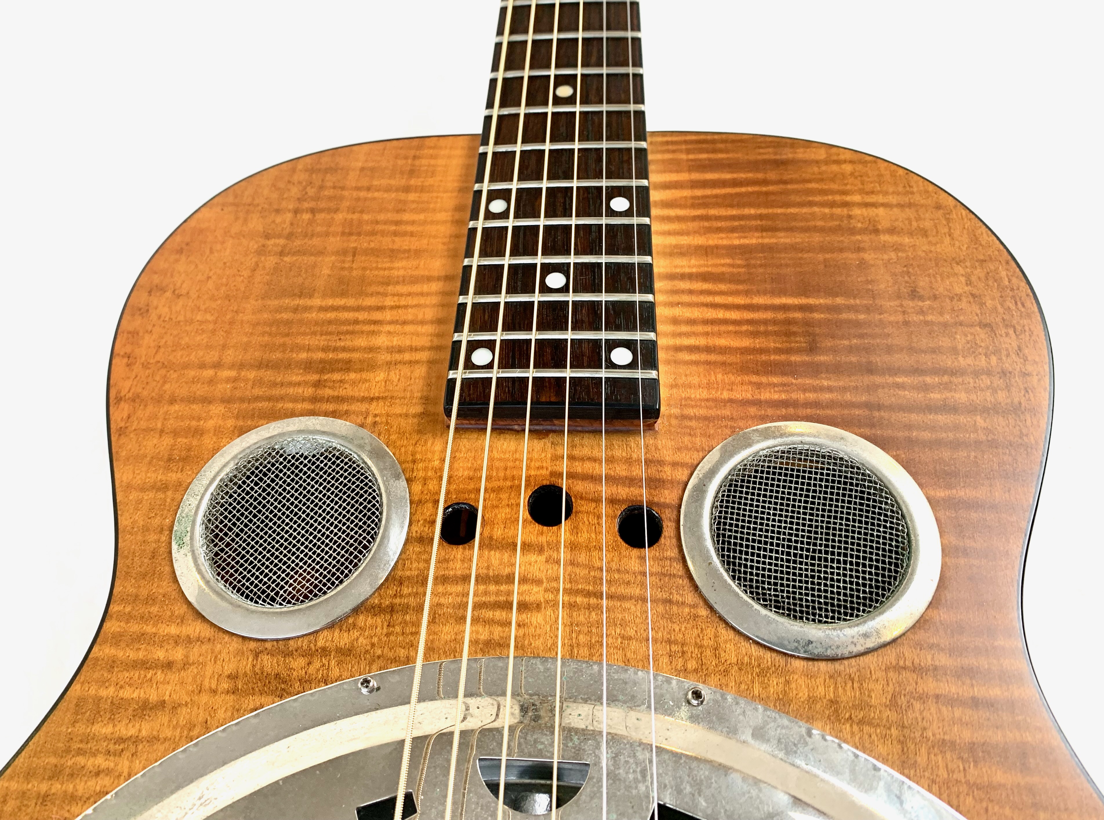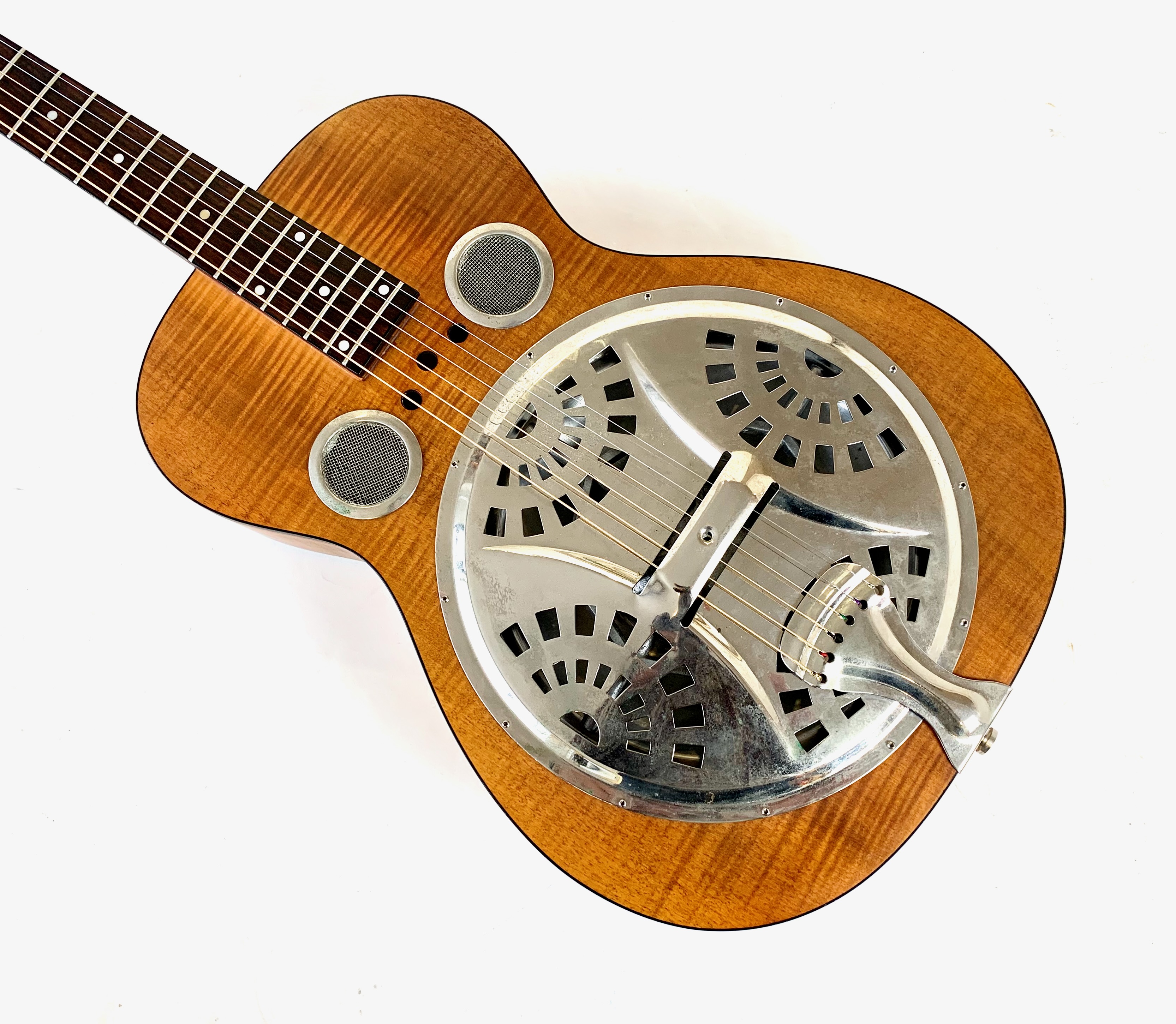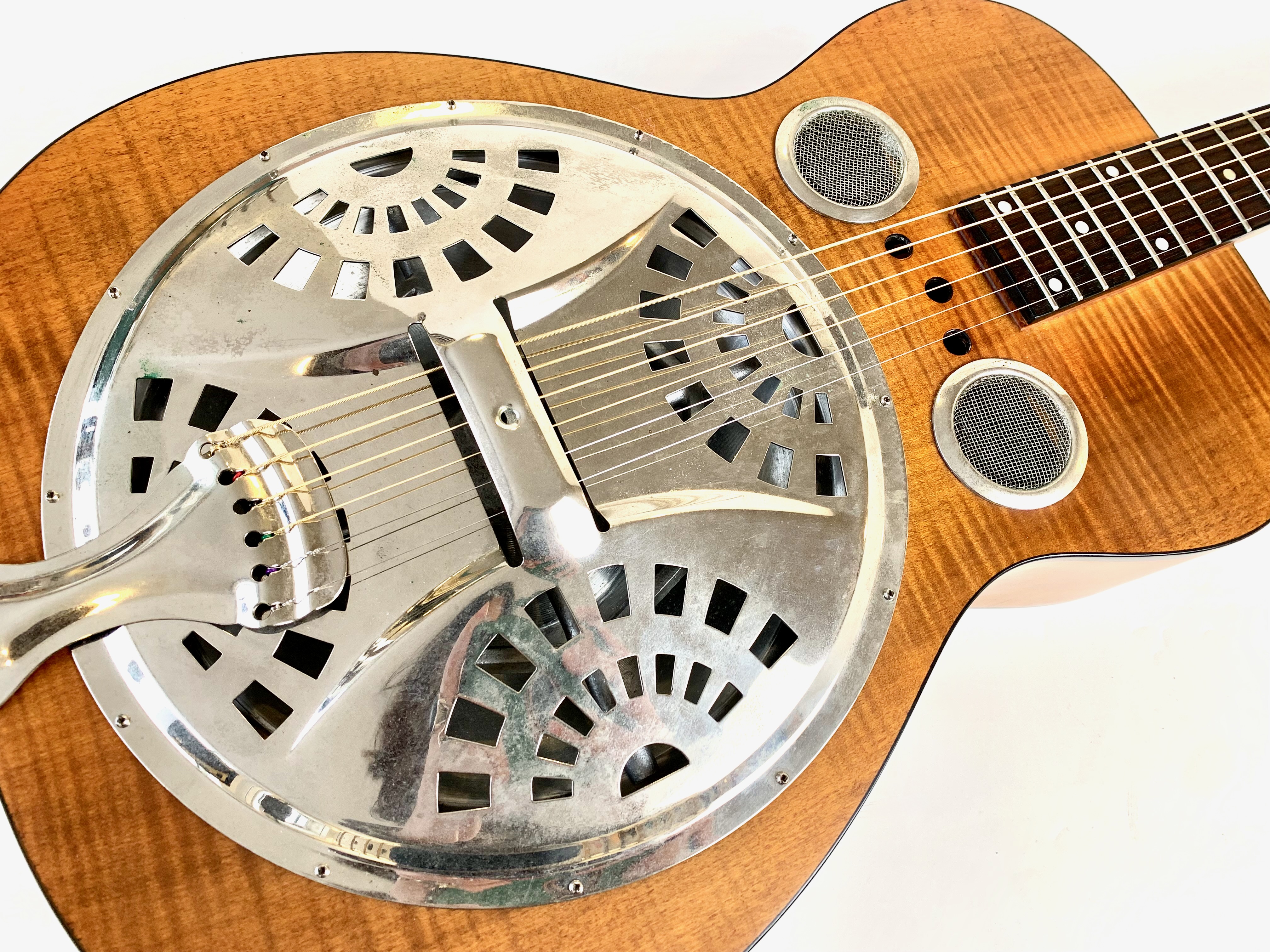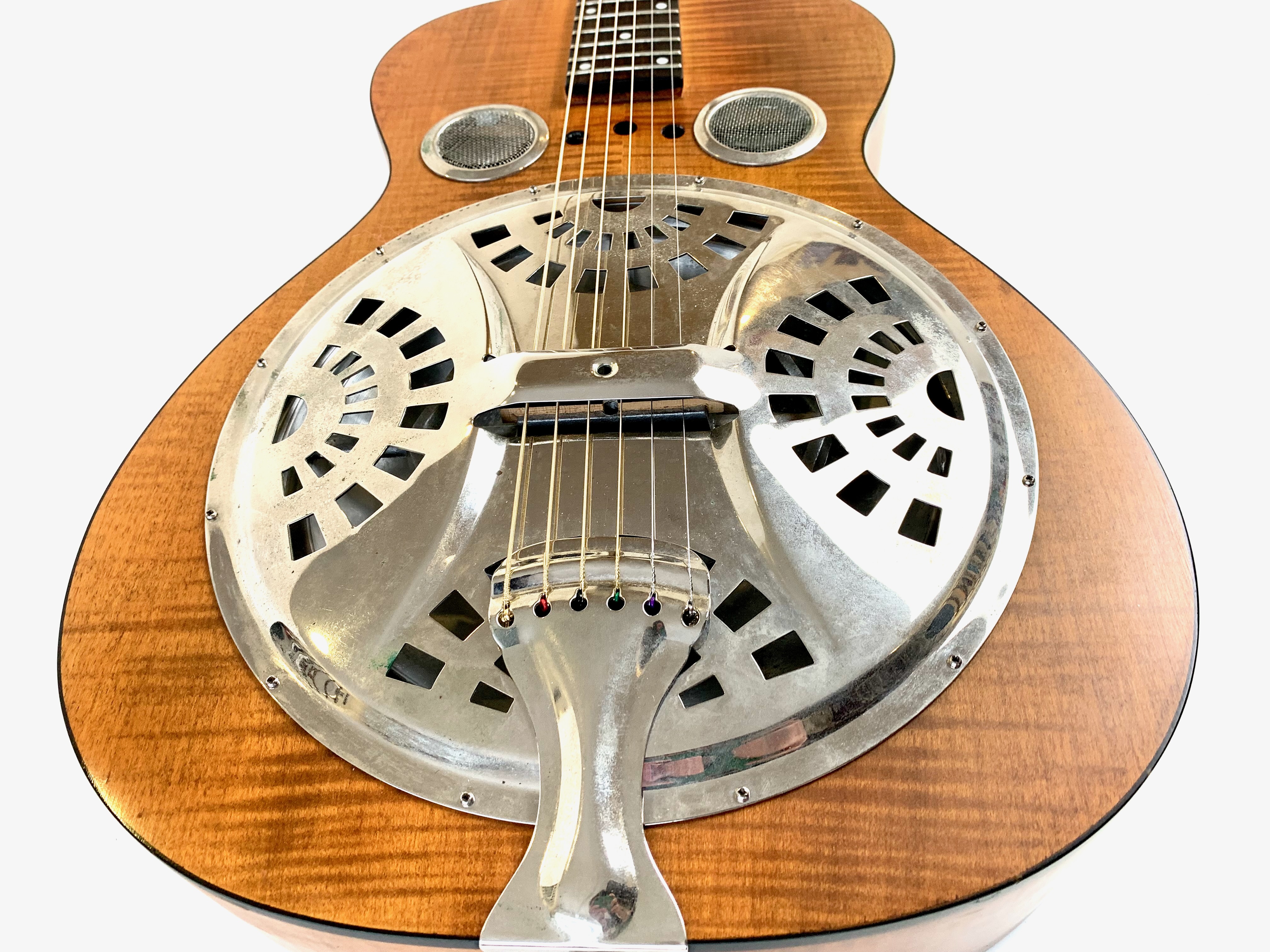 Parfait pour le slide, ce Dobro est de surcroît très accessible ! Il est fait d'un manche en acajou avec une touche en palissandre au radius de 12 pouces. Le corps pour sa part fait d'érable laminé, l'ensemble est animé par un micro Fishman. En très bon état.Location, achat, vente, reprise, dépôt-vente.