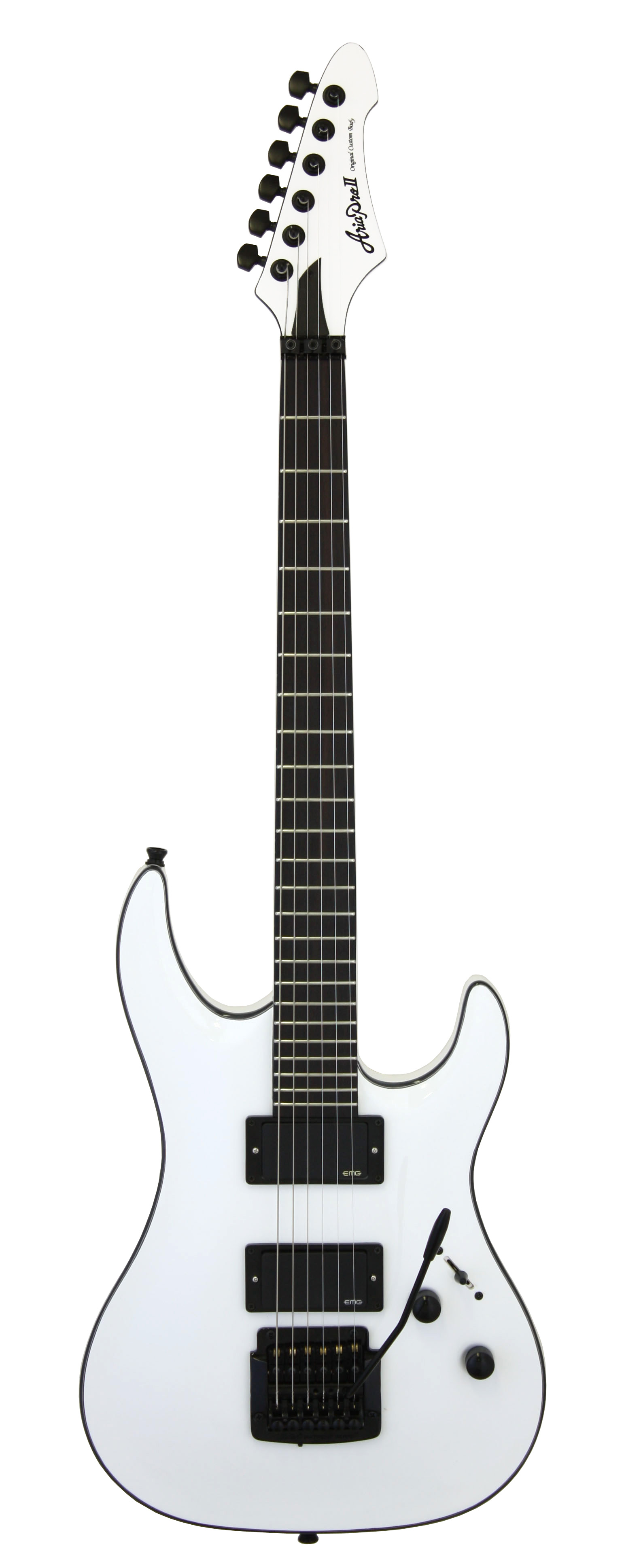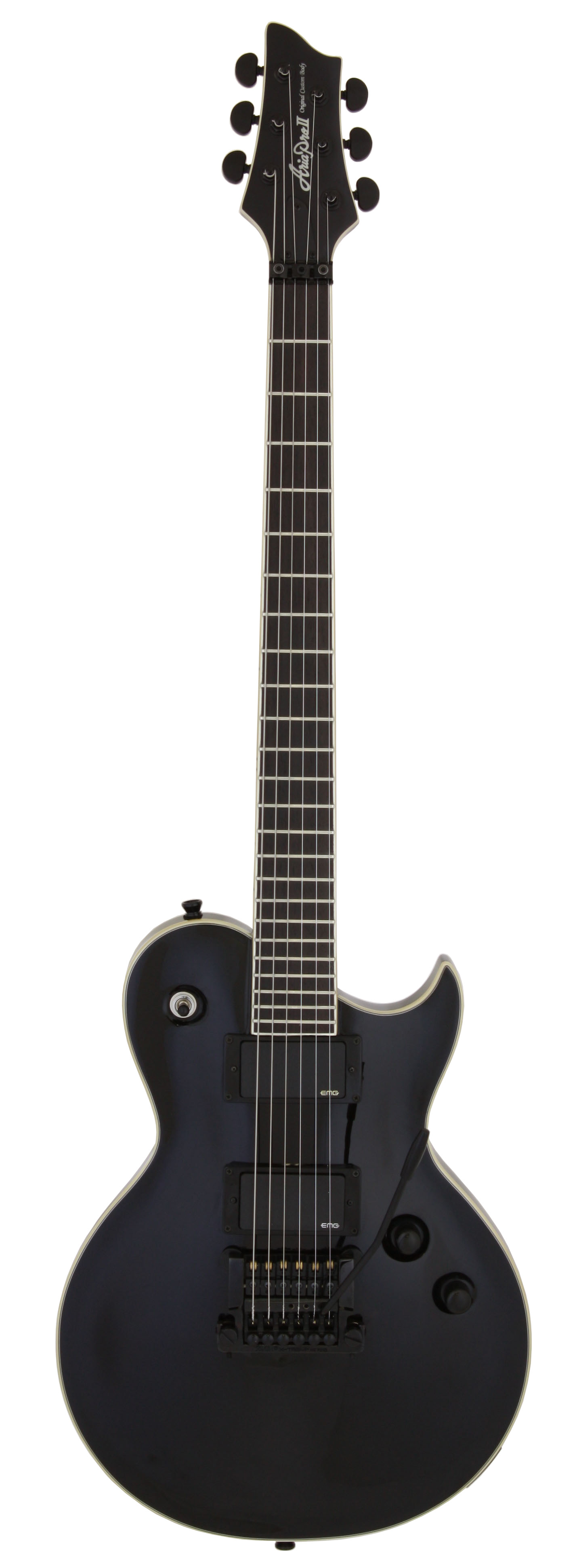 La XP-9 présente quant à elle un corps et un manche en acajou, une touche en palissandre avec 24 frettes et un diapason de 25.5”. Elle inclut également une paire de humbuckers EMG 81 et 85, deux potards pour le volume et la tonalité et un switch micro à 3 positions. Le chevalet est aussi agrémenté d’un vibrato mais de référence Kahler 4200.