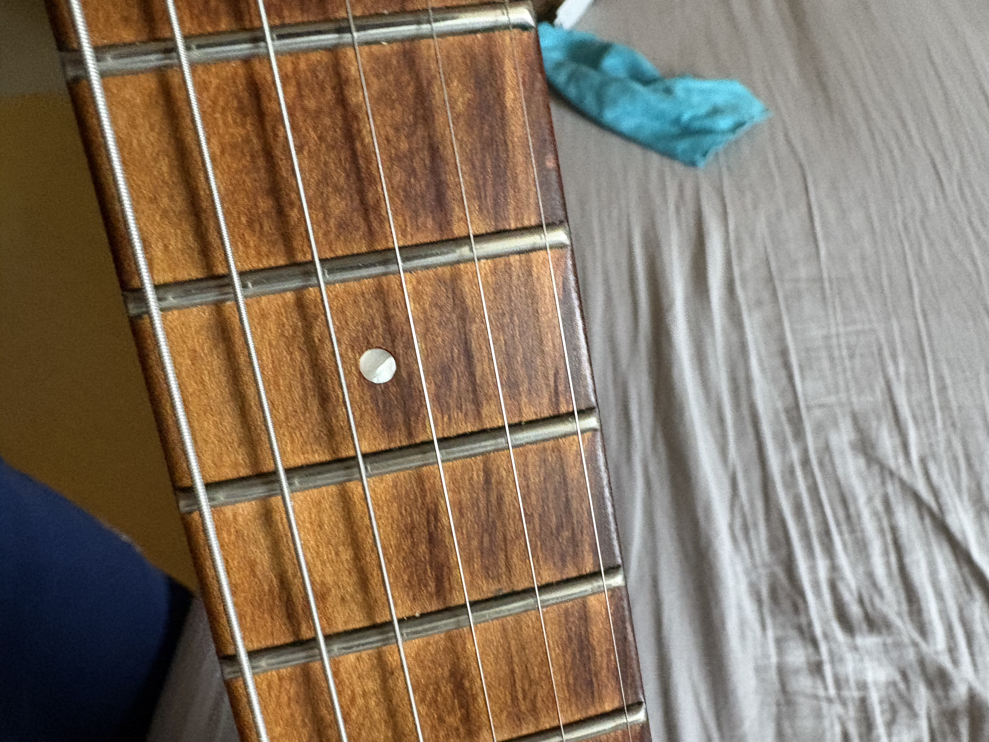 Seule une légère décoloration due à la finition satinée et à la transpiration près des micros.