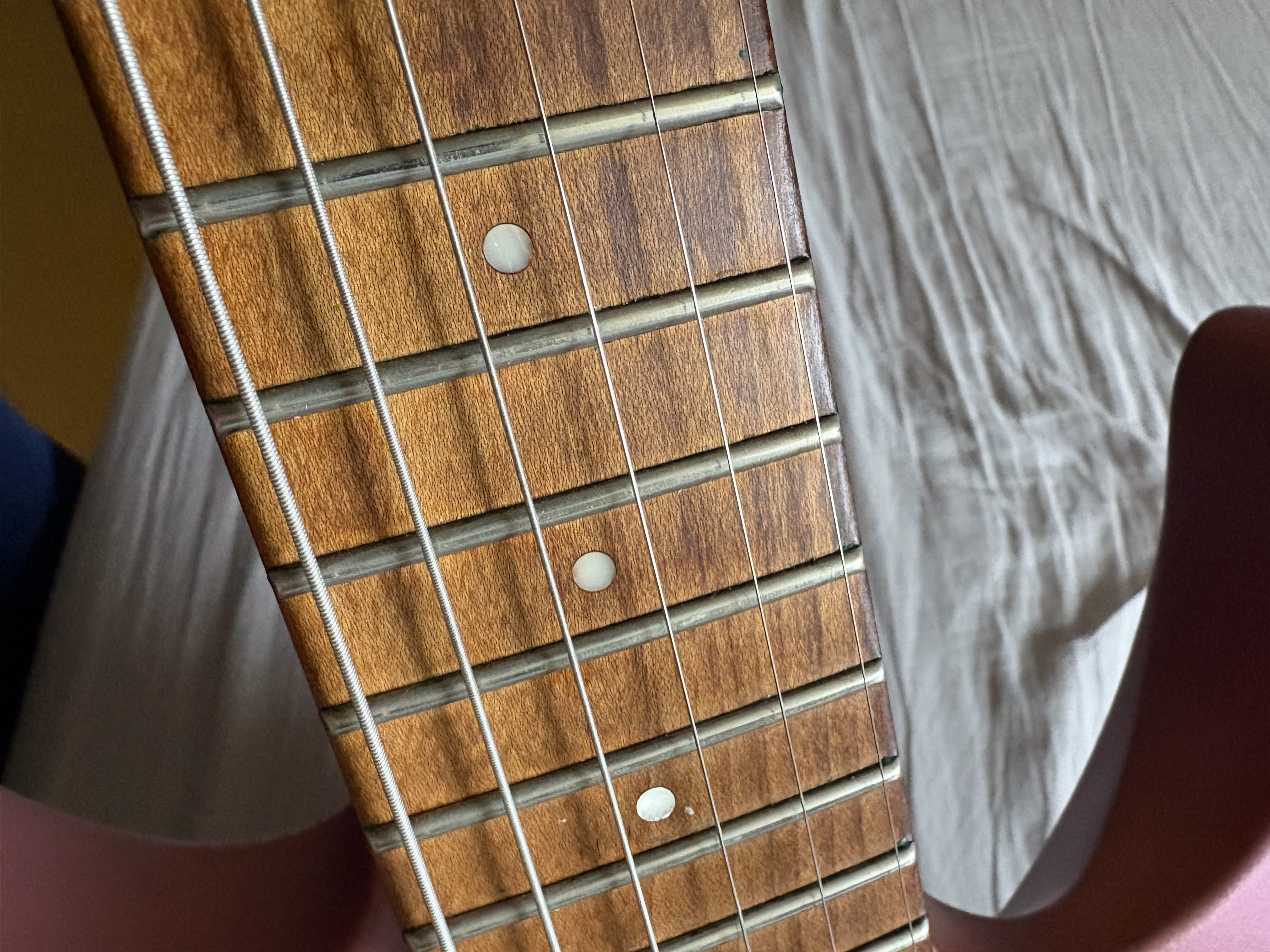 Parfaite condition : aucune usure des frettes, aucune réparation ni changement de pièces (frettes, sillet, potards, etc.).