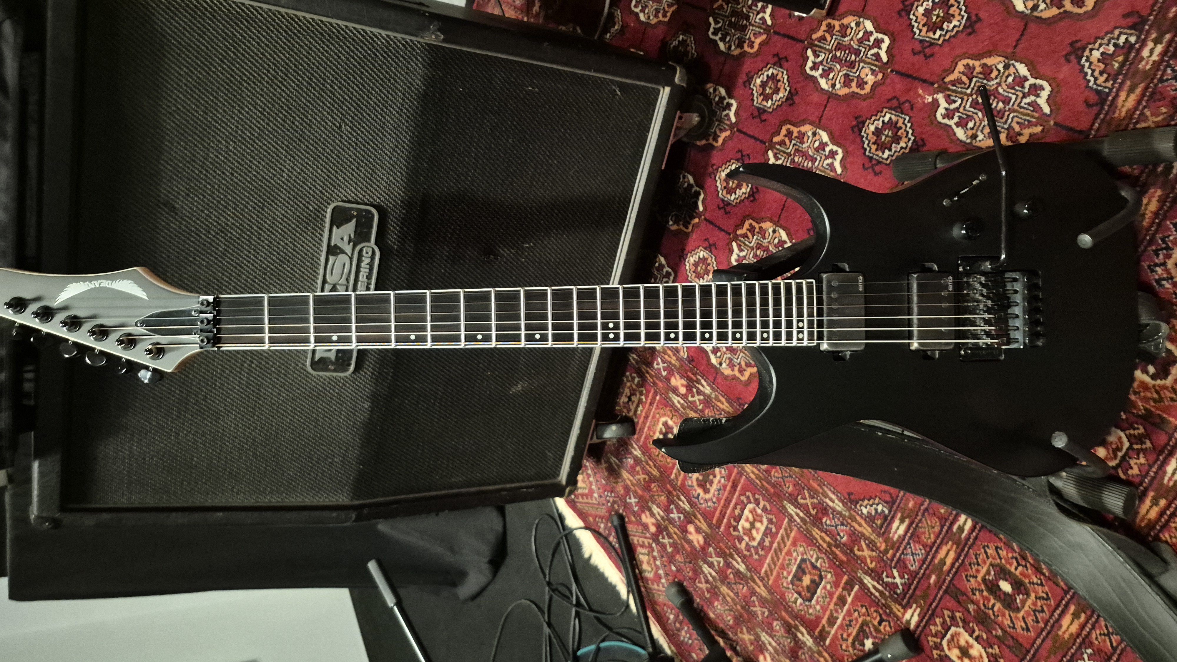 Hello,Je vends une Dean Exile Floyd modifiée avec les Emg 57/66 spitables en simple bobinage. Le changement a été effectué par un luthier.
