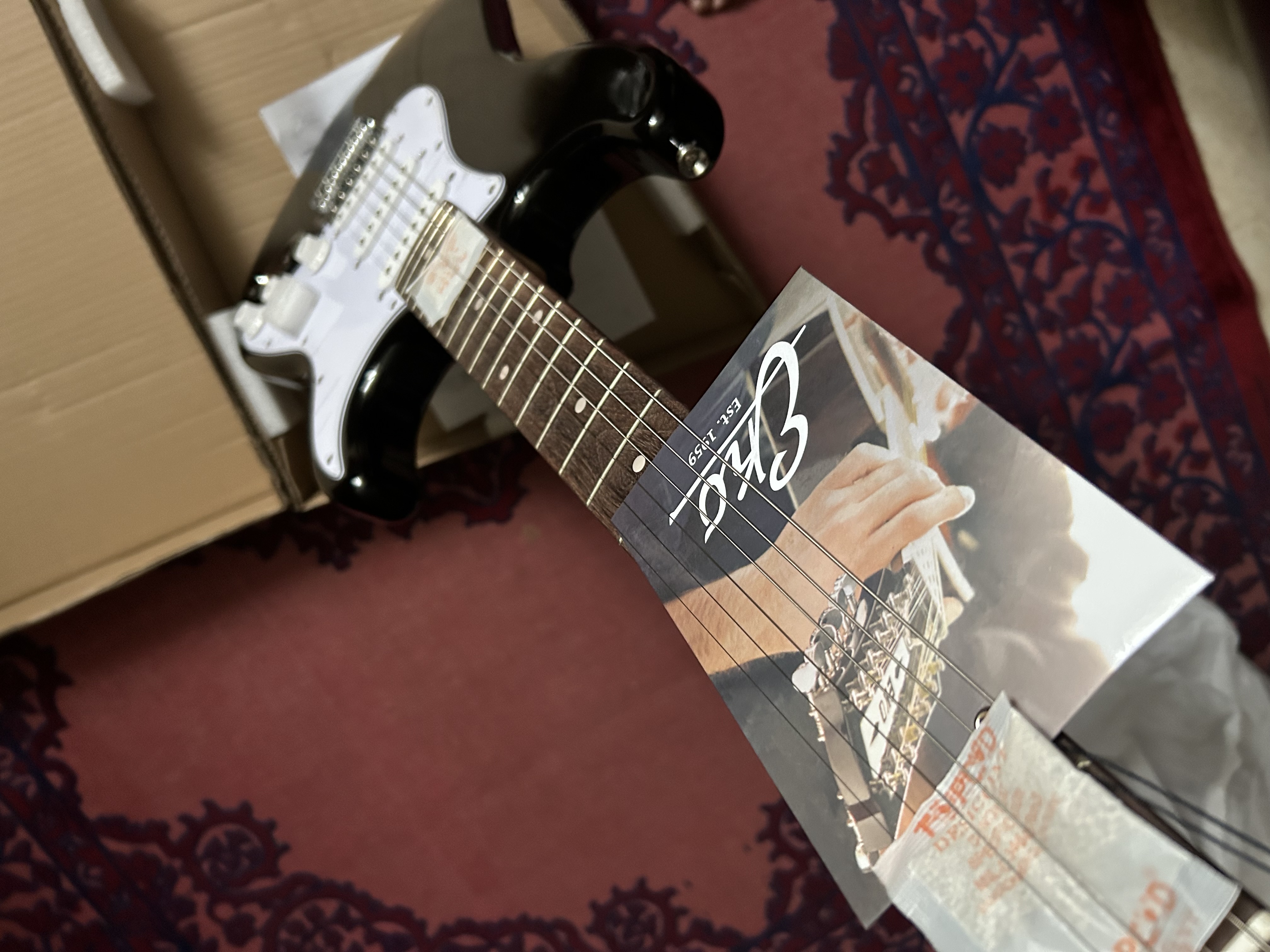 On m’a offert cette guitare électrique récemment, mais j’en ai déjà une. Du coup je la revends pour financer un appareil photo dont je rêve depuis longtemps.