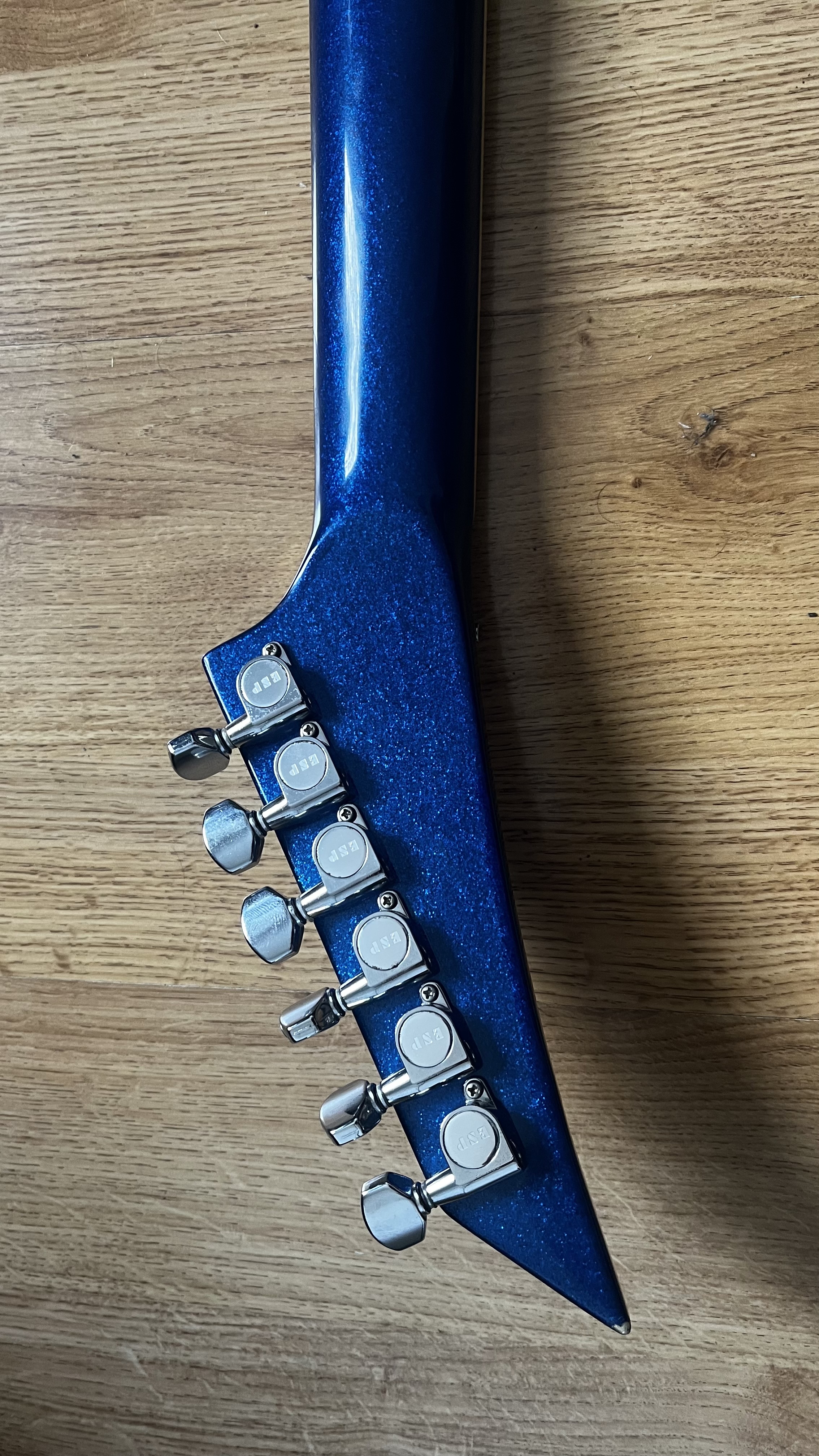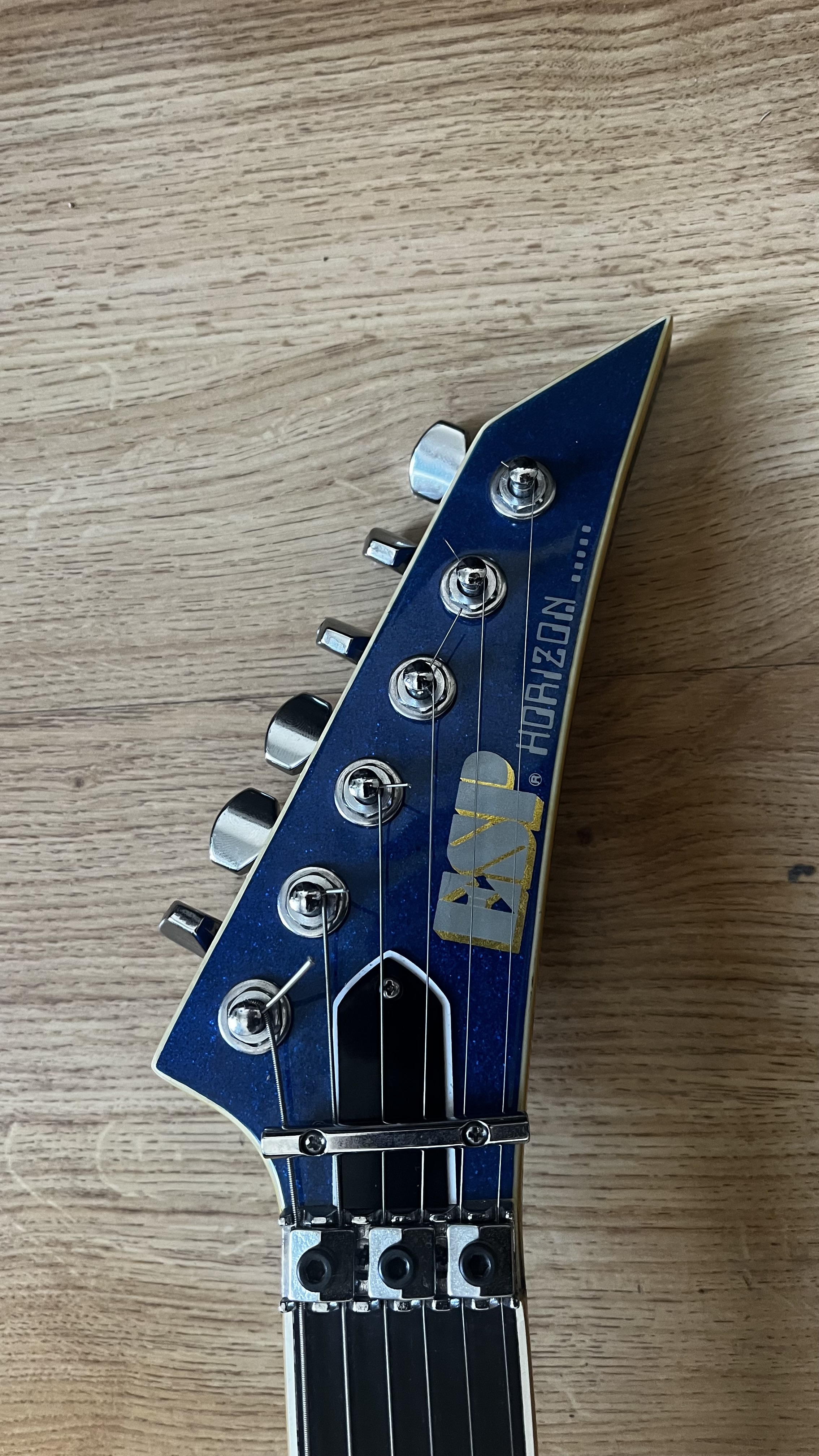 ESP Horizon Custom Shop année 1987, excellent état, finition « Gun metal blue » (bleu métallisé)Une des toute premières ESP Horizon fabriquées par ESP à la fin des années 80, à l’époque où ESP n’était encore qu’un simple atelier à New York.