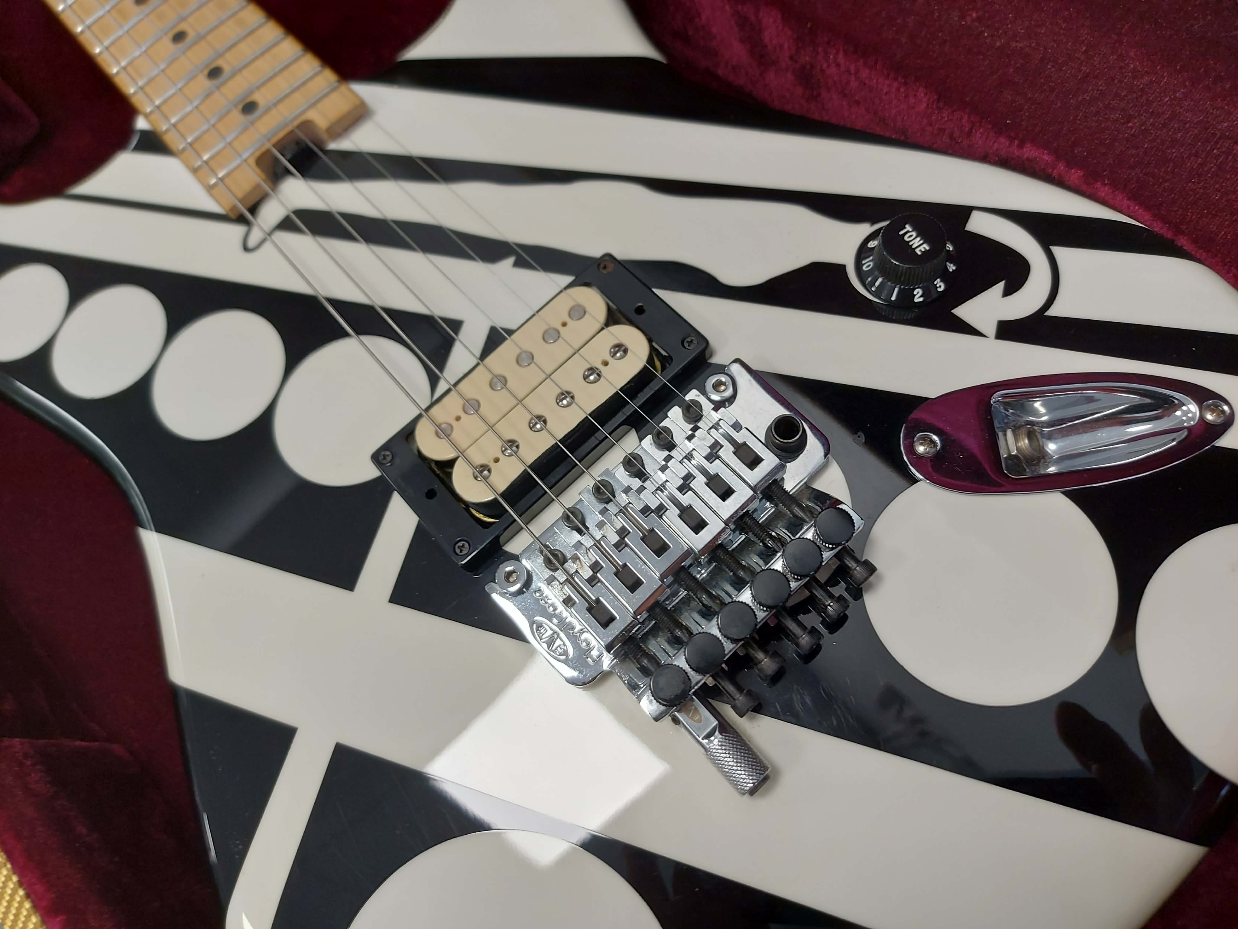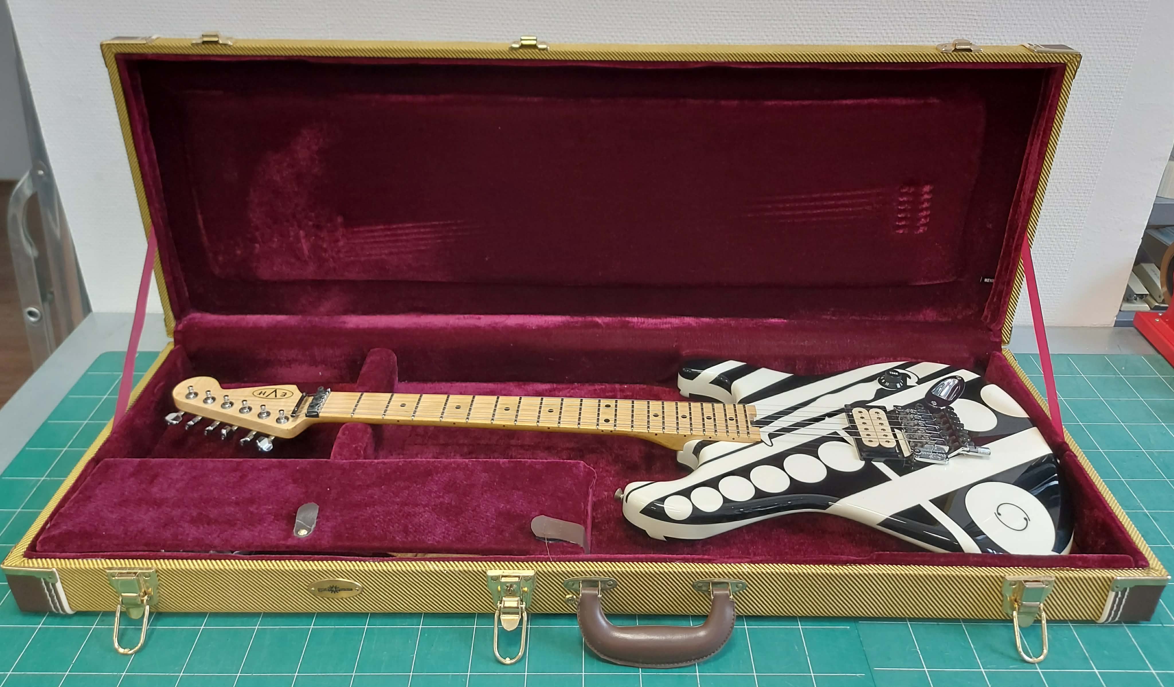 Vends Guitare Electrique EVH Striped Circles White & Black + Malette de Transport . Révision Générale