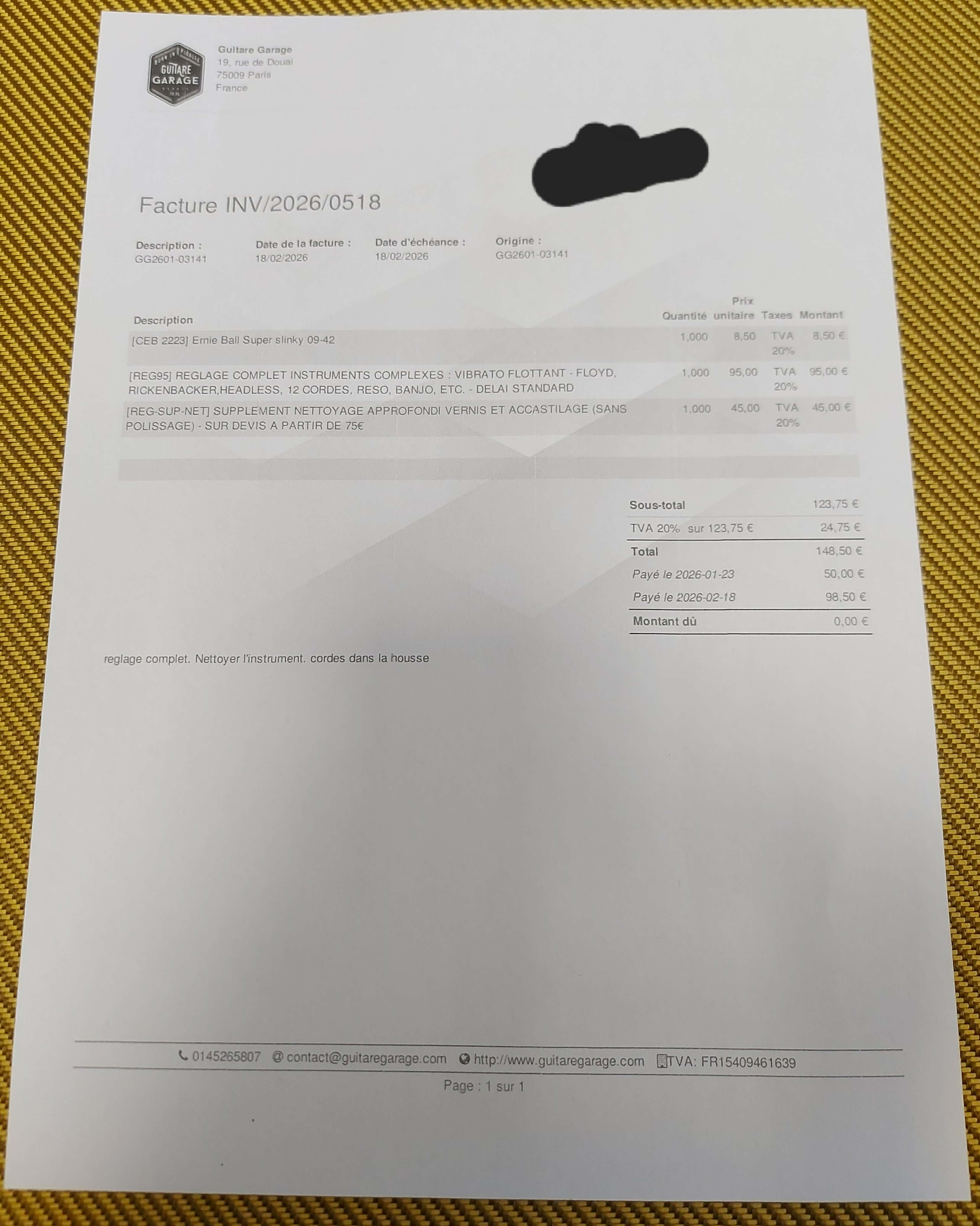 - Révision Générale et Nettoyage avec Facture à l ' Appui datant du 18 Février 2026 .