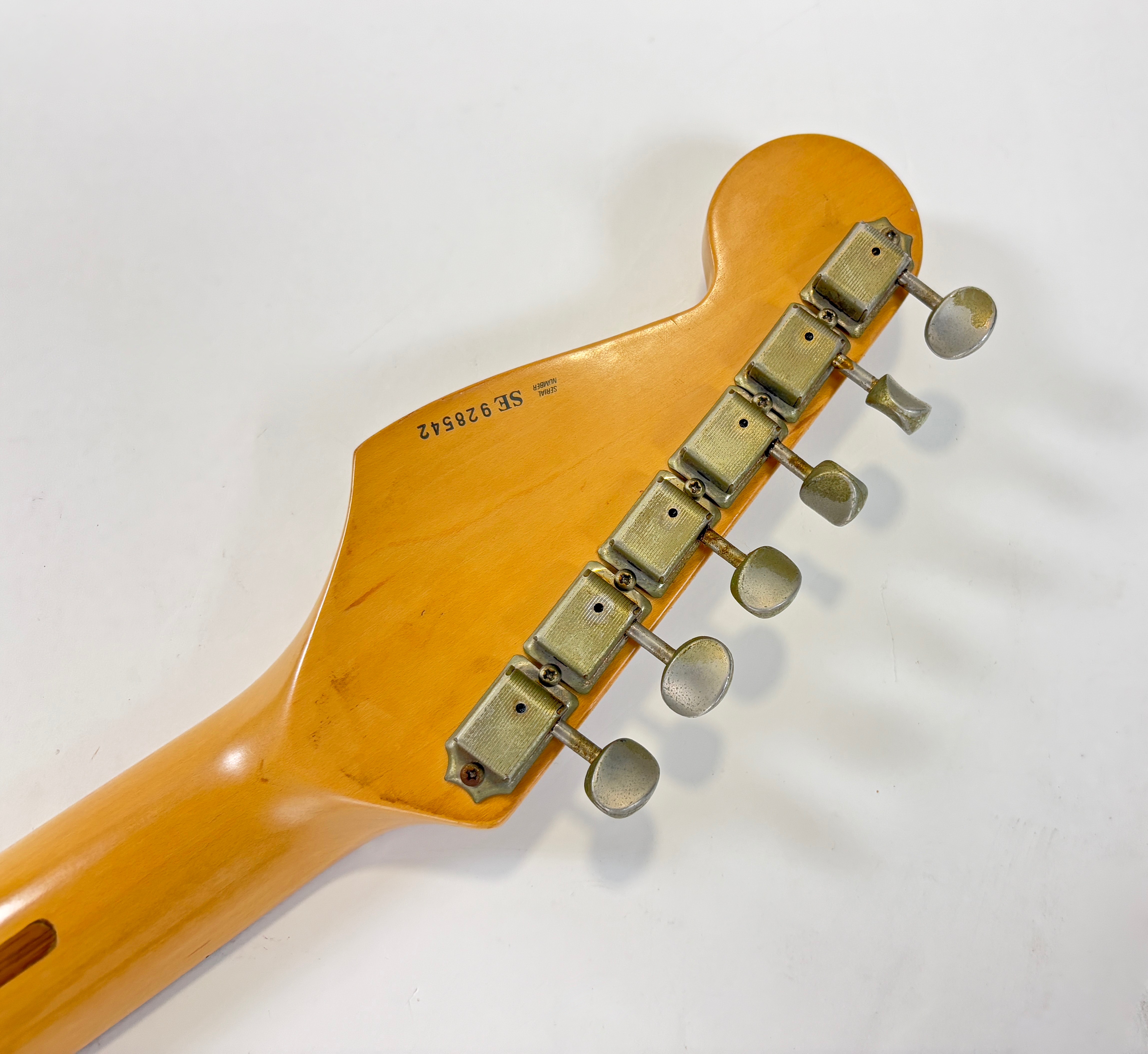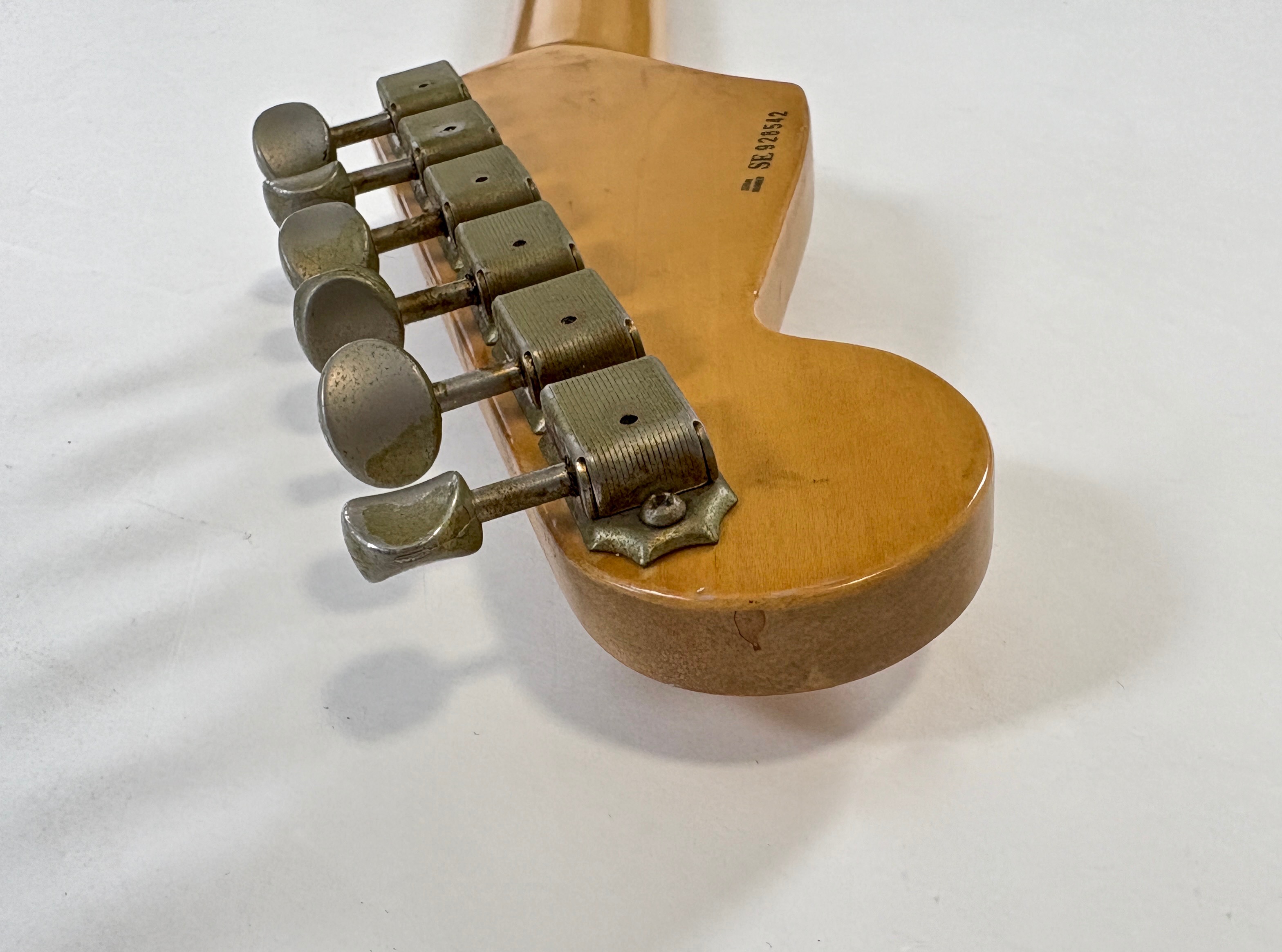 D’abord équipée de Lace Sensor, la série passe en Vintage Noiseless à partir de 2001. Les deux importantes particularités du modèle sont : un manche en soft V ainsi qu’un boost actif utilisable via le second potentiomètre de tonalité. Sa couleur, black, Blackie, est la plus authentique. Vendue avec ses papiers dans son étui tweed d'origine.Dépôt-vente, achat, vente, reprise, location.