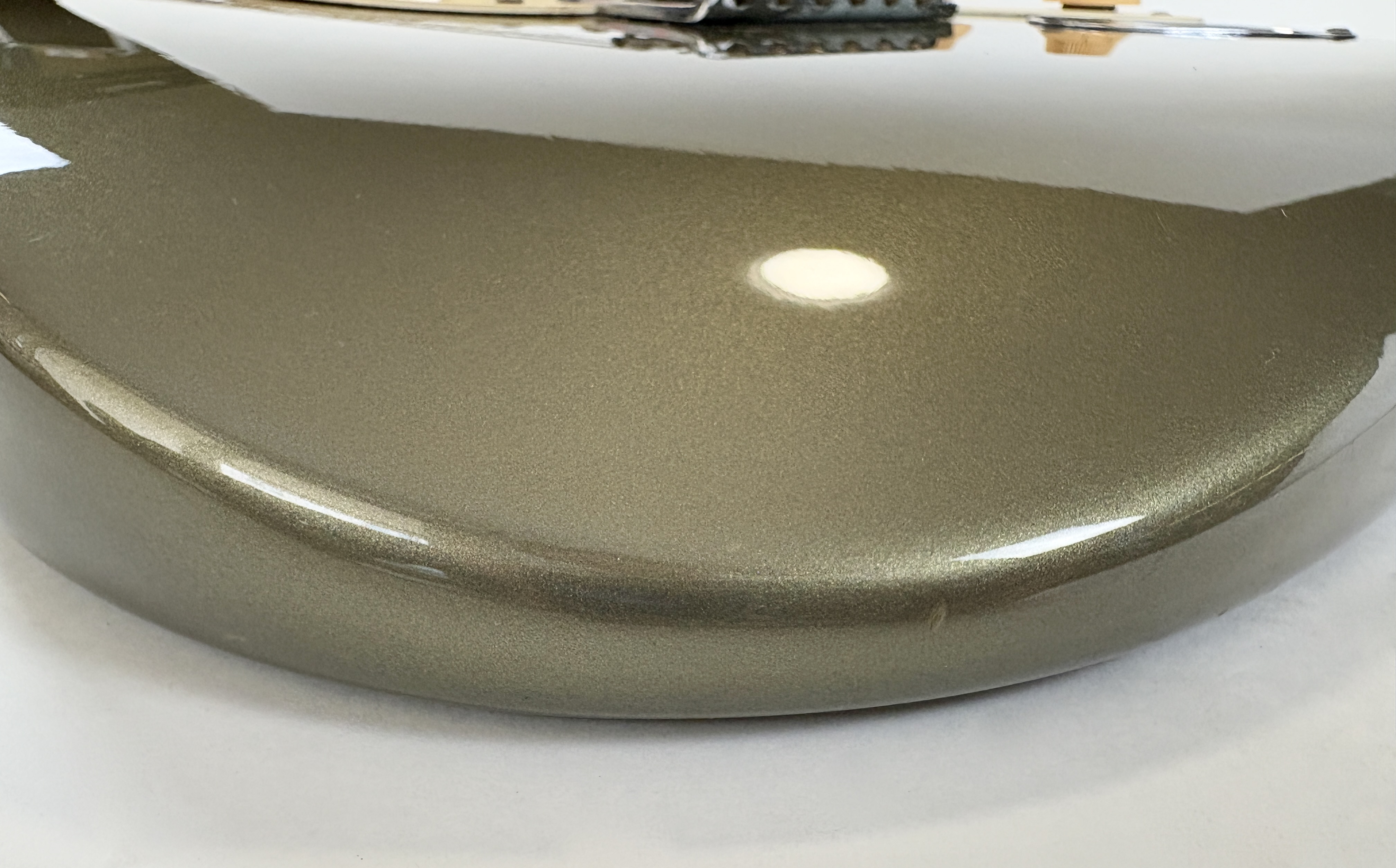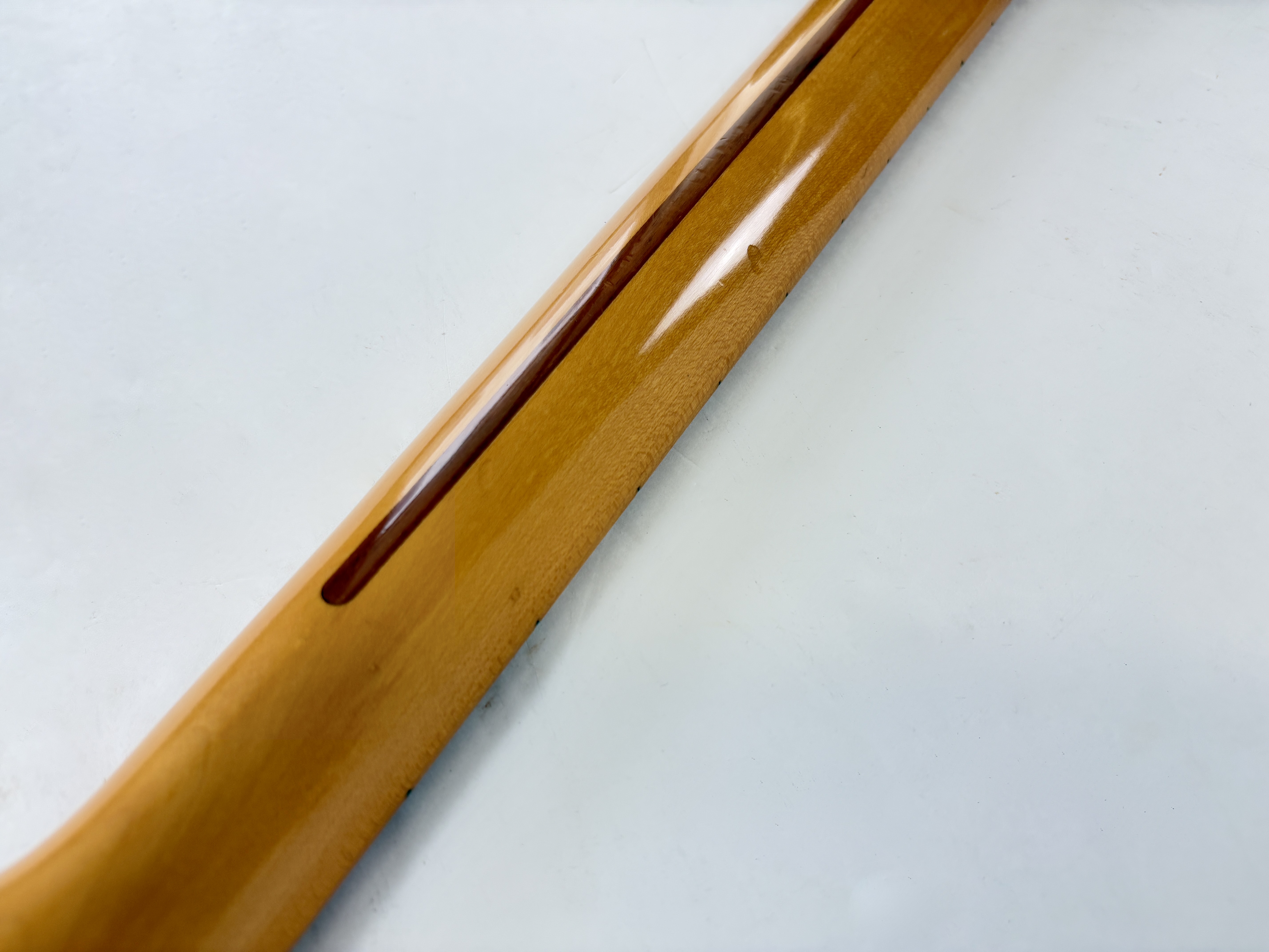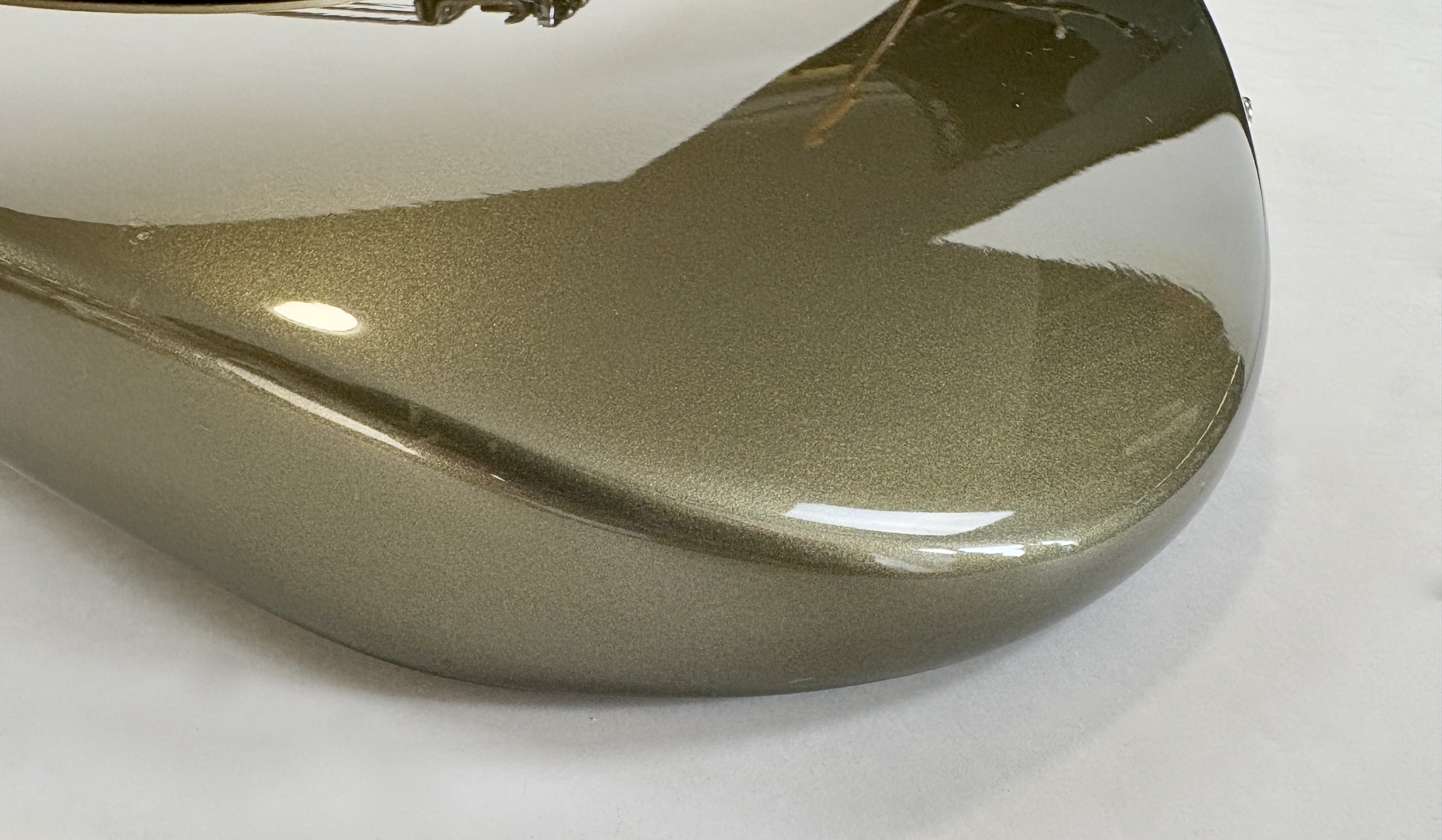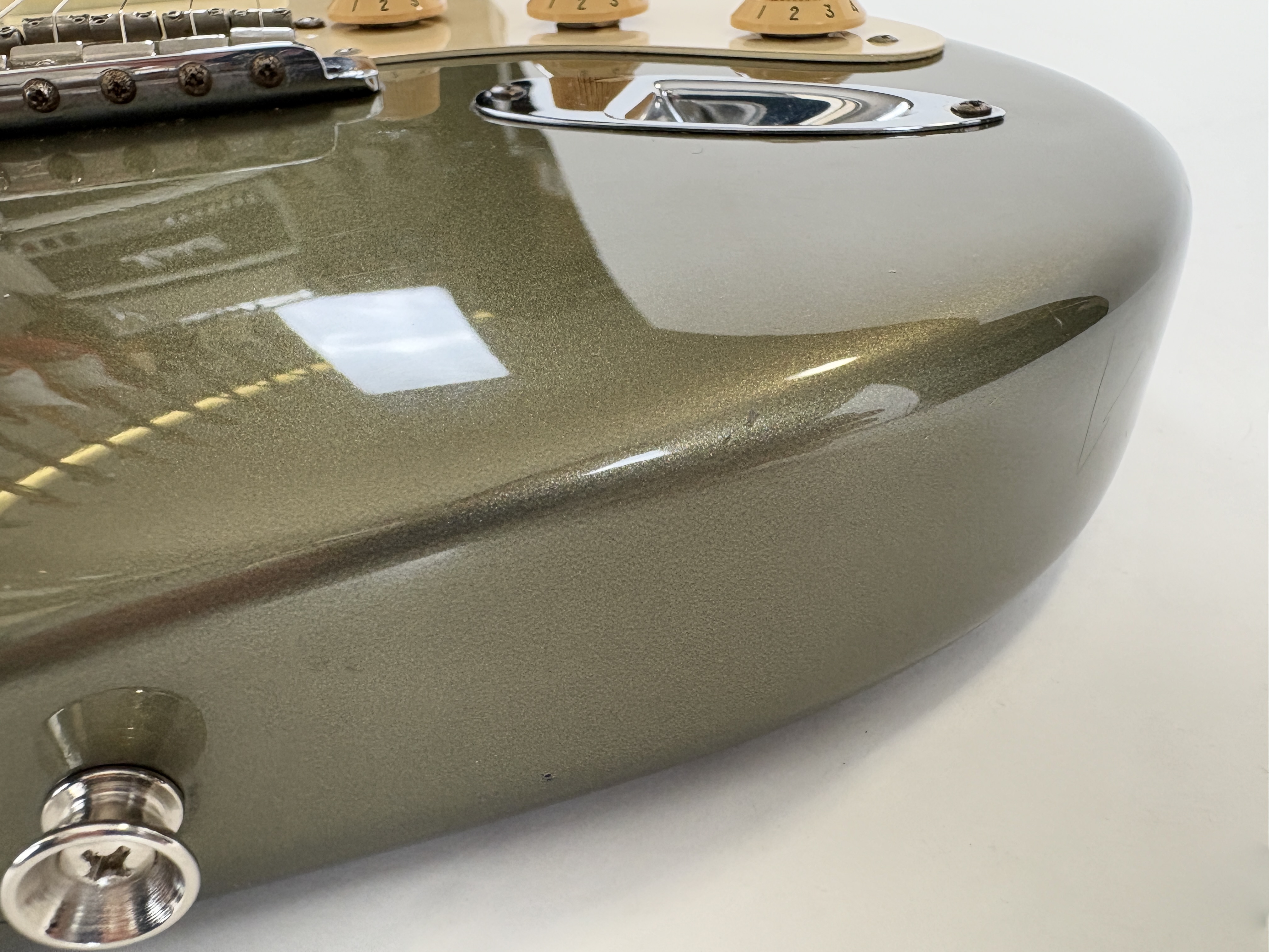 D’abord équipée de Lace Sensor, la série passe en Vintage Noiseless à partir de 2001. Les deux importantes particularités du modèle sont : un manche en soft V ainsi qu’un boost actif utilisable via le second potentiomètre de tonalité. Celle-ci date de la deuxième année de production : 1989 ! Sa couleur Pewter est fort désirable et typique de la période. Vendue en étui non d’origine.Dépôt-vente, achat, vente, reprise, location.
