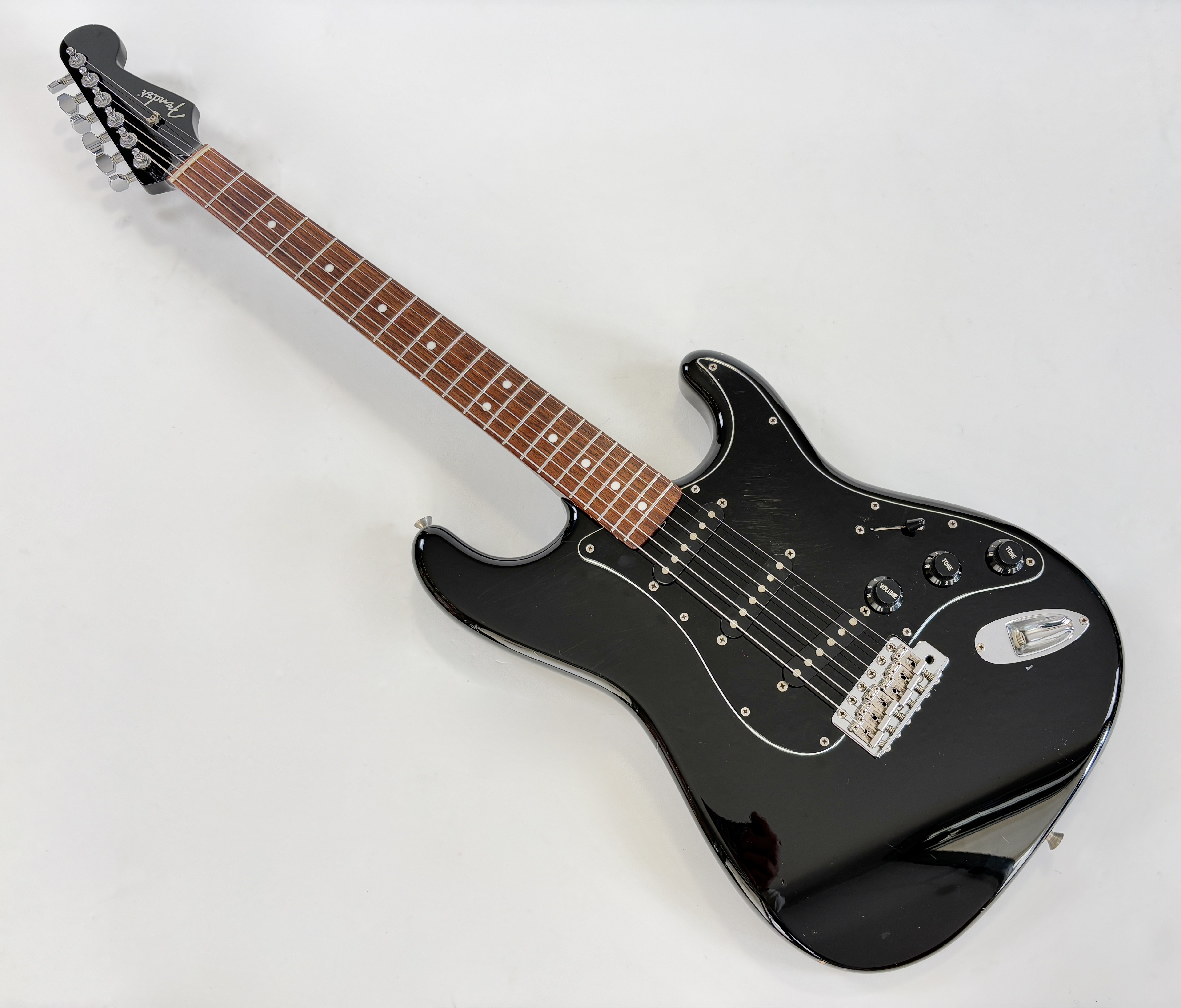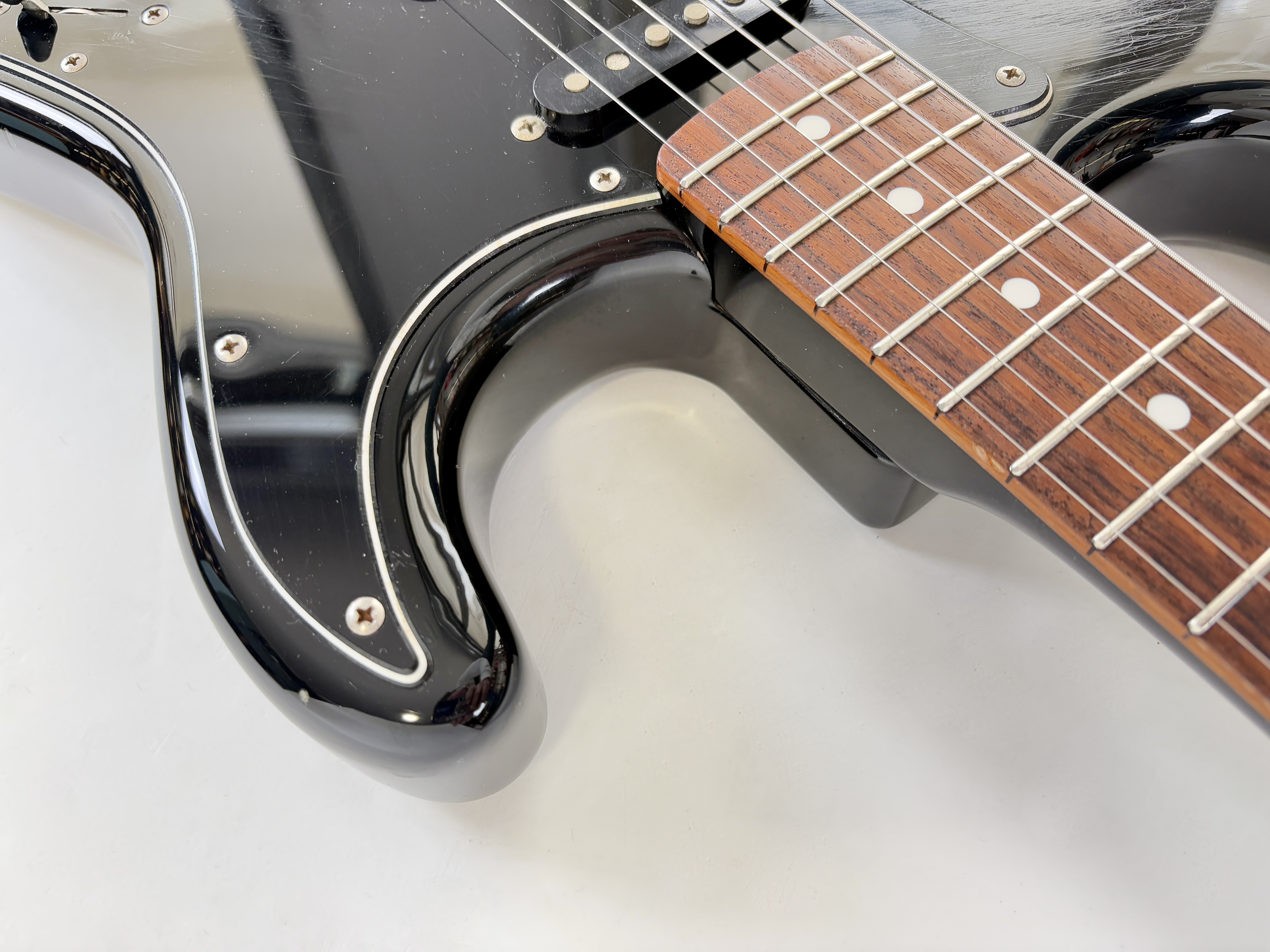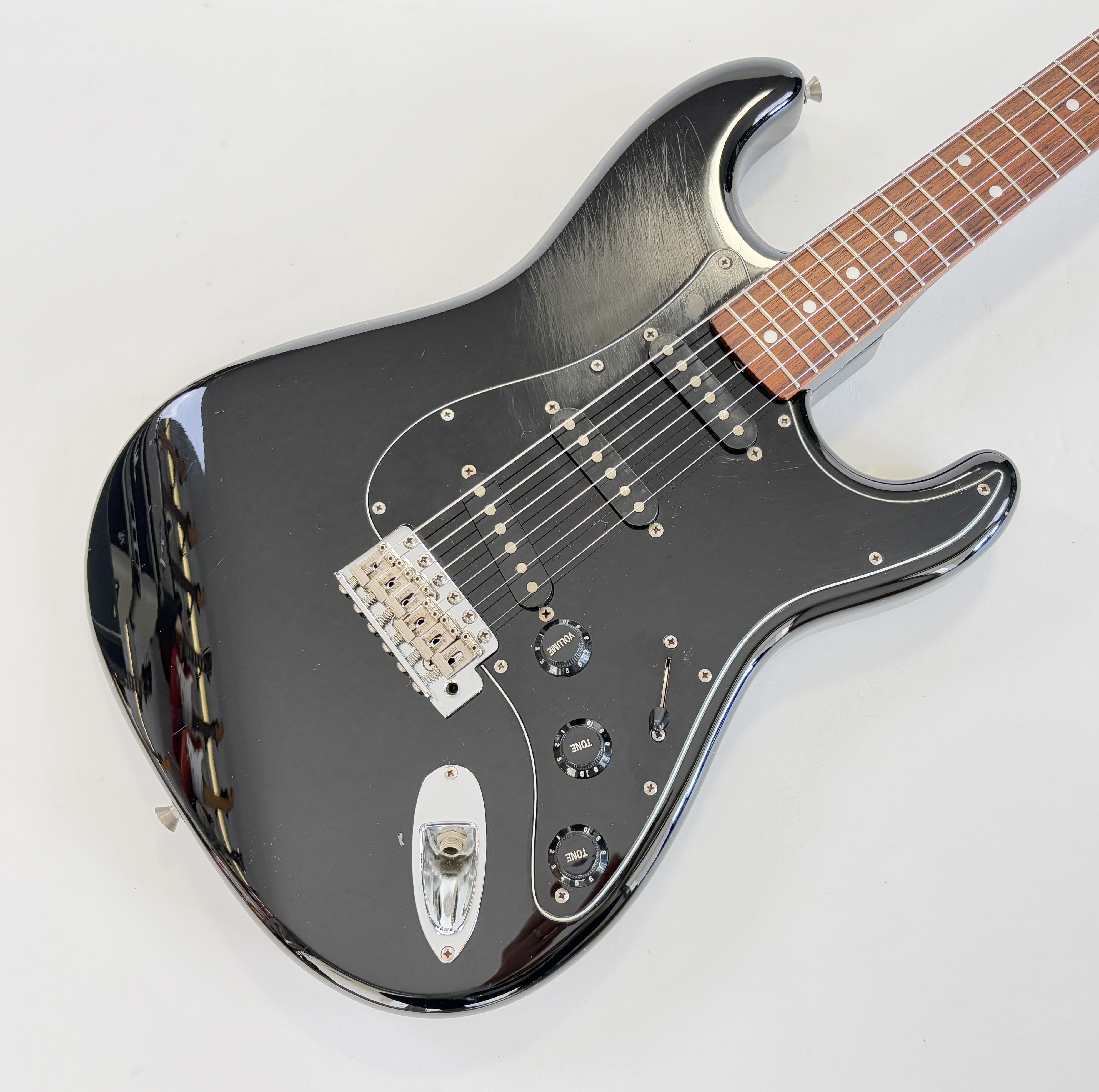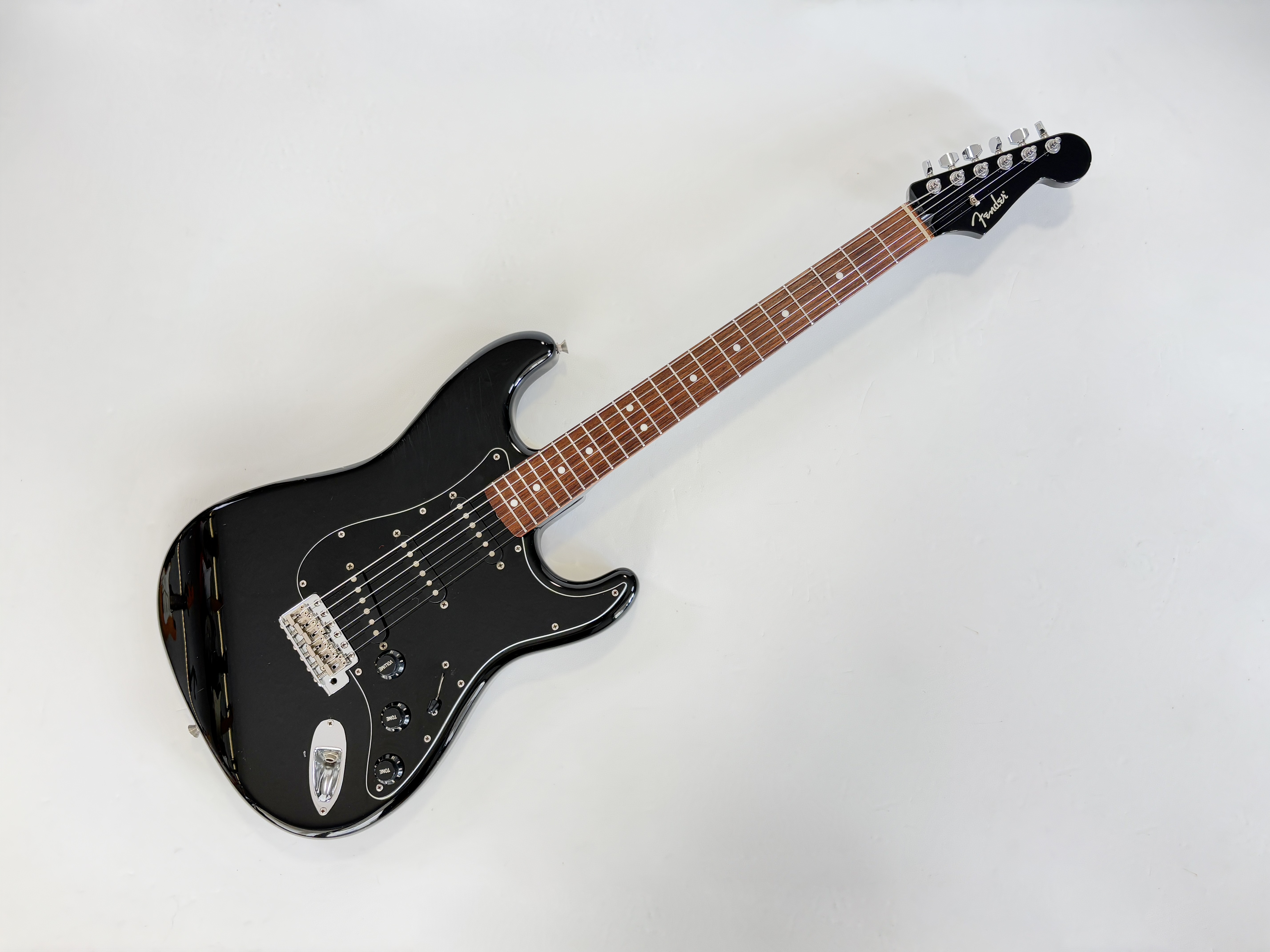 Comme d’habitude on retrouve la qualité de lutherie et l’assemblage sans faille typiquement nippons sur cette Strat faite entre 2006 et 2008. Reproduction de l'année 1962, elle s'offre ici un manche érable, touche palissandre épaisse type slab. Ici le look est full black : corps, pickguard et même le manche sont couleur noire ! Avec comme touche finale la tête assortie, dite matching headstock.Dépôt-vente, achat, vente, reprise, location.