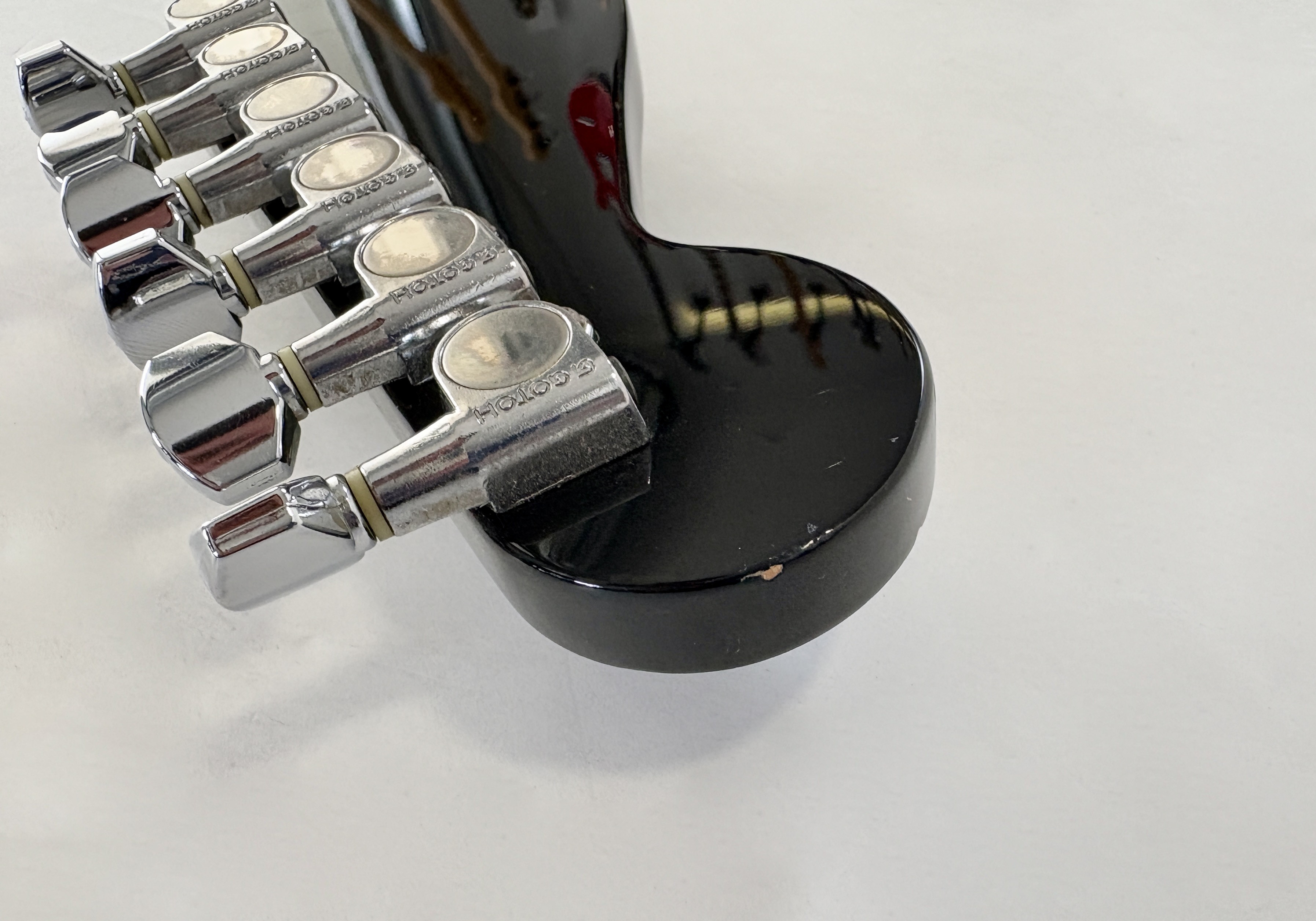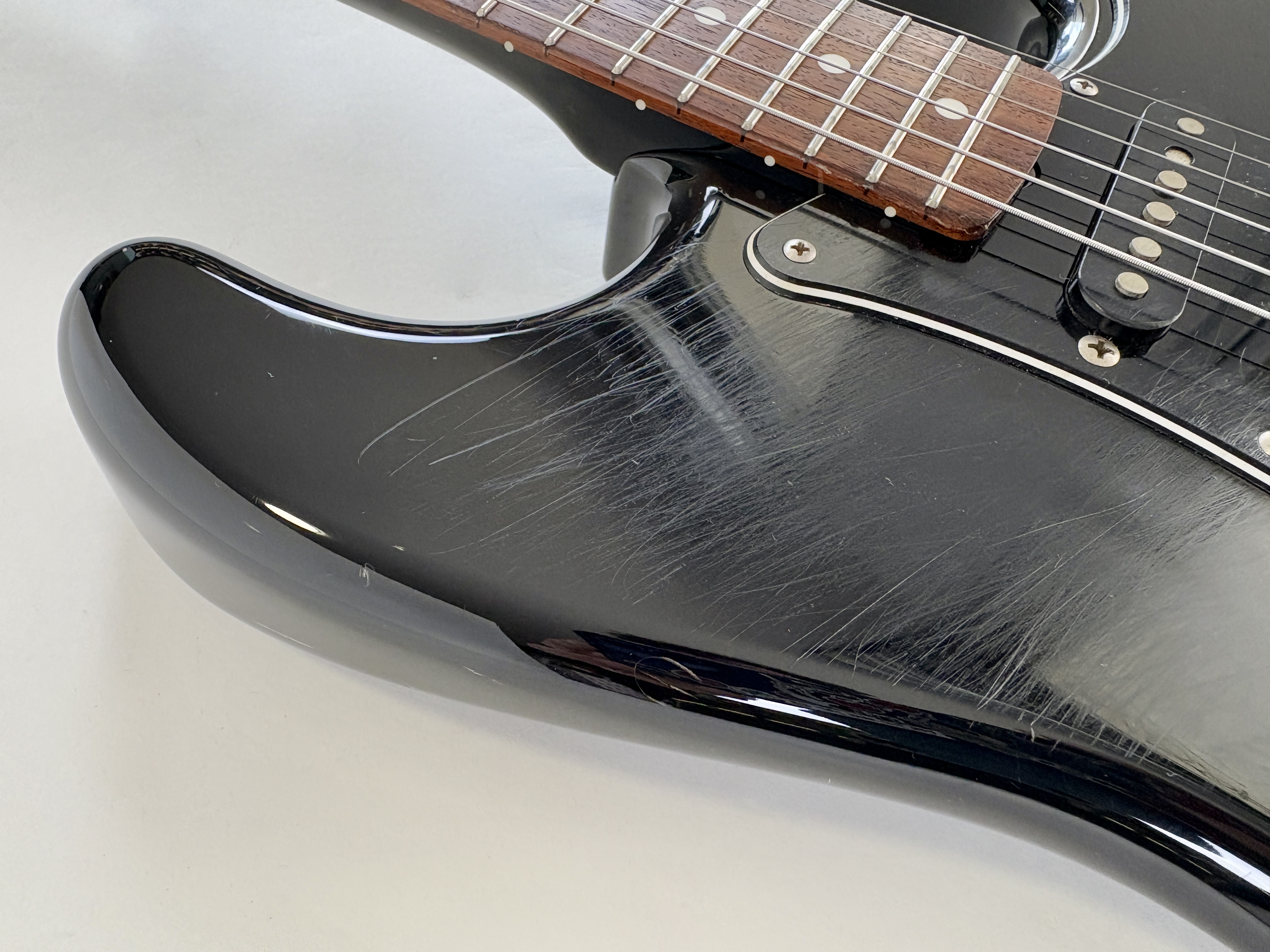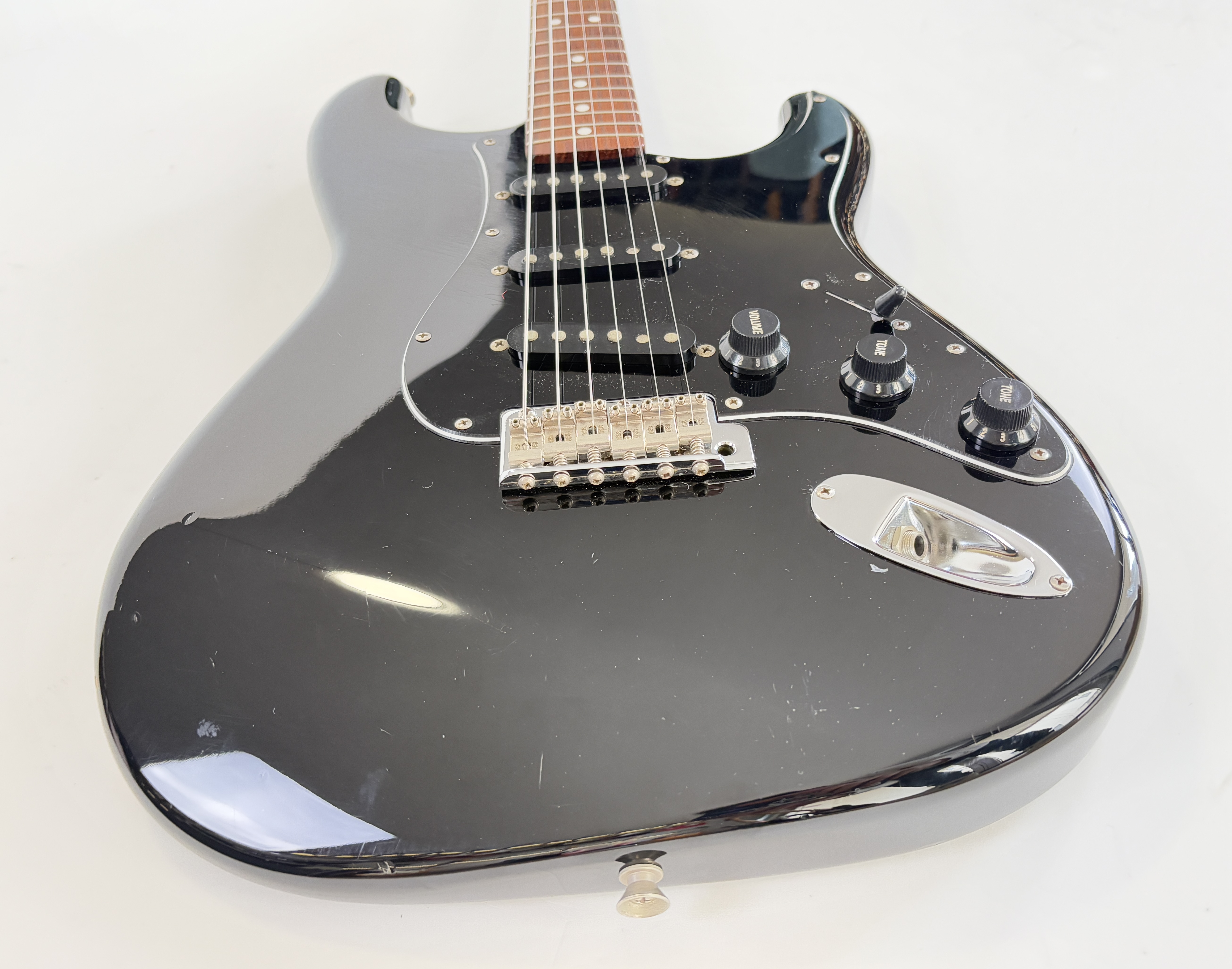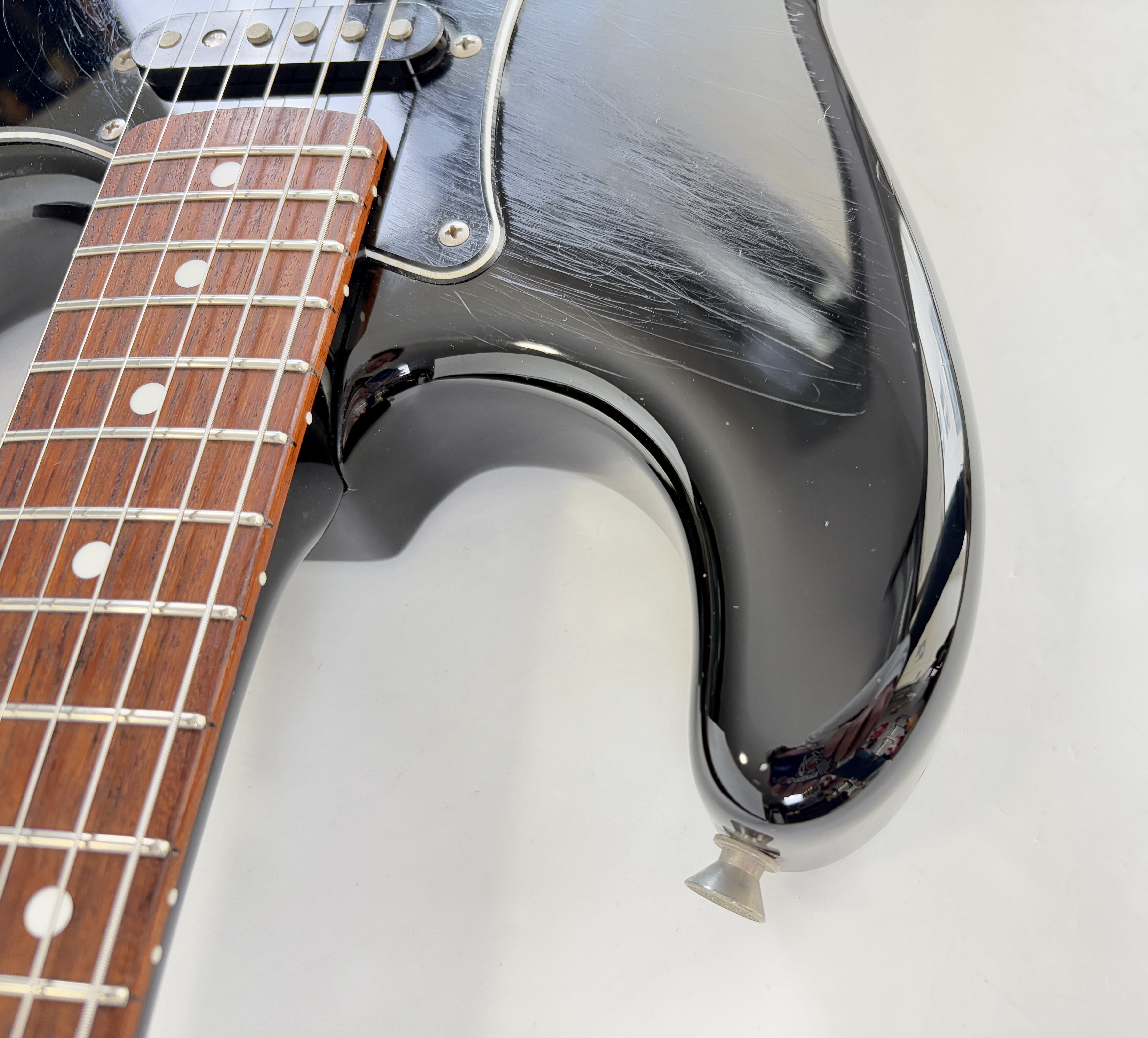Comme d’habitude on retrouve la qualité de lutherie et l’assemblage sans faille typiquement nippons sur cette Strat faite entre 2006 et 2008. Reproduction de l'année 1962, elle s'offre ici un manche érable, touche palissandre épaisse type slab. Ici le look est full black : corps, pickguard et même le manche sont couleur noire ! Avec comme touche finale la tête assortie, dite matching headstock.Dépôt-vente, achat, vente, reprise, location.