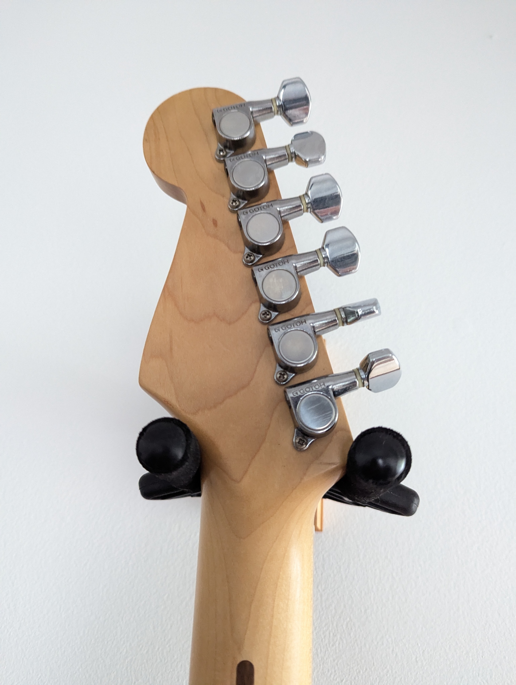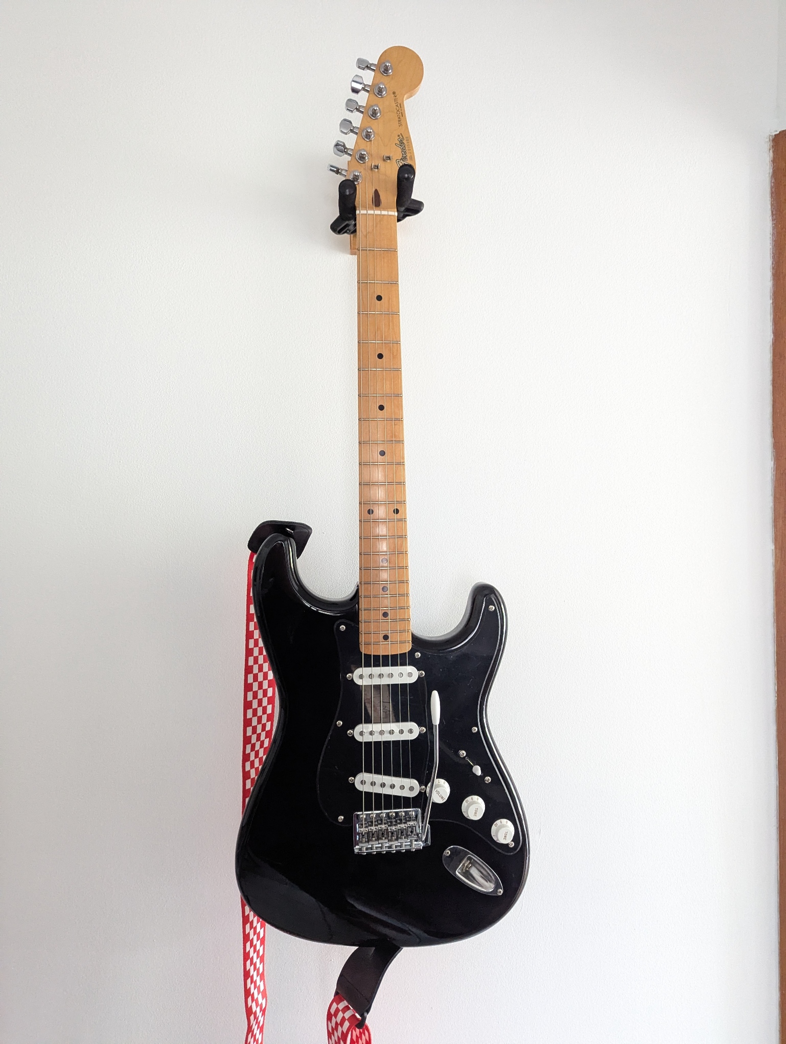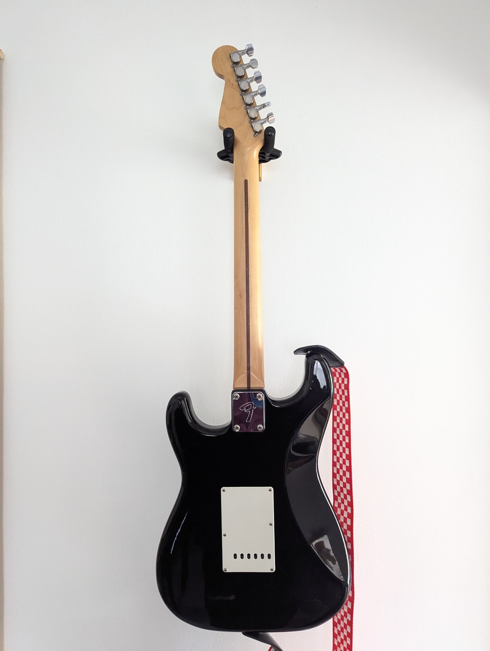 J'en ai profité pour changer la plaque d'origine blanche par une noire pour avoir un look qui me plait plus (un peu black strat Gilmour).
