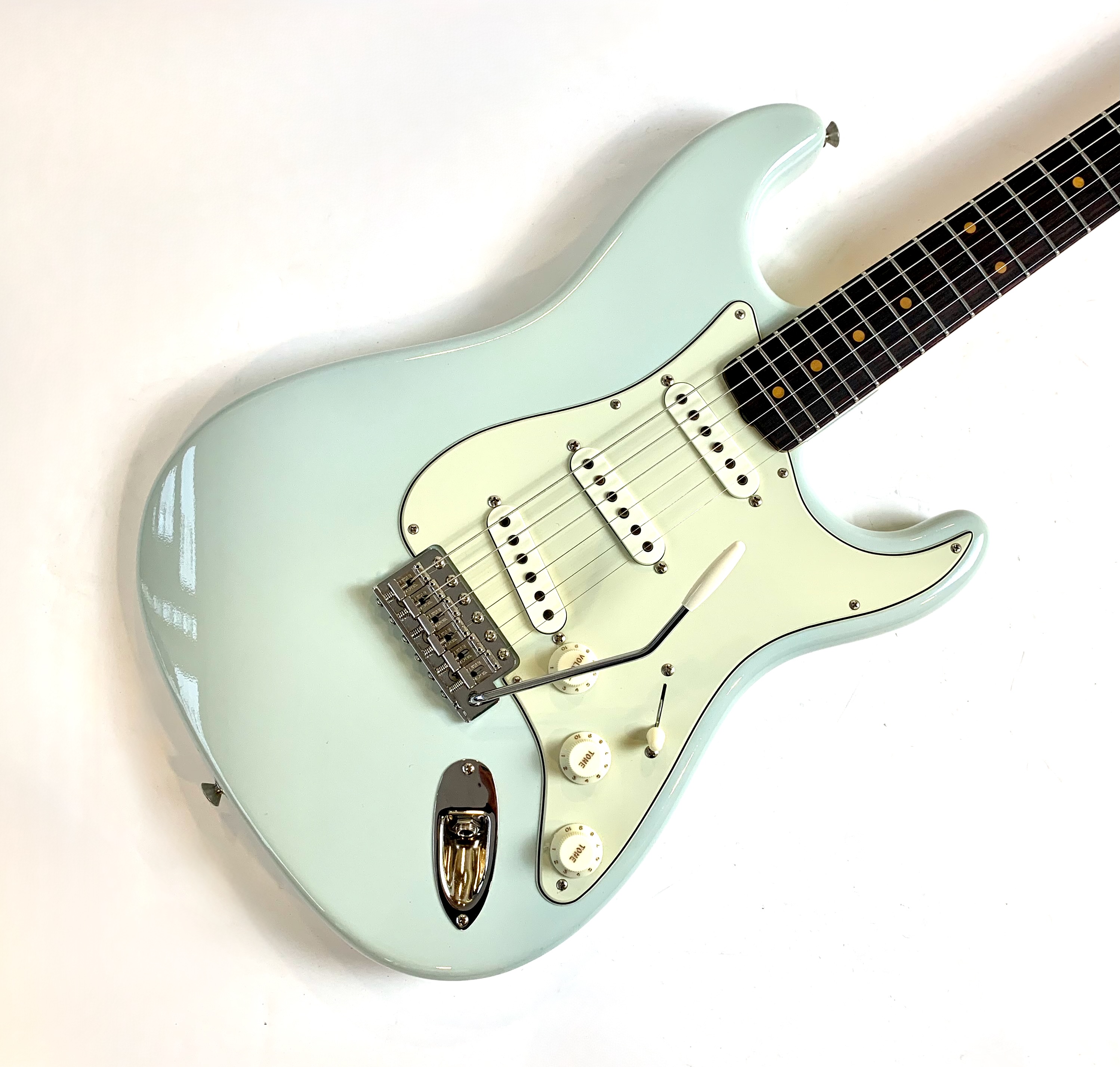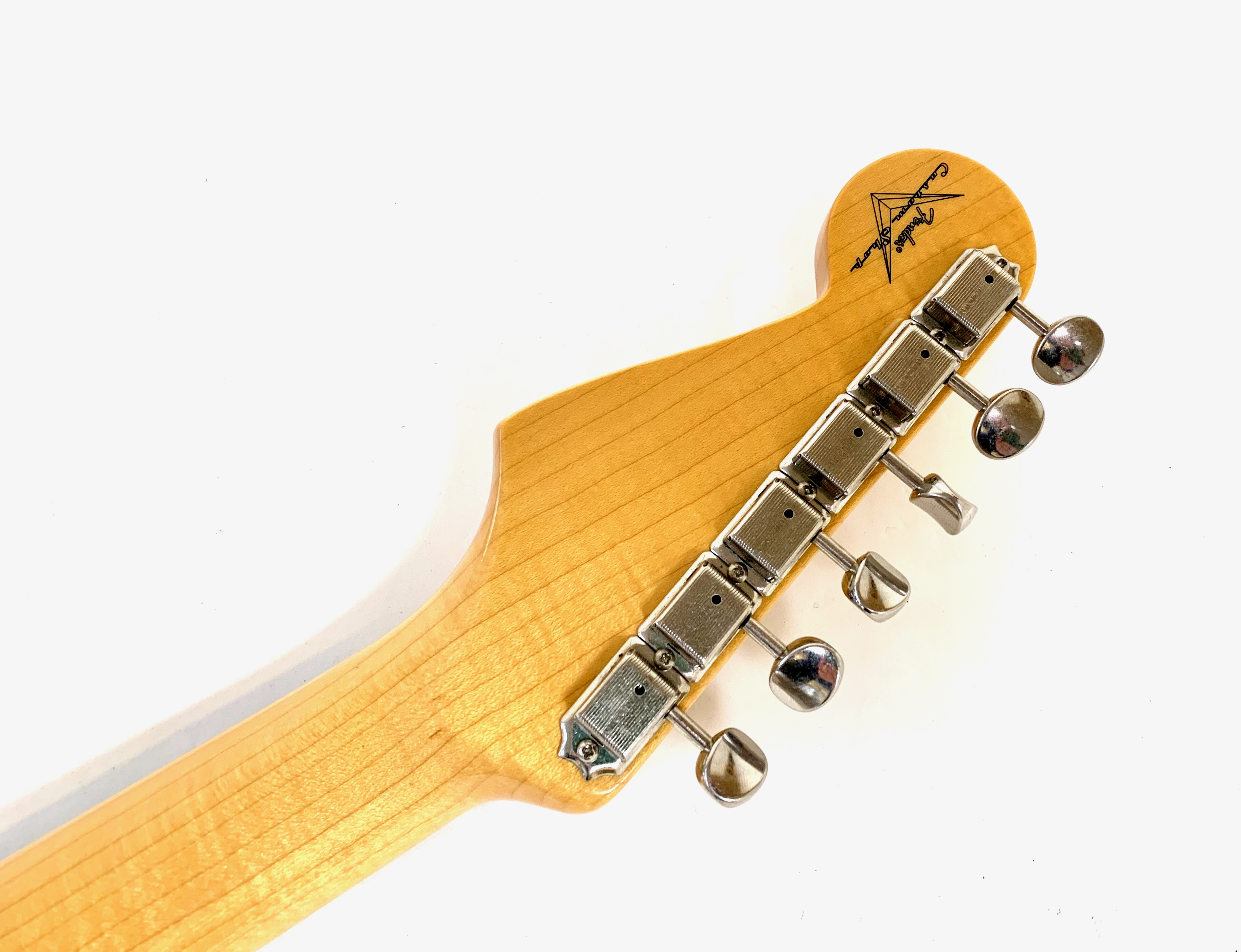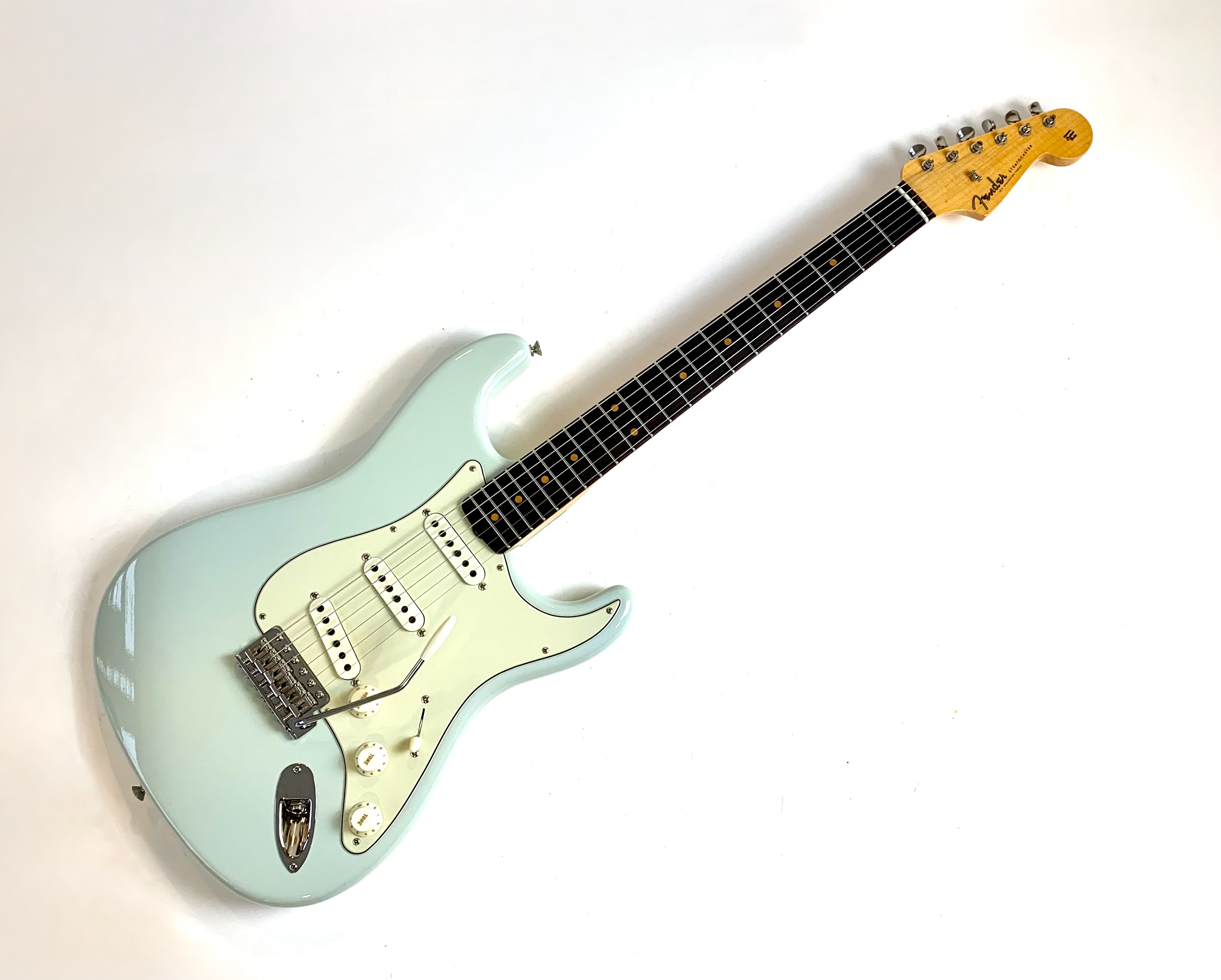 Cette Strat sortie des ateliers californiens cette année se dote d’un manche format Esquire en C avec une touche en palissandre bien épaisse type slaboard au radius compensé de 7,25 à 9,5 pouces. Côté micros, on trouve un set de 59 bobinés main. Le traitement Time Capsule offre un rendu magnifique et son corps est en aulne. Celle-ci est digne de son blason Custom Shop et sonne au top ! Vendue avec son certificat d’authenticité, ses goodies dans son étui brown d’origine.Location, achat, vente, reprise, dépôt-vente.