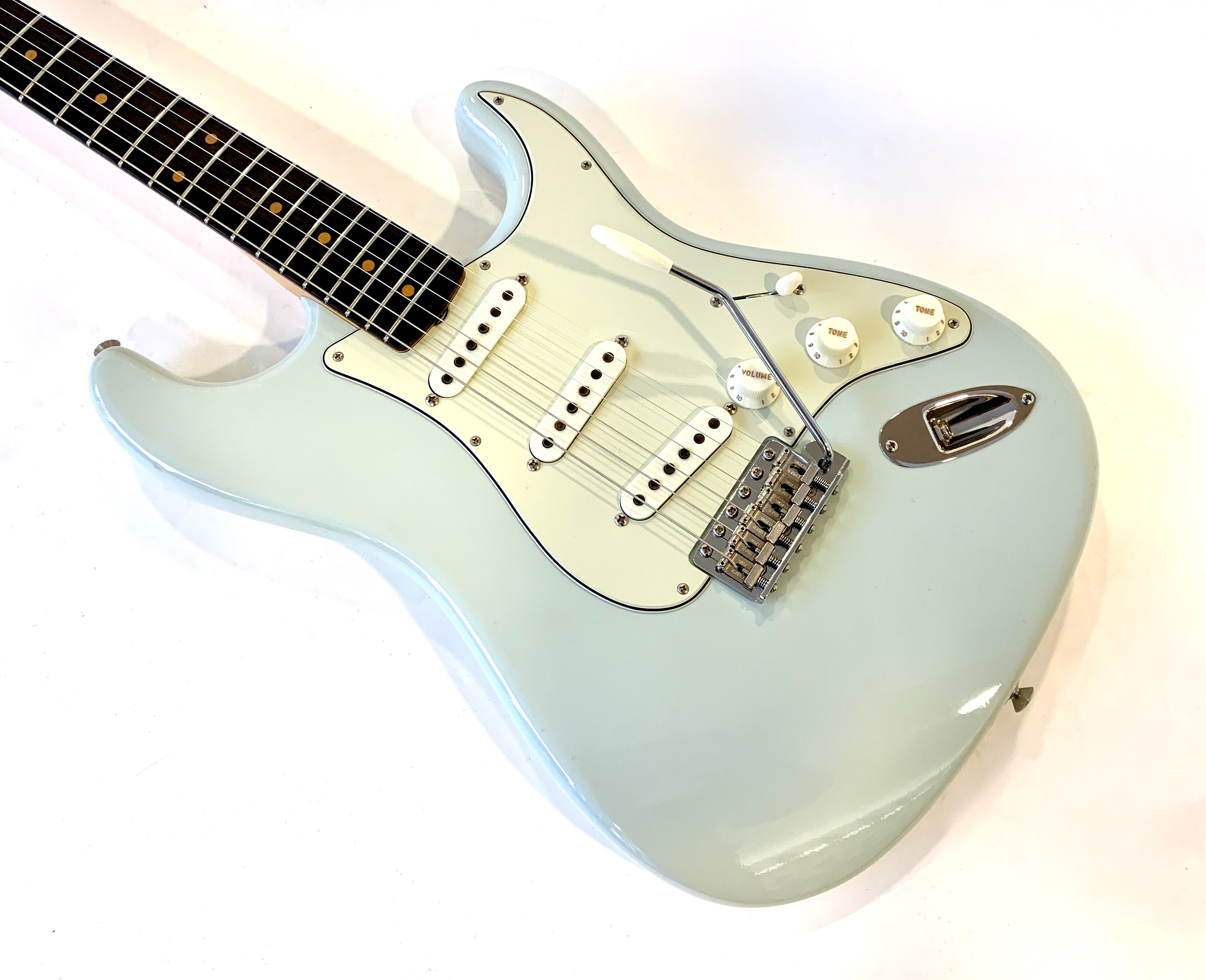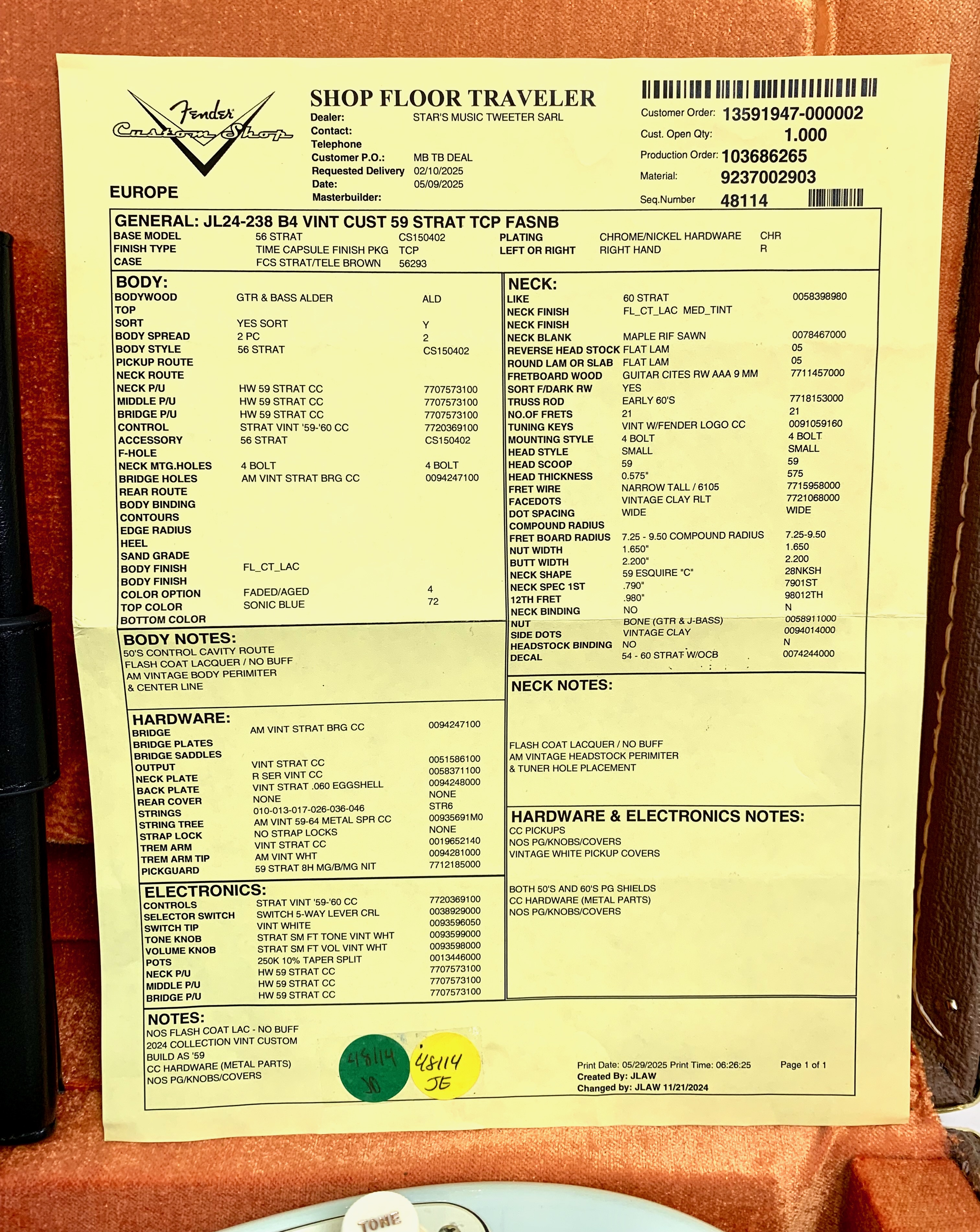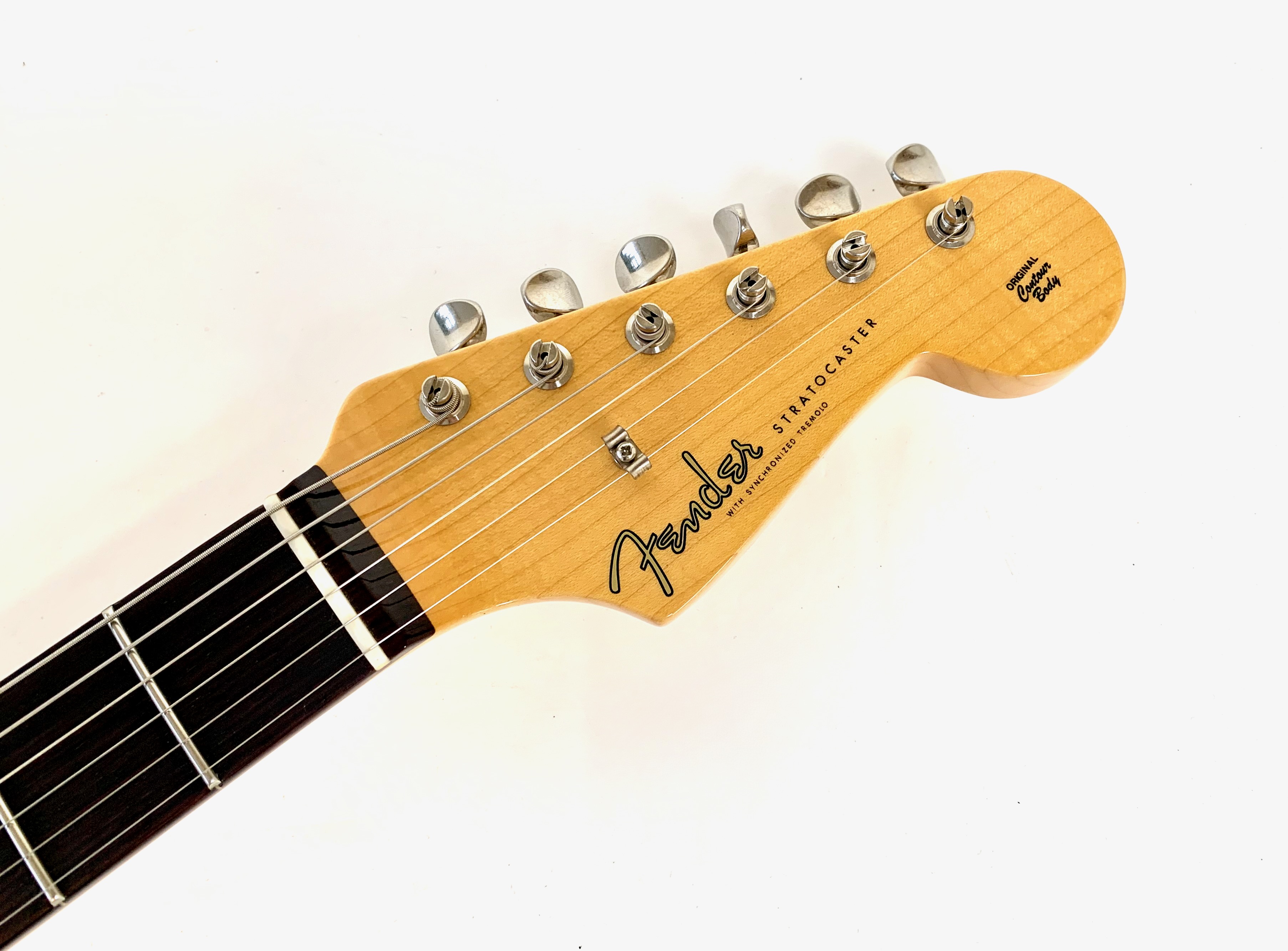 Cette Strat sortie des ateliers californiens cette année se dote d’un manche format Esquire en C avec une touche en palissandre bien épaisse type slaboard au radius compensé de 7,25 à 9,5 pouces. Côté micros, on trouve un set de 59 bobinés main. Le traitement Time Capsule offre un rendu magnifique et son corps est en aulne. Celle-ci est digne de son blason Custom Shop et sonne au top ! Vendue avec son certificat d’authenticité, ses goodies dans son étui brown d’origine.Location, achat, vente, reprise, dépôt-vente.