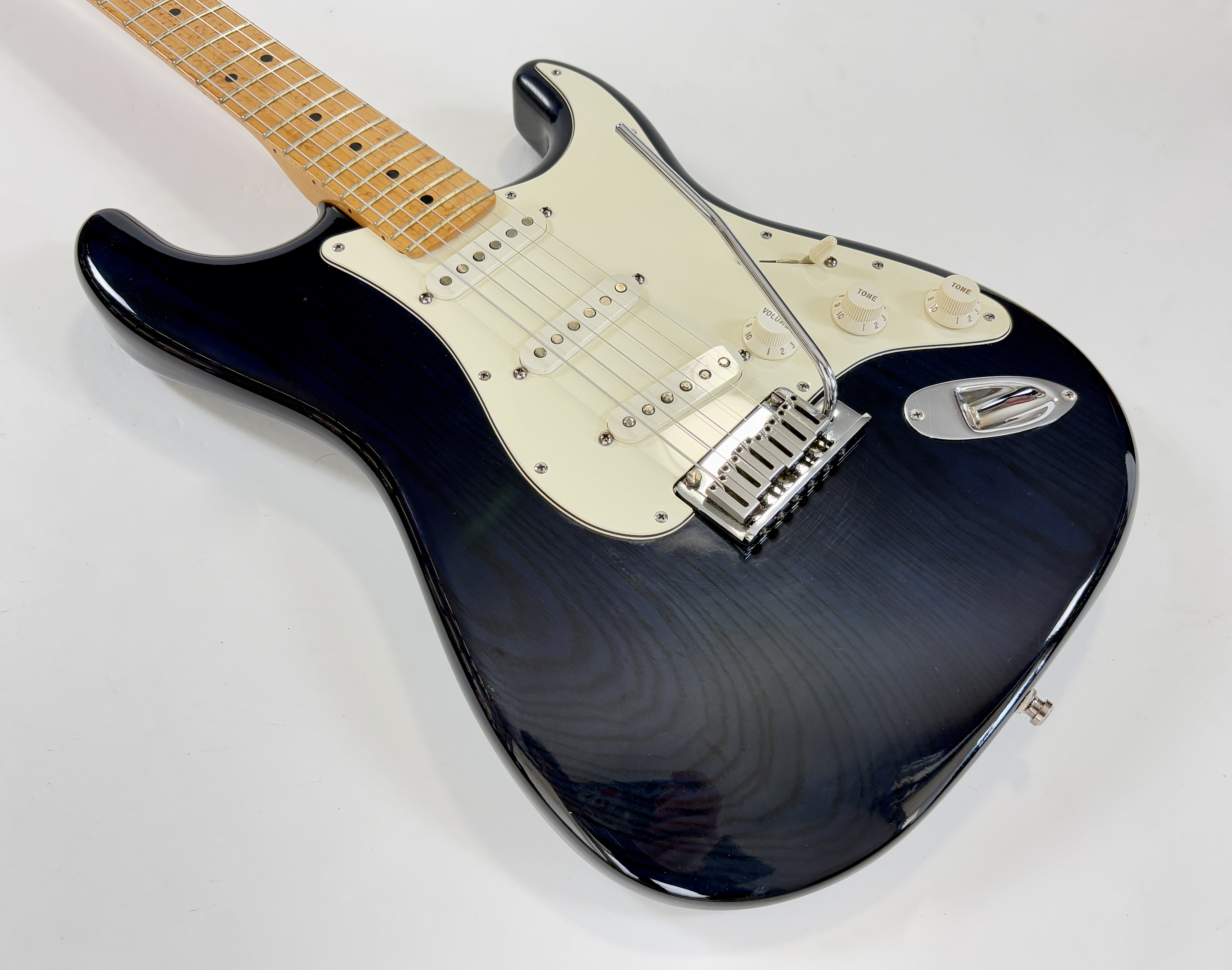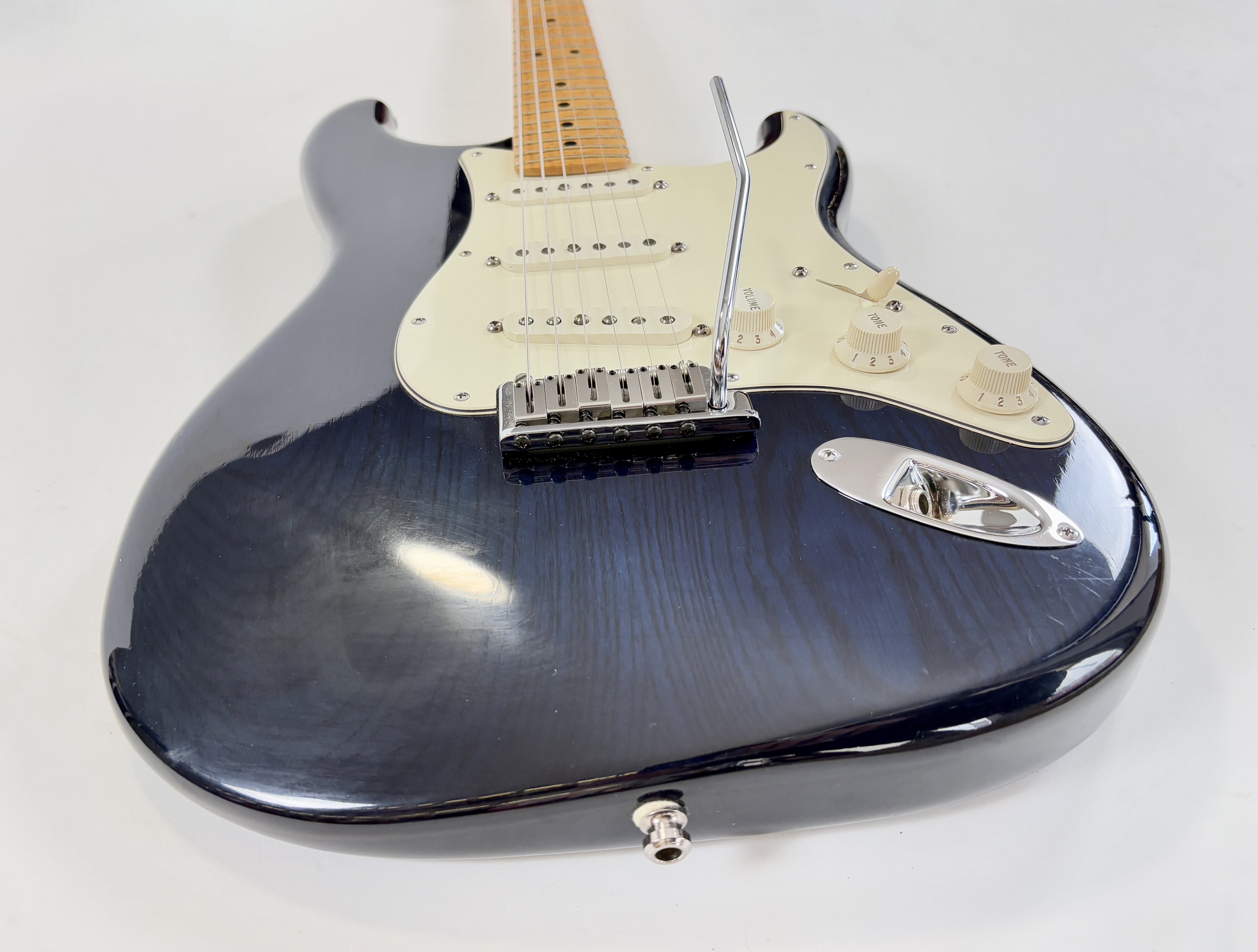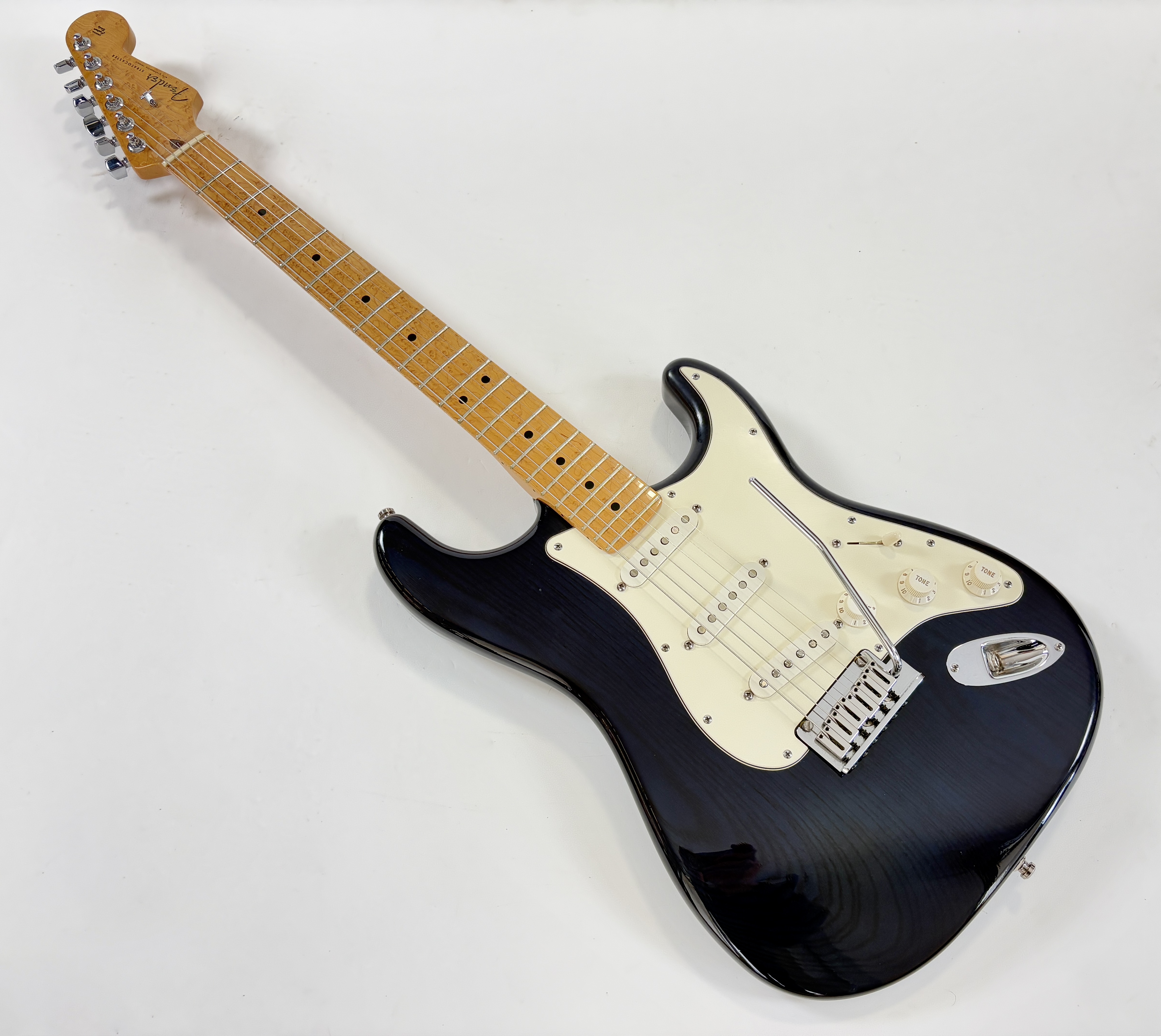 Cette Custom Shop allie la qualité du haut de gamme de la marque californienne tout en s’affranchissant des « problématiques » des rééditions pures et dures. En effet, le radius de 10 pouces ainsi que le manche en érable (avec un birdseyes au top) la rendent confortable et facile à jouer. Le corps en frêne est mis en valeur par sa couleur Trans Blue. Autre concession à la modernité, le chevalet est doté de pontets modernes et le micro chevalet est « hot ». Vendue avec son certificat d’authenticité, dans son étui d’origine.Location, achat, vente, reprise, dépôt-vente.
