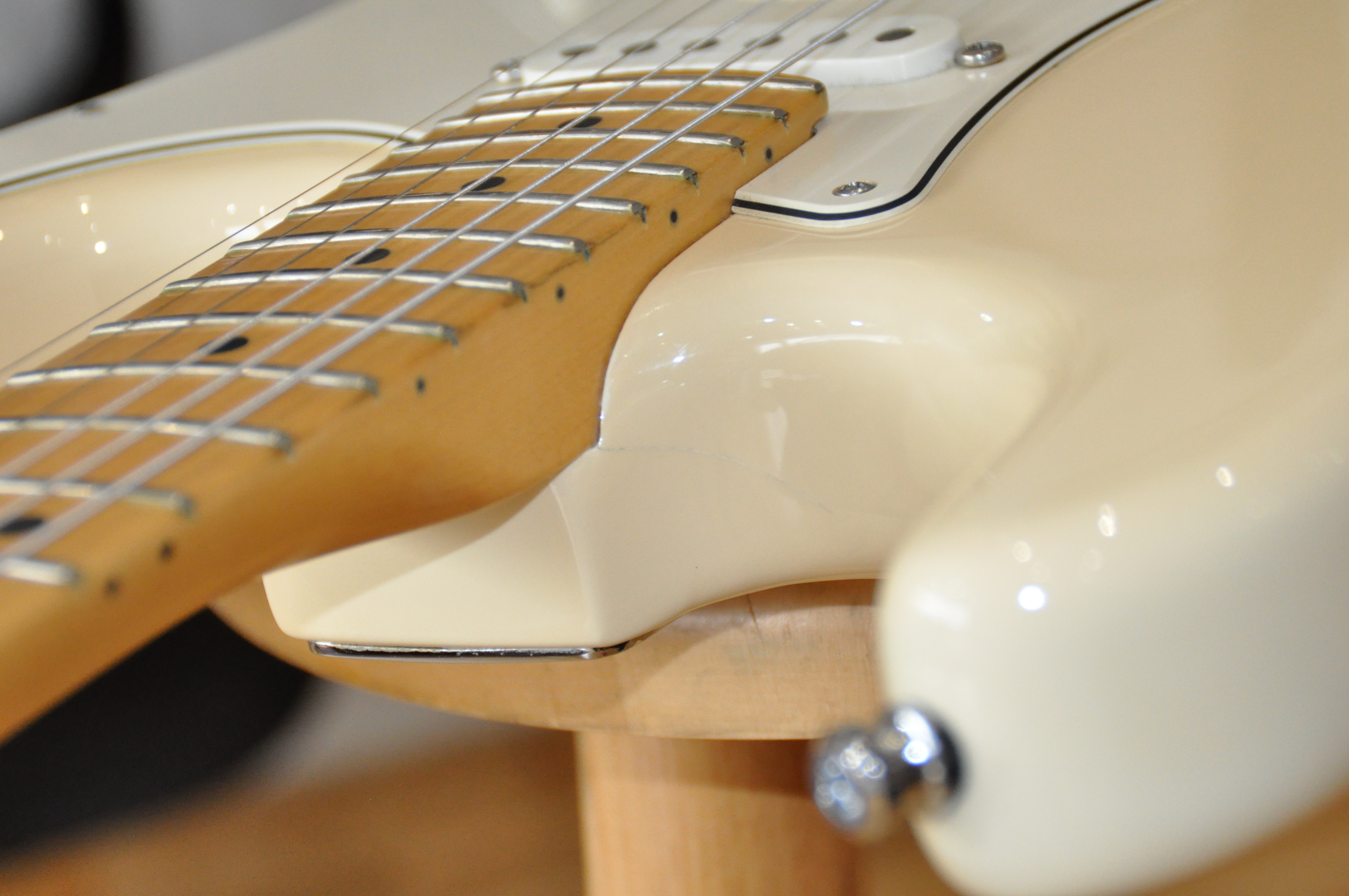 évidemment en dix ans j'ai du faire quelques trucs... déjà le réglage (chez Eden Lutherie), je cassais des cordes et après être passée dans les mains de Didier, hop plus rien. réglages des harmonies, de l'action, du chevalet, etc... bref, je ne veux pas faire mon relou mais la gratte "US" devrait sortir réglée, c'est au moins le cout du premium.