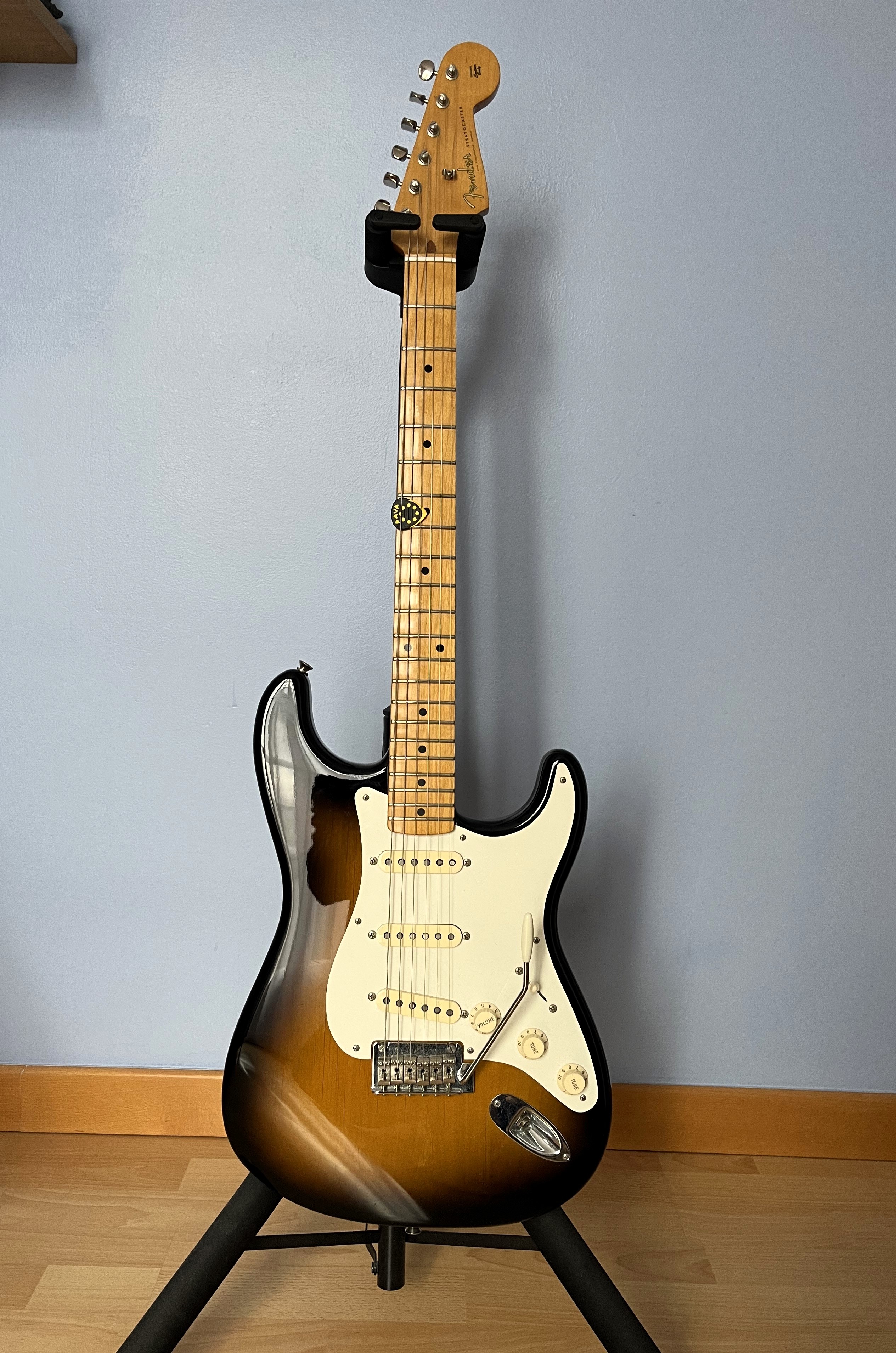 Je me sépare de cette magnifique Fender mexicaine haut de gamme de 2012."La Classic Player ’50s Stratocaster allie un design classique à des améliorations contemporaines qui séduisent les guitaristes de tous niveaux. Conçue par Dennis Galuszka, Master Builder du Fender Custom Shop, elle offre le meilleur d’hier et d’aujourd’hui avec le style Strat® de l’époque d’origine et d’excellentes caractéristiques telles que des micros American Vintage étincelants avec un câblage moderne, le confort d’un manche des années 1950 surmonté d’une touche et de frettes modernes, un chevalet vibrato synchronisé à deux points de style classique, et bien plus encore." (source Fender)