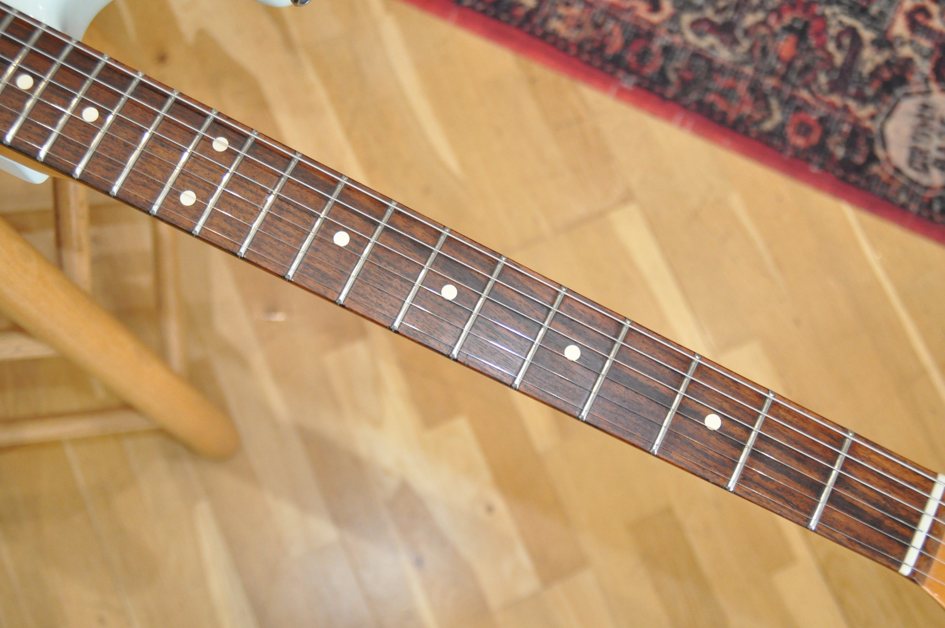 honte à moi mais pour ma défense j'avais usé les premieres frettes à 50% donc ça friz à mort, un refretage m'aurait coûtait bonbon alors j'ai préféré la revendre pour me trouver une autre strat...