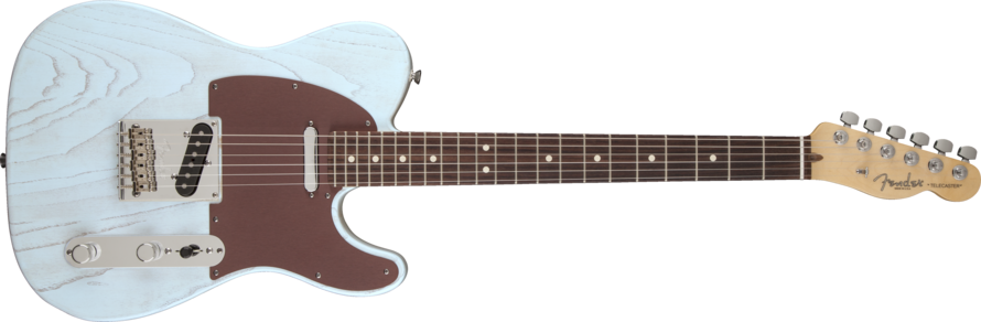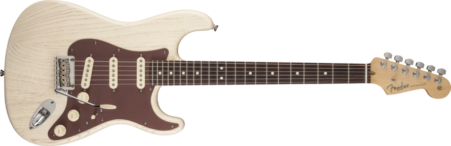 Avec la série American Rustic Ash, Fender apporte à ses deux stars à 6 cordes un nouveau look brut, grâce à une finition satinée Faded qui fait ressortir le grain et le veinage du bois, et à une plaque de protection en aluminium anodisé marron, une première chez Fender.