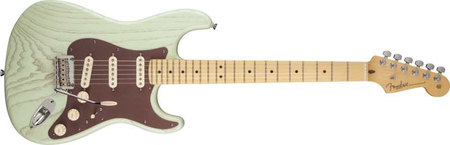 L’American Stratocaster Rustic Ash est proposée en deux finitions Olympic White et Surf Green.