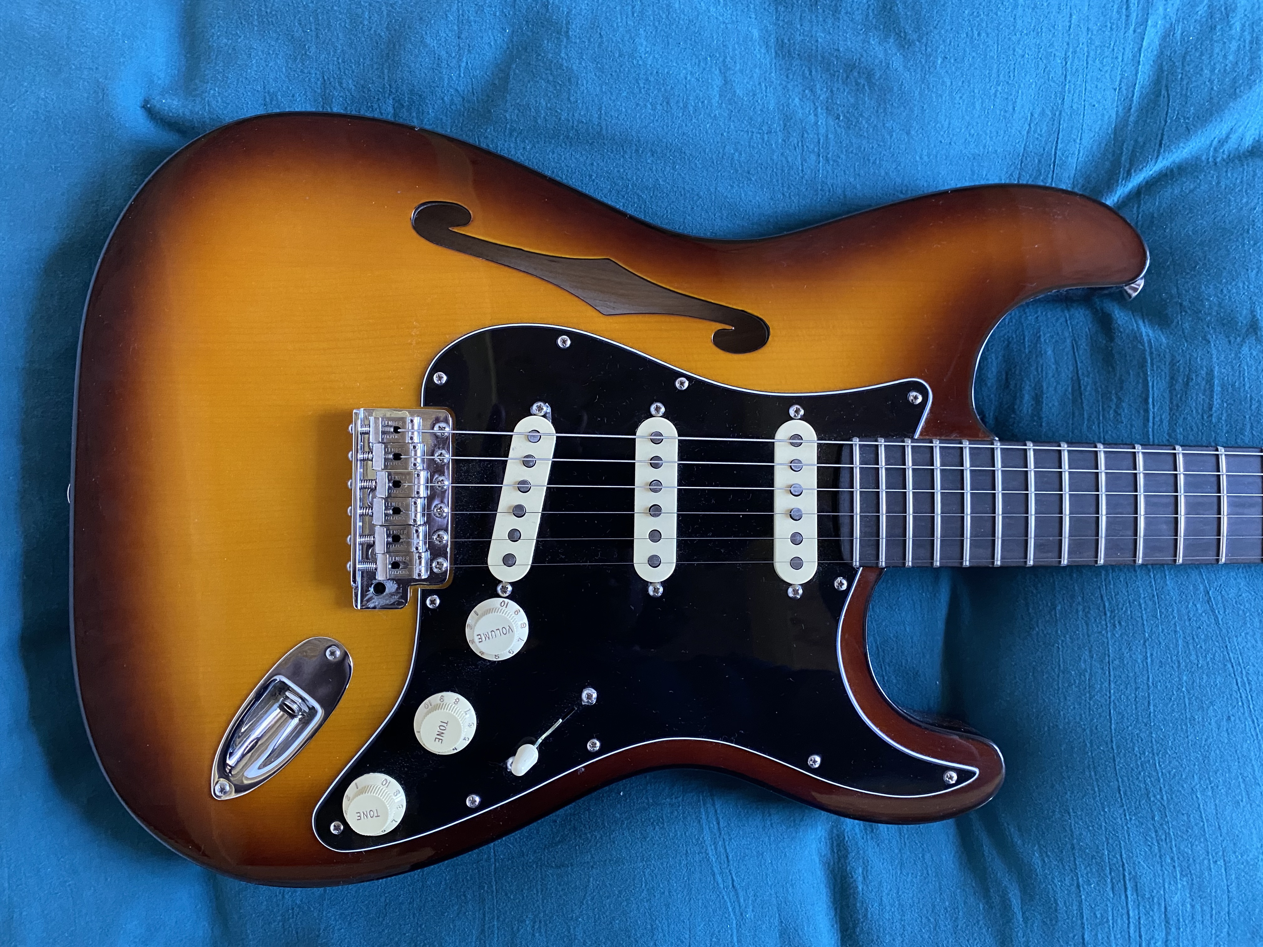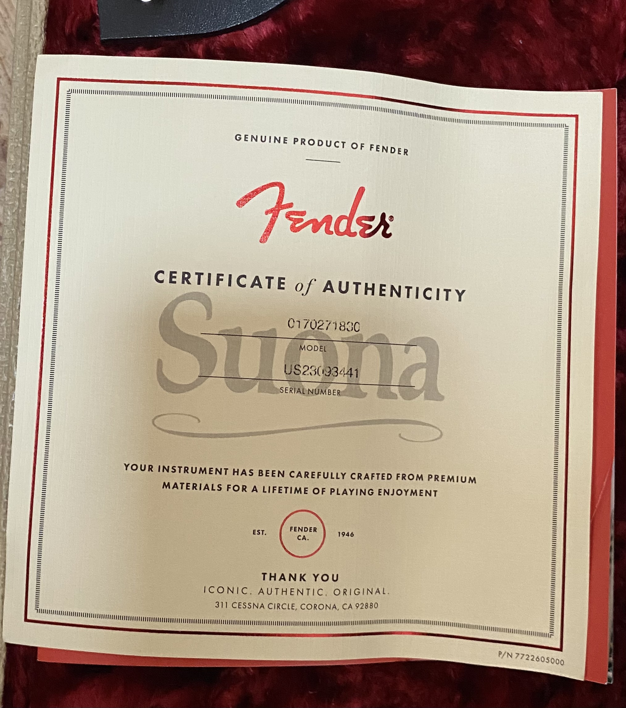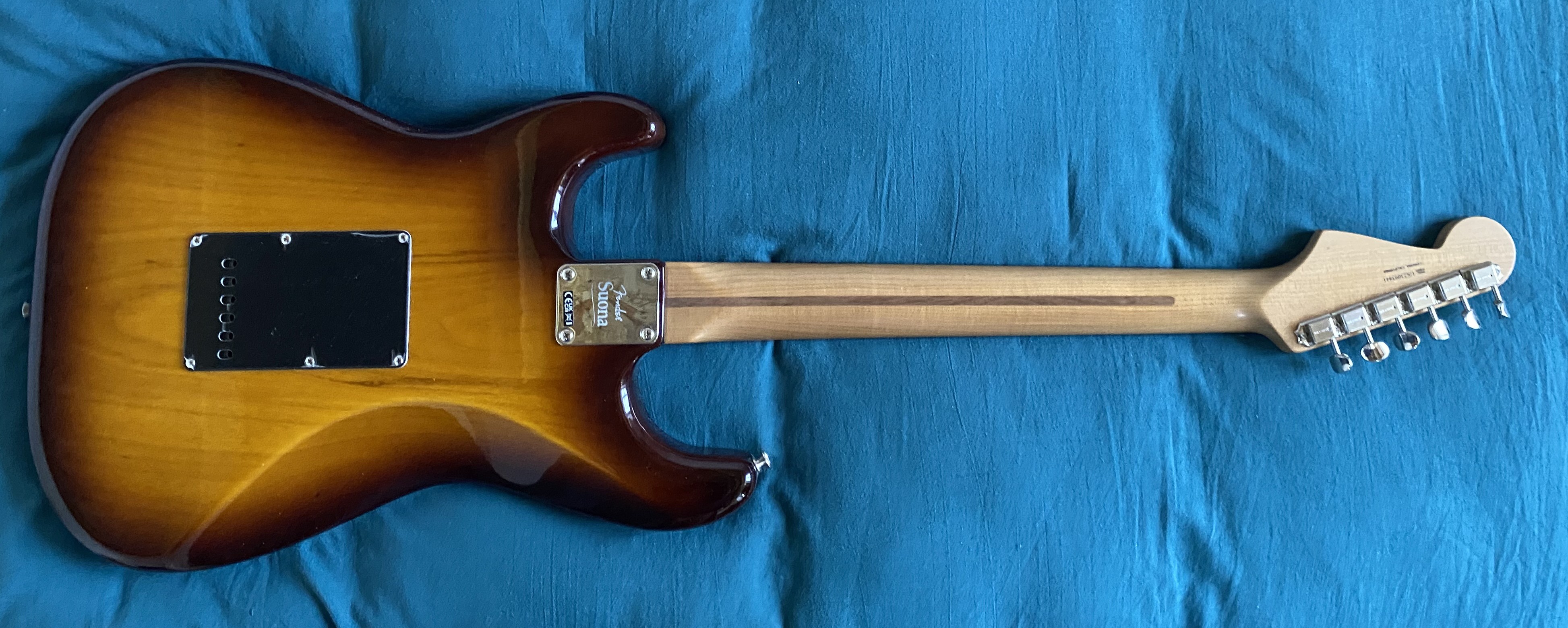 Je mets en vente une Fender Stratocaster Suona achetée en 2025 , elle est en parfaite état , très peu utilisée , vendu avec le Flight case, accessoires (tige tremolo, cache vintage chevalet, pochette), certificat (Cf photos) , prix 1950 Euros .